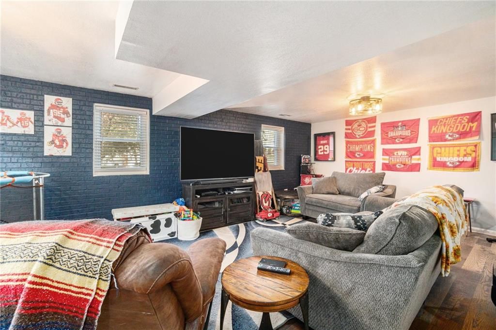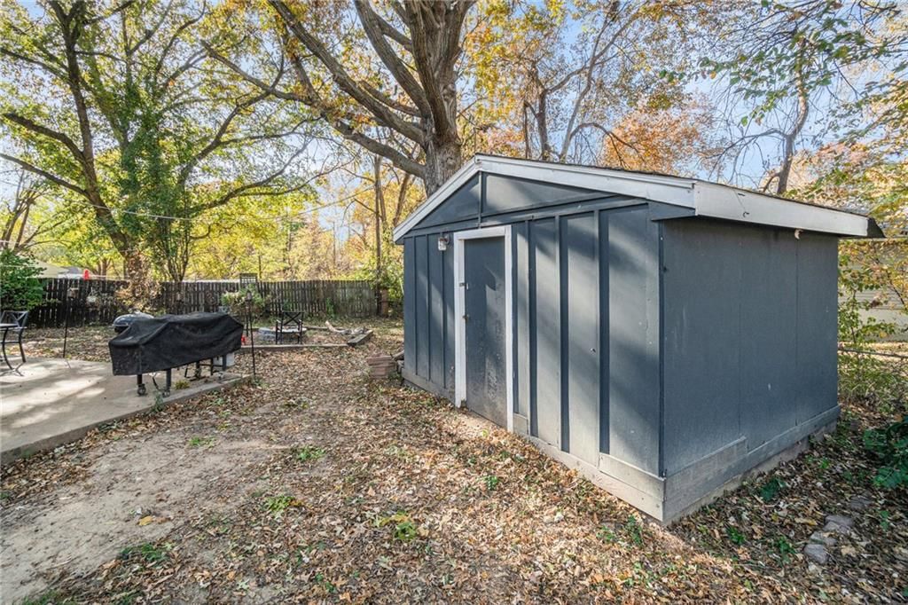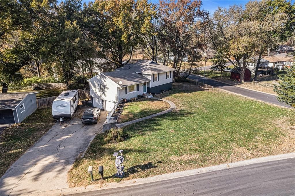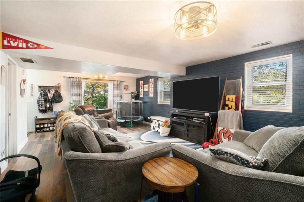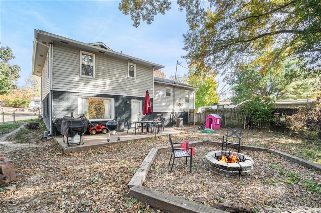 This home is absolutely adorable and full of unique charm. As you step through the front door, you're greeted by a cozy living area that flows seamlessly into the dining room. The kitchen connects to both spaces, completing the main floor layout and making it perfect for entertaining. Beautifully maintained wood floors run throughout the main level, and the freshly updated kitchen features custom cabinetry and stainless steel appliances. Upstairs, you'll find the primary bedroom with an ensuite bathroom, along with two additional bedrooms and another full bath. The finished basement offers a large recreation room with a newly built wet bar, modern finishes, and a half bath. One wall showcases a charming exposed brick accent that adds warmth and character to the space. Outside, the fenced backyard is ready to be enjoyed with a fire pit, outdoor storage shed, and plenty of room to relax or play. Situated on a corner lot with a two-car garage, this home is as inviting as it is unique.