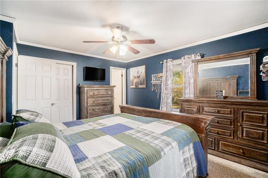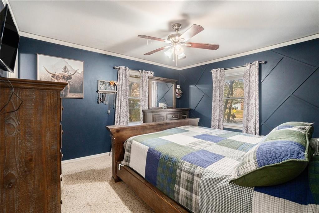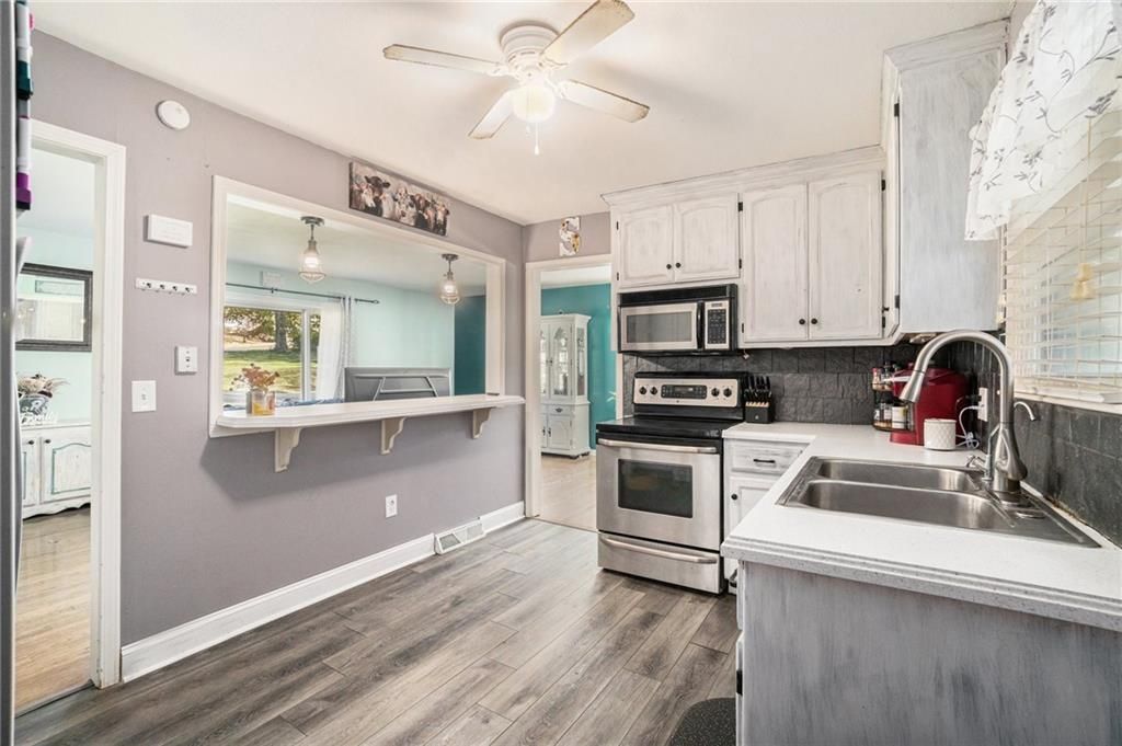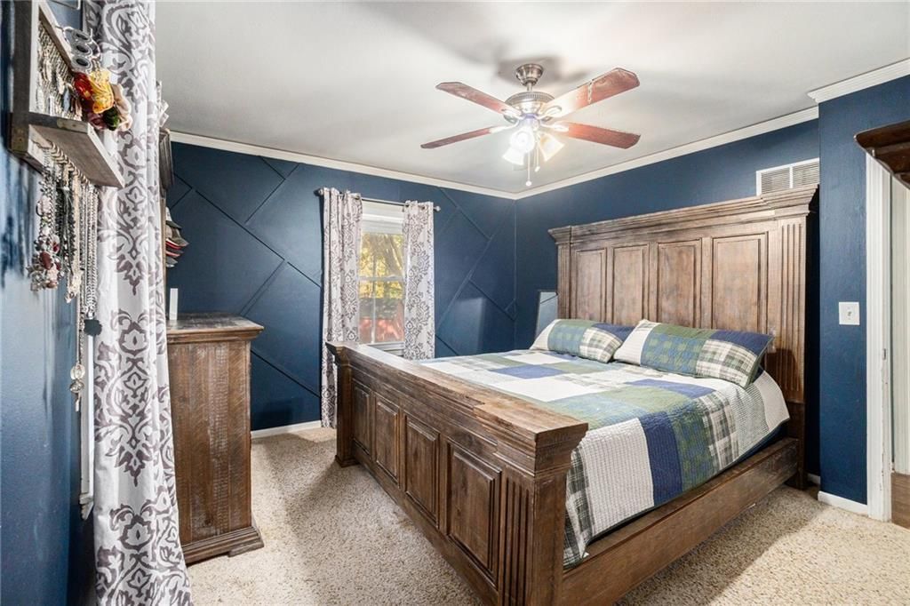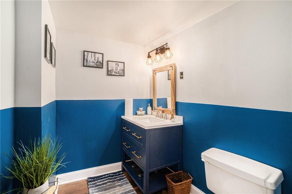 This home is absolutely adorable and full of unique charm. As you step through the front door, you're greeted by a cozy living area that flows seamlessly into the dining room. The kitchen connects to both spaces, completing the main floor layout and making it perfect for entertaining. Beautifully maintained wood floors run throughout the main level, and the freshly updated kitchen features custom cabinetry and stainless steel appliances. Upstairs, you'll find the primary bedroom with an ensuite bathroom, along with two additional bedrooms and another full bath. The finished basement offers a large recreation room with a newly built wet bar, modern finishes, and a half bath. One wall showcases a charming exposed brick accent that adds warmth and character to the space. Outside, the fenced backyard is ready to be enjoyed with a fire pit, outdoor storage shed, and plenty of room to relax or play. Situated on a corner lot with a two-car garage, this home is as inviting as it is unique.
