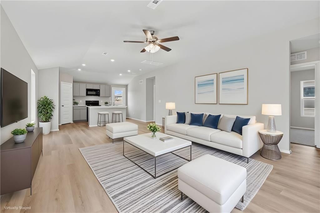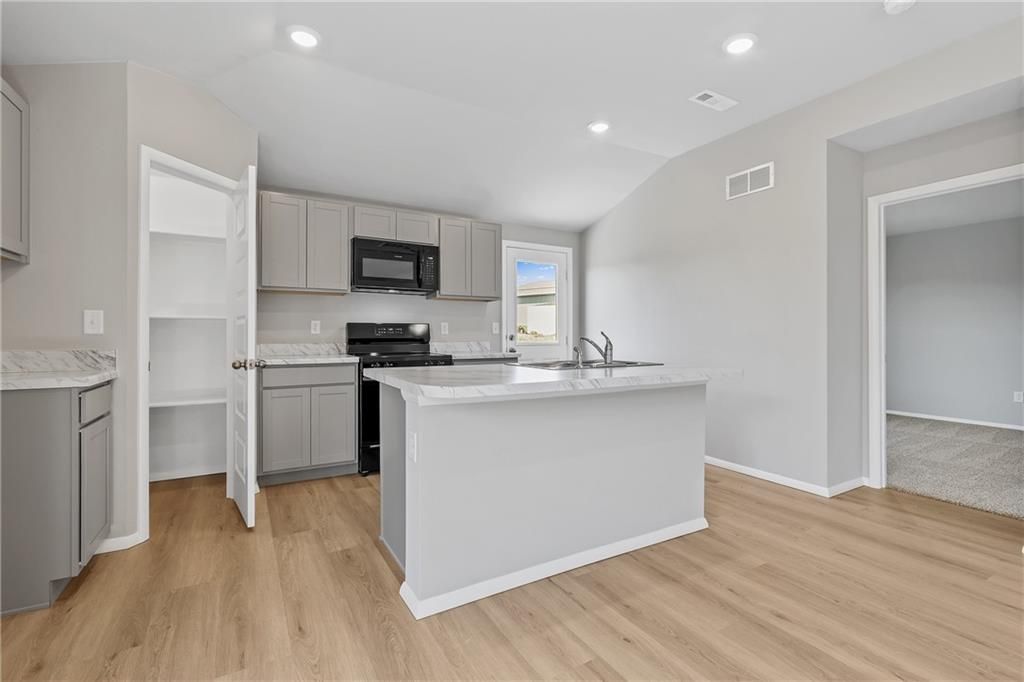 This popular plan is packed with possibilities. This brand-new 3-bedroom, 2-bath residence offers the ideal balance of style, functionality, and low-maintenance living - all thoughtfully arranged on one level for seamless accessibility. Step inside to find an open-concept layout that connects the kitchen, dining, and living areas, creating a warm and welcoming space perfect for gatherings or quiet evenings at home. The modern kitchen showcases sleek finishes, a spacious island for meal prep and conversation, and a generous walk-in pantry with built-in shelving for effortless organization. Natural light fills the home, enhancing the neutral color palette and durable, easy-care flooring throughout. The private owner's suite, tucked away at the rear of the home, provides a peaceful retreat featuring a spacious walk-in closet and a full en-suite bathroom with a large vanity and contemporary fixtures. Two additional bedrooms offer comfort and flexibility - ideal for guests, family, or a home office. Professional landscaping, a 2-car garage, and quality Lennar craftsmanship and 1-2-10 Lennar Warranty complete the package. Located just minutes from Gardner and a short drive to the amenities of Kansas City, this home offers both convenience and community charm. Plus, with special incentives through Lennar Mortgage, owning your new home has never been more attainable. Schedule your tour today - Monday through Saturday, 10 AM to 6 PM - and explore why life in Edgerton's growing community is everything you've been looking for. Prices, features, and incentives are subject to change. Photos are from a previously completed home and virtually staged. Anticipated completion Mid-January