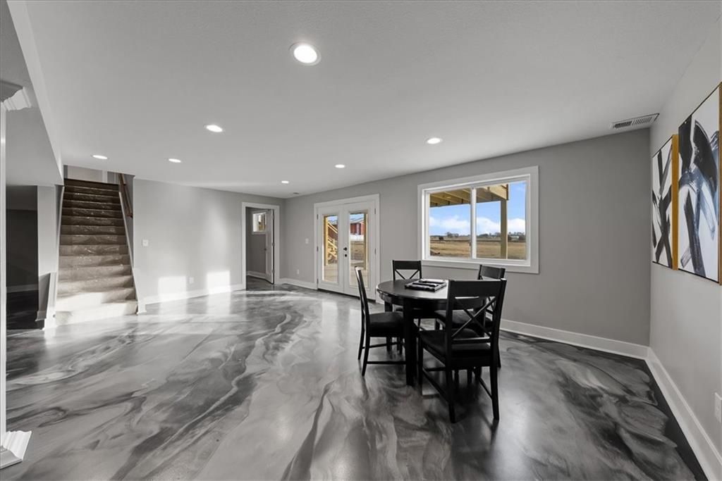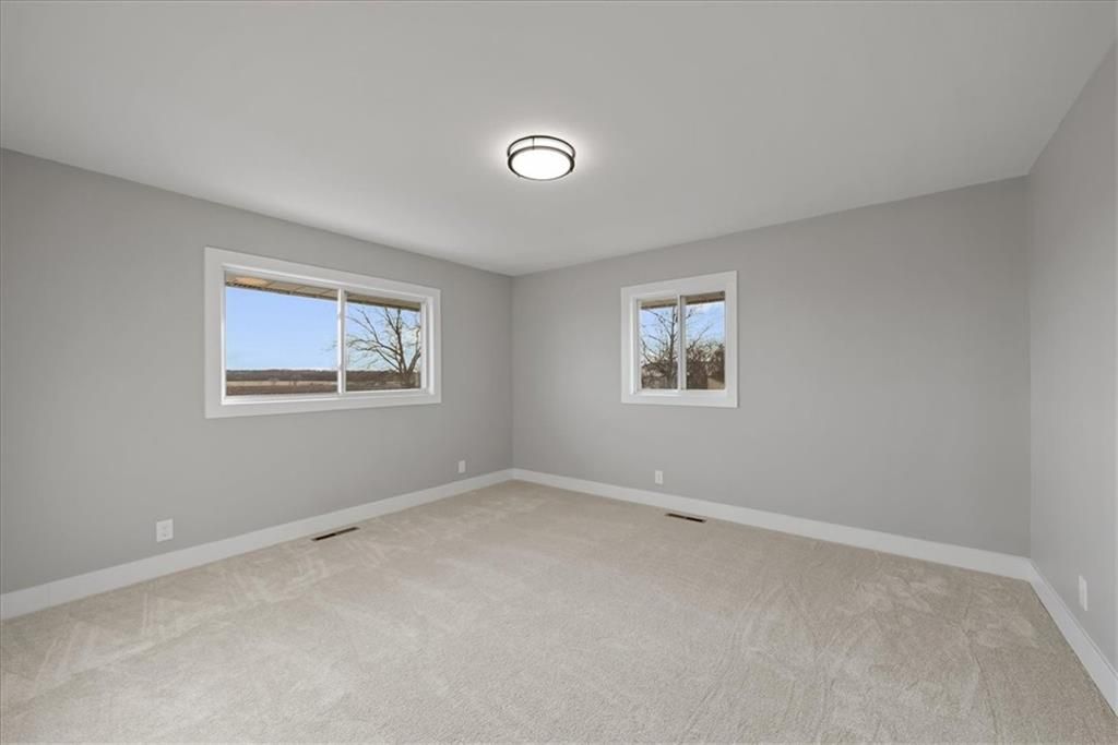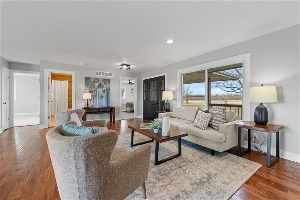 Here's your opportunity to own 10 acres with the option to buy an aditional 7.5 acres with a fully renovated ranch house and outbuilding! 3,017 sq ft ranch home with 4 bedrooms, 3.5 baths, finished walkout basement, and flexible main-level office/4th bedroom. Modern updates blend with classic ranch design - perfect for buyers seeking space, privacy, and country living with style. At the heart of the home is an all-new kitchen featuring abundant cabinetry, quartz countertop surfaces, and brand-new appliances - designed for both everyday living and entertaining. New bathrooms, all new windows, doors, flooring, HVAC System, Electrical Box and wiring, Siding, Exterior and Interior paint and all-new fixtures throughout reflect the home's comprehensive renovation and elevated finish. Everyday functionality shines with an expansive mudroom and main-level laundry, along with a walk-in pantry complete with a convenient grocery door to the garage. The finished walkout basement extends the home's versatility, offering a wet bar, professional epoxy flooring, and a striking glass-and-tile walk-in shower - ideal for hosting, relaxation, or extended living. The 2.5-car side-entry garage has new epoxy floors, providing durability with a polished look. Outdoor living is enhanced by a large new deck and expansive concrete patio overlooking the peaceful, open acreage. Additional amenities include a 40x60 outbuilding with electricity and a convenient lean-to, perfect for equipment, animals or additional storage. Paved road access - no gravel. The buyer receives first right to purchase the adjoining 7.5 acres, (no on market)offering potential for added privacy or future expansion. NO HOA. No fencing. Just space, freedom, and the opportunity to make it your own.