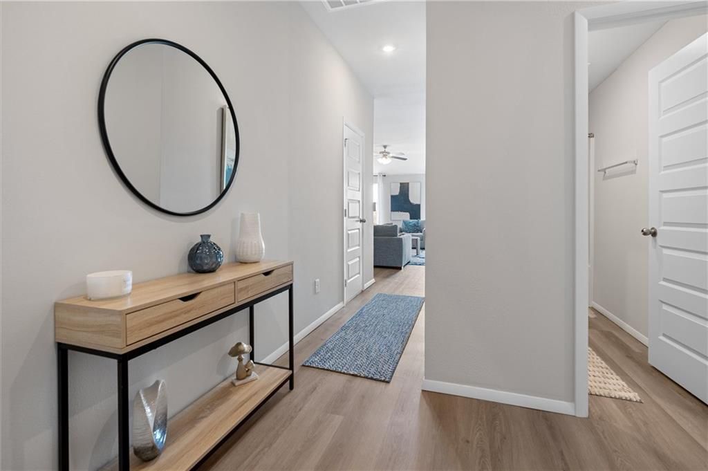 Welcome home to effortless, one-level living in Dwyer Farms. Introducing, The Greenfield Model. Nestled in this peaceful and growing Edgerton community, this brand-new Lennar ranch home delivers modern style, everyday comfort, and low-maintenance ease - all thoughtfully designed on a single level. This 3-bedroom, 2-bath home offers 1,328 square feet of smartly utilized space, a full two-car garage, and professionally installed landscaping and sod, so you can move in and enjoy from day one. Step inside to a bright, open-concept layout where the kitchen, dining, and living areas come together to create a warm, welcoming space - perfect for everyday living and entertaining alike. The kitchen is the heart of the home, featuring sleek appliances, a spacious island for prep and gathering, and a large walk-in pantry with built-in shelving to keep everything organized and within reach. Abundant natural light enhances the neutral color palette and durable, easy-care flooring throughout the main living areas. Tucked away at the rear of the home, the private owner's suite offers a relaxing retreat with a generous walk-in closet (complete with built-in shelving) and a serene en-suite bath featuring modern finishes and a large vanity. Two additional bedrooms - softly carpeted for comfort - share a second full bath, making them ideal for guests, children, a home office, or creative space. Enjoy the peace of mind that comes with a thoughtfully planned neighborhood, just minutes from Edgerton's charming downtown and a short drive to all the dining, shopping, and entertainment Kansas City has to offer. Attractively priced with available incentives, homeownership at Dwyer Farms is more attainable than you think. Schedule your tour today! Open Monday-Saturday, 10 AM-6 PM Let our team help you explore this home - or one of our other available floor plans.