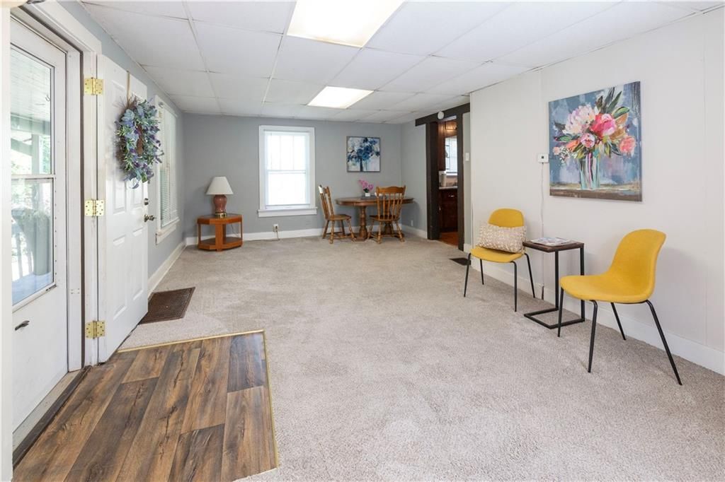 BUDGET FRIENDLY HOUSING!! CUTE RANCH HOME/ spacious front porch! LARGE living room/ dining room combo with built-in closet and bench storage. Even space to have an in-home office! YOU WILL LOVE THIS ADORABLE KITCHEN with wood cabinets and old-school CHARM! Kitchen has a large spice rack space, stackable washer & dryer, updated counter tops and so much more! Back stoop has a deck to sit and enjoy the yard or for summer BBQ's! Front porch can be easily decorated for the seasons! In the last 2 years the HVAC is replaced, WATER LINE replaced, and PEX plumbing. Breakerbox updated and updated meter. Home has google fiber. There is a fenced front yard perfect for pets or kids. Basement space is clean and great for a storm shelter. Feel free to open the cellar door and look. Also to the right of the property is a long driveway for off-street parking space for 3 cars. CLOSE to HWY access, shopping, restaurants and more! So much to love and so affordable!