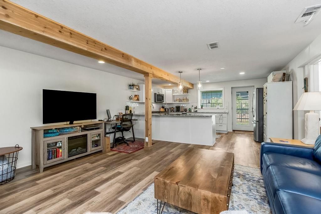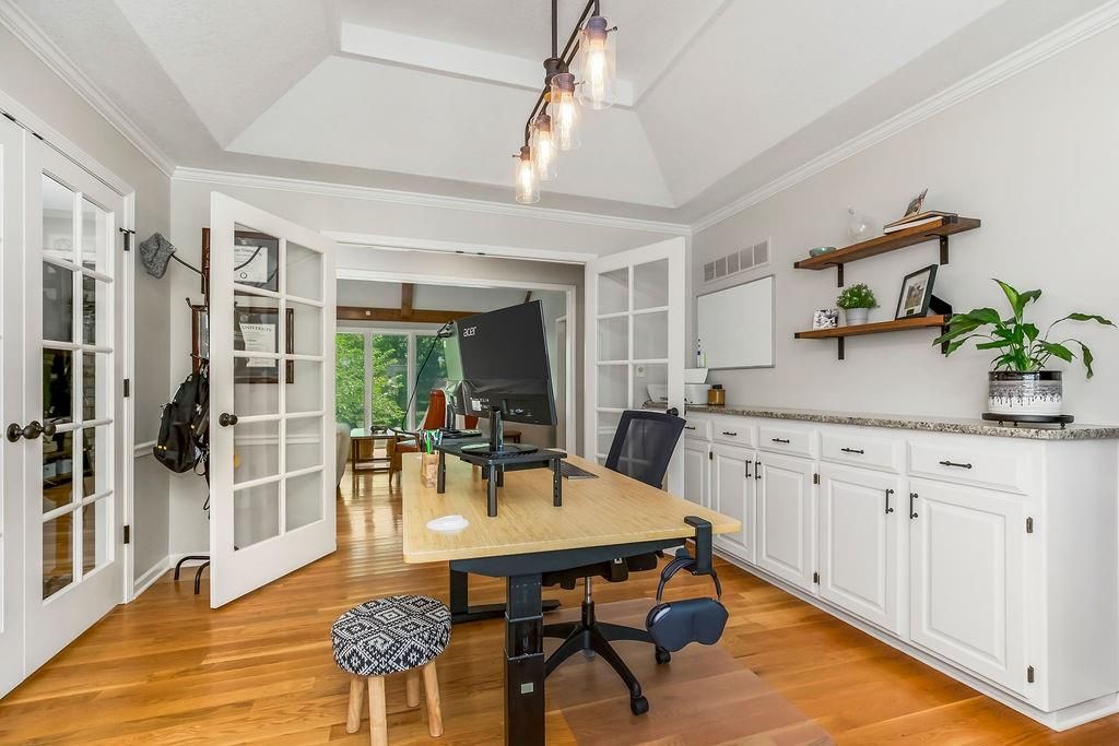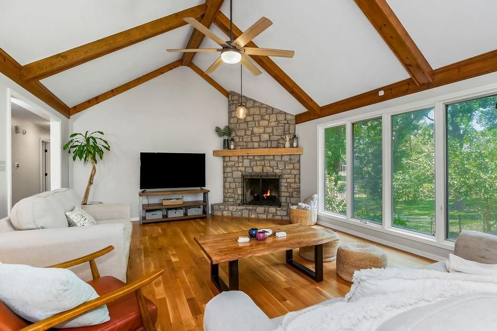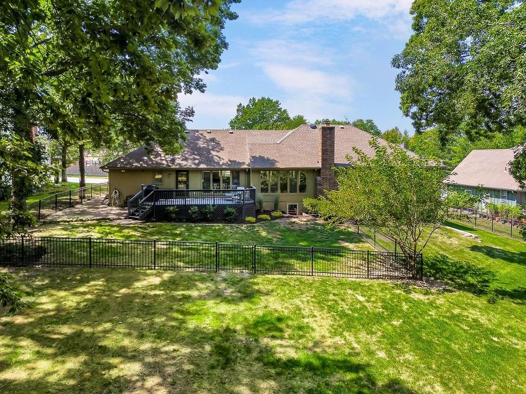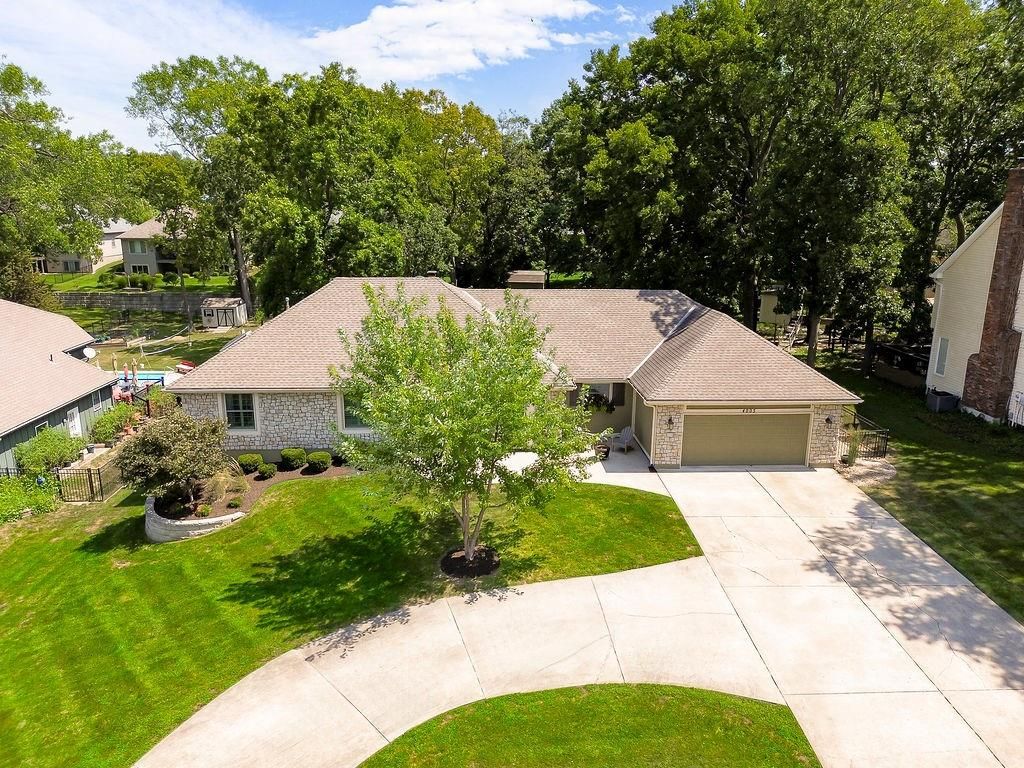 This stunning 5-bedroom, 3.5-bathroom Ranch/Reverse 1.5 story home in Lee's Summit offers more than meets the eye - boasting over 4,500 square feet of living space in the highly desirable Blue Springs South school district. Step inside to find beautiful wood floors, vaulted ceilings, granite countertops, and an abundance of natural light throughout. The open-concept main level features a large kitchen, expansive living room with fireplace, and a huge master suite that's sure to impress. The walk-out lower level is truly like having a second home! Complete with a mother-in-law suite featuring its own full kitchen, living room, bedroom, and bathroom, it also includes a guest bedroom, rec room with wet bar, and a projector-ready movie area - perfect for entertaining family and friends. Outside, this home sits on a half-acre treed lot with a partially fenced backyard, deck, and a utility shed for extra storage. The circle drive offers plenty of parking, while the thoughtful touches - like a custom dog door leading to a ramped dog house off the laundry room - make it unique and functional for every lifestyle. This home truly has it all: space, updates, character, and a one-of-a-kind layout ready to fit your family's needs. Don't miss your chance to make it yours!