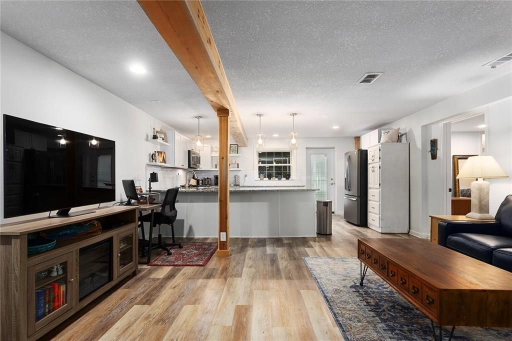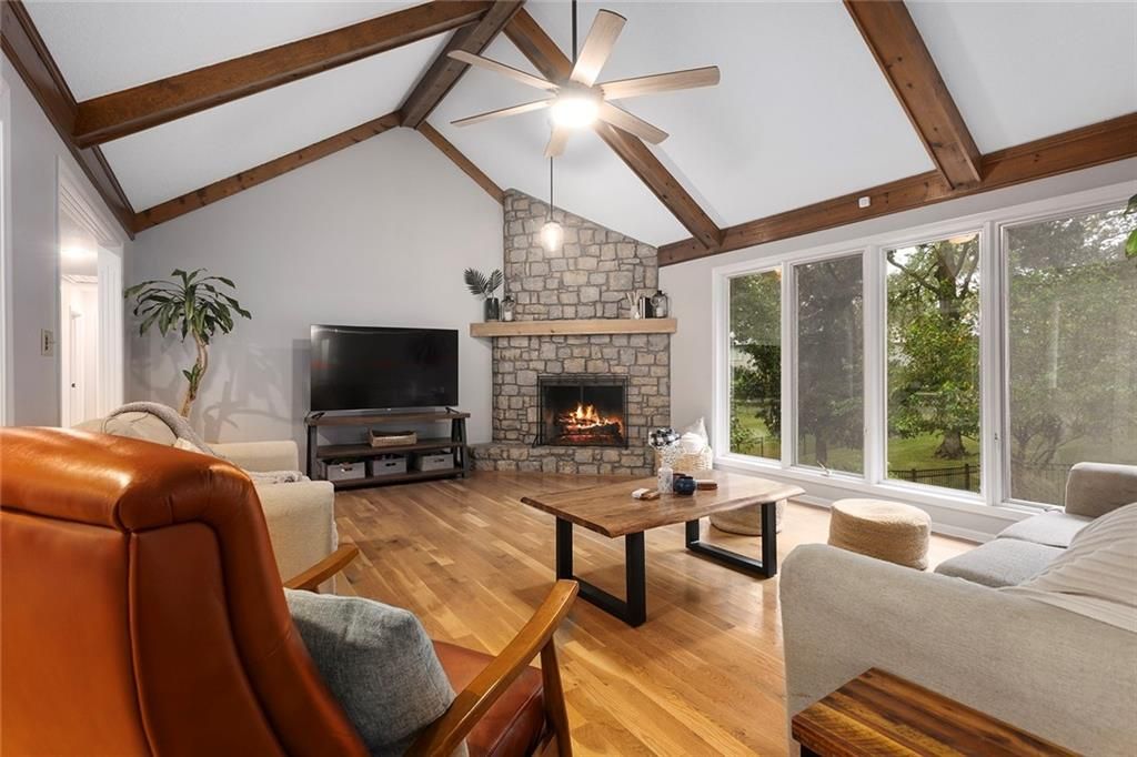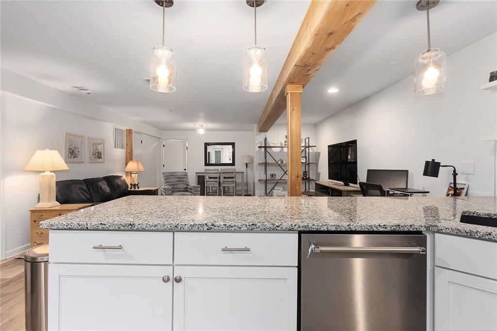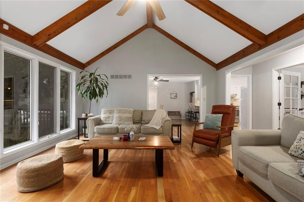 This charming 5-bedroom, 3.5-bathroom home in Lee's Summit offers more than meets the eye - boasting over 4,500 square feet of living space in the highly desirable Blue Springs South school district. Step inside to find beautiful wood floors, vaulted ceilings, granite countertops, and an abundance of natural light throughout. The open-concept main level features a large kitchen, expansive living room with fireplace, and a huge master suite that's sure to impress. The walk-out lower level is truly like having a second home! Complete with a mother-in-law suite featuring its own full kitchen, living room, bedroom, and bathroom, it also includes a guest bedroom, rec room with wet bar, and a projector-ready movie area - perfect for entertaining family and friends. Outside, this home sits on over a half-acre treed lot with a partially fenced backyard, deck, and a utility shed for extra storage. The circle drive offers plenty of parking, while the thoughtful touches - like a custom dog door leading to a ramped dog house off the laundry room - make it unique and functional for every lifestyle. This home truly has it all: space, updates, character, and a one-of-a-kind layout ready to fit your family's needs. Don't miss your chance to make it yours! *Back on the market due to buyers financing falling through the week prior to closing, no fault of the seller.