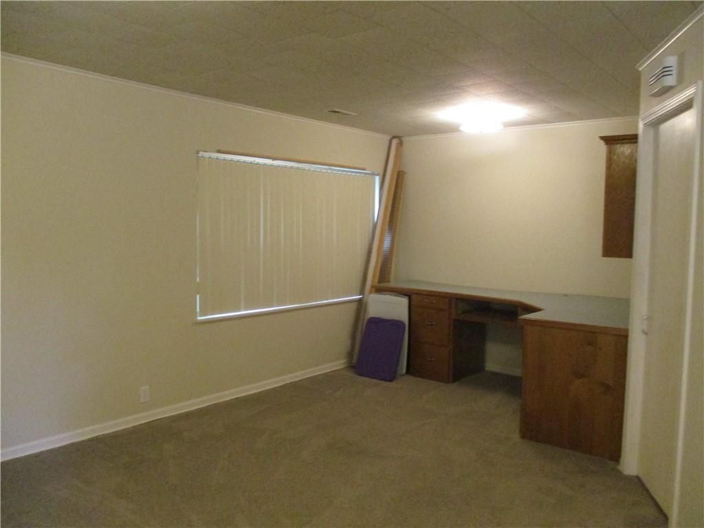 All Brick home on beautiful corner lot. Walk to school, hospital, restaurants or other business. This home offers so much including all new carpet. Your builtin desk rounds out the office area which can have many other purposes. Use your imagination. This custom Armstrong kitchen will wow you with all the hidden features including pantry with roll out shelves, under-cabinet lighting and beautiful stained glass inserts with upgraded counters. The formal dining room has lovely lighted builtin hutch. Perfect place to put your Christmas tree in front of large windows. You'll find a fireplace which owners haven't used it is flanked by shelving. Next you'll find two large bedrooms with ample storage and two bathrooms. Next outside is great with a large screened porch. This is the perfect place to start your day and place to relax with lemonade after a long day. If you like to entertain the large patio offers space for all your friends. Yard is mostly fenced in. We know you can never have too much storage, so check out cabinets under the carport and inside off the office area. You'll also find the utility room with utility sink.