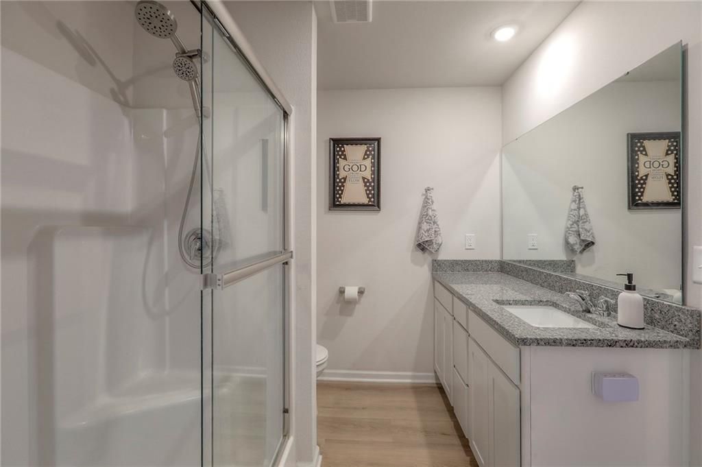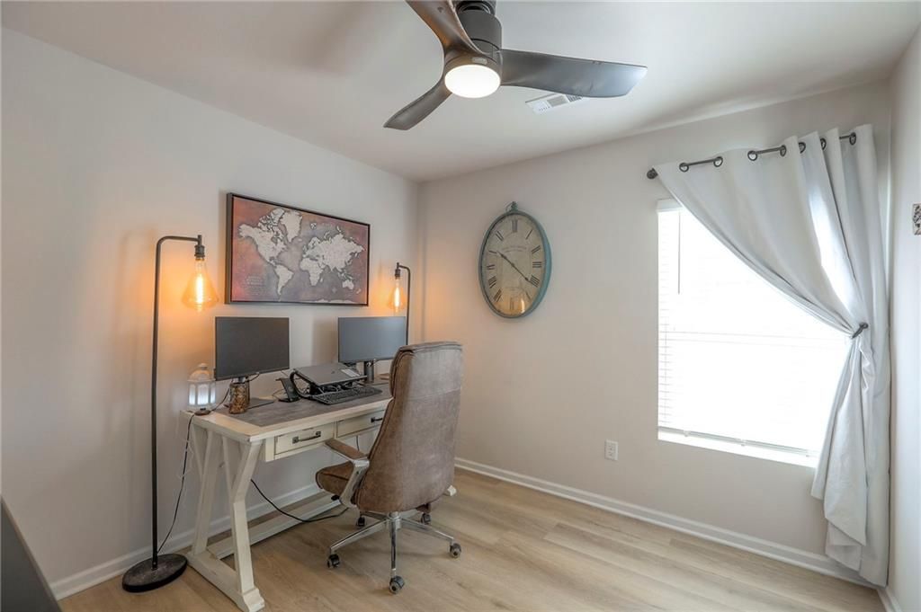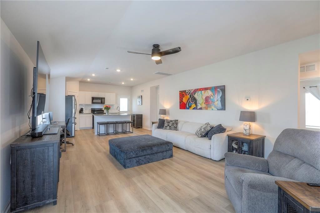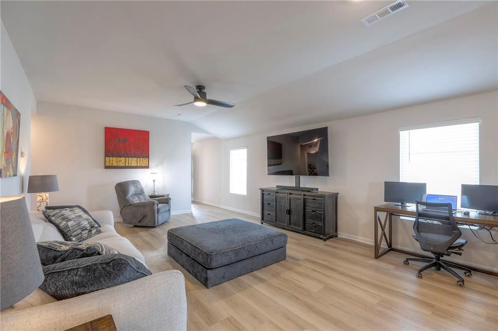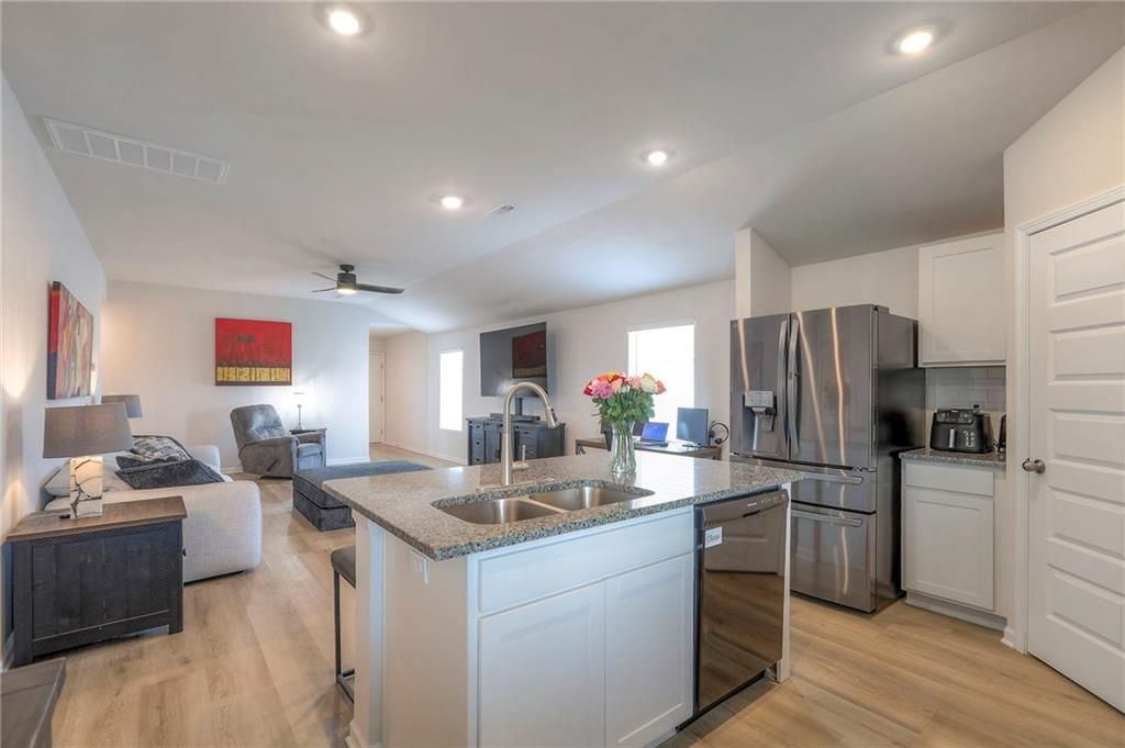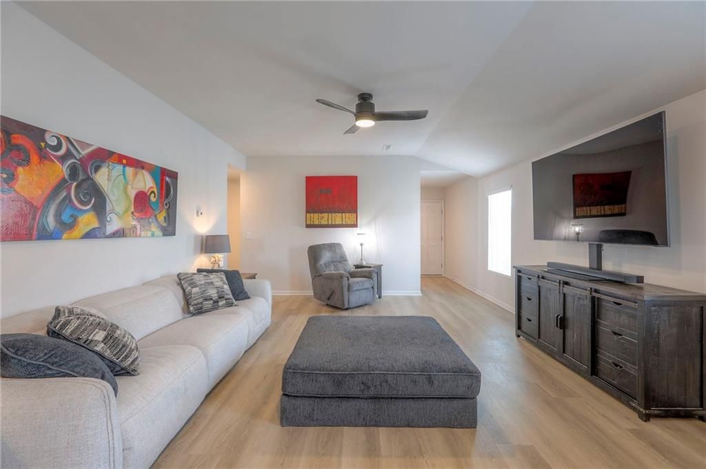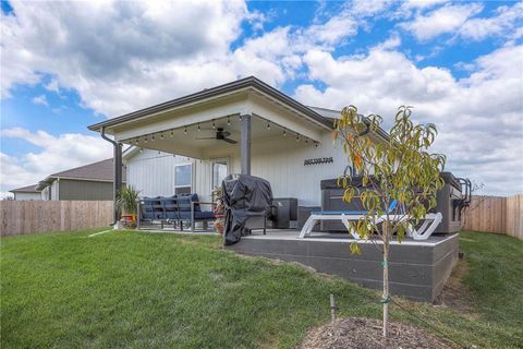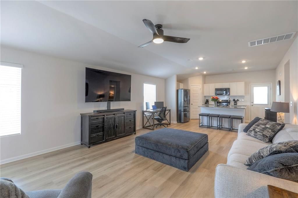 Perfect for INVESTORS or new homeowners! Beaumont floor plan priced over $10k BELOW builder pricing plus $25k in UPGRADES: 6 ft cedar fence, covered patio w/additional patio space, LVP flooring thru-out entire home, storm doors, five ceiling fans, landscaping surrounding the home, and more! **ASSUMABLE LOAN!** IMMEDIATE OCCUPANCY AVAILABLE! House was occupied for less than five months. The ultimate outdoor backyard oasis! Located just 12 minutes from the Legends. **Covered back porch**. Incredible landscaping including all new front landscaping, rock path from driveway to side gate, and three raised beds, trees, and rose garden in the backyard. Six ft cedar fence with double-boarded interior finish on fence. **Five new ceiling fans operated with remote control.** Decorator blinds on all windows and storm doors (upgraded with glass and screen options) on both doors. Enjoy the ultimate outdoor backyard oasis under your covered patio surrounded by beautiful landscaping. **And don't forget, the builder warranty is in place until May 2026.**