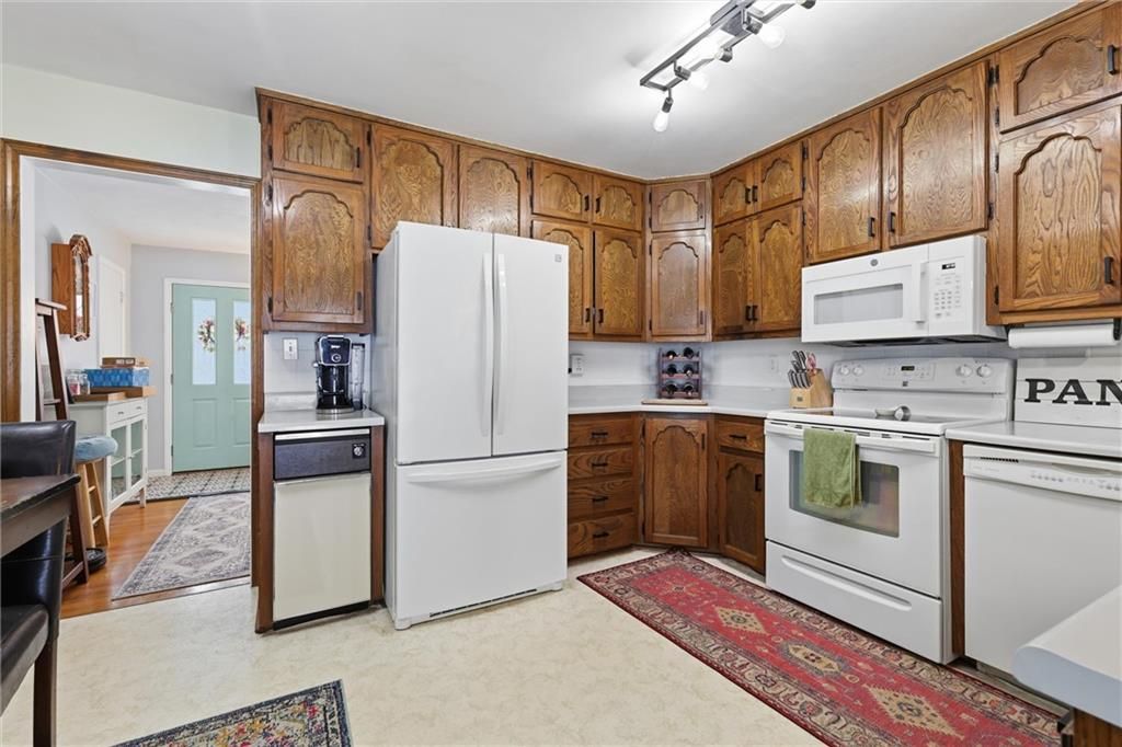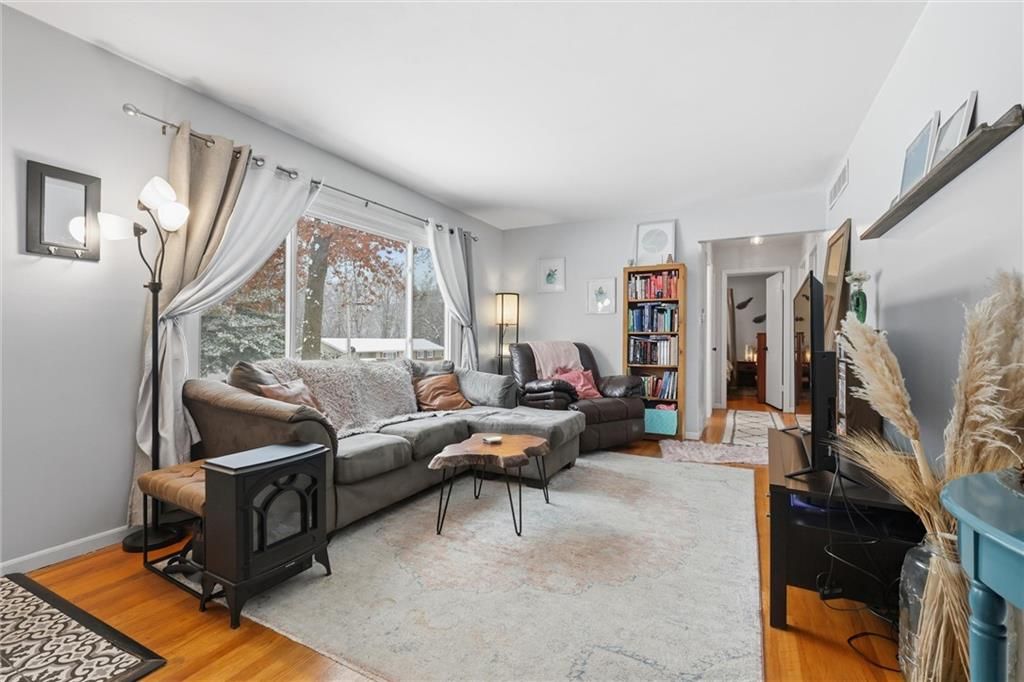 Welcome home to this beautifully refreshed ranch offering thoughtful upgrades throughout. Step inside to find freshly painted interiors and newly revealed hardwood flooring on the main level, creating a warm and welcoming atmosphere. The large kitchen features tons of cabinets, new cabinet hardware and a new microwave, with updated light fixtures adding a modern touch throughout the home. This home offers three comfortable bedrooms, a well maintained bathroom, and newly finished space in the basement that would be perfect for a home office, gym, or bonus living area. You'll also enjoy ample storage in the basement, along with new basement windows that bring in natural light. Outside, relax on the huge covered porch overlooking the large fenced yard, ideal for pets, play, or entertaining. Sellers have also made valuable exterior improvements, including a French drain along the back of the house and installed patio blinds for added privacy and comfort. A new electrical panel provides peace of mind for years to come. With its blend of charm, functionality, and recent upgrades, this move in ready home is truly a standout. Don't miss the opportunity to make it yours!