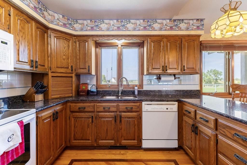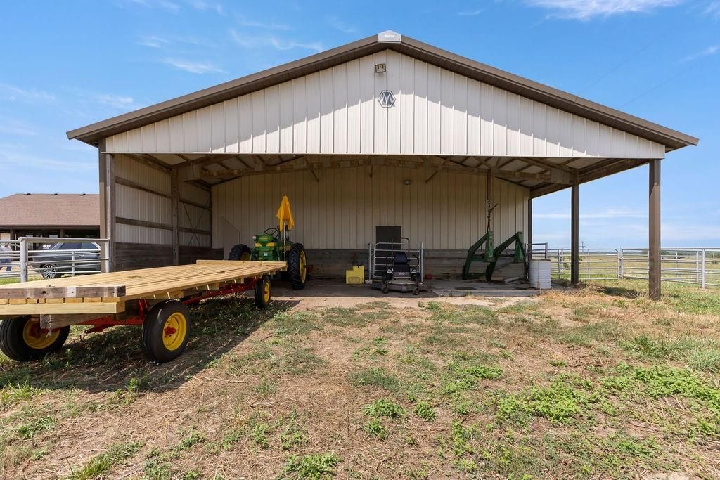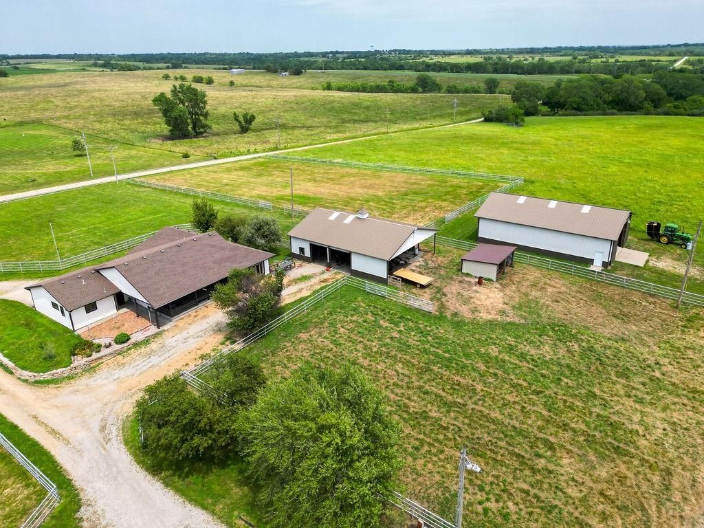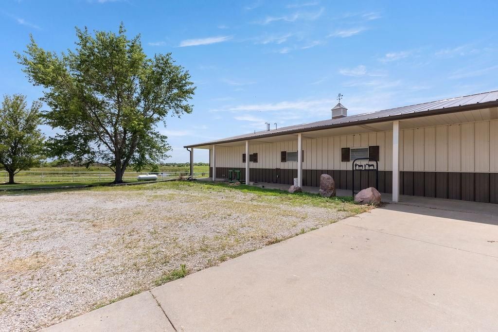 Horse Lovers Delight!!! 74 Acres MOL Just North of Topeka just off of 75 Highway and 94th Road. This property HAS IT ALL!! And unbelievable views from every side! Large pond just off the back of the home....perfect way to relax at the end of the day and throw a line in the water! This updated ranch home has a brand new roof as of July 2025 with gutters and downspouts. Beautiful home has tons of natural light in the open floor plan with vaulted ceilings, granite counters, mud room, tons of storage with the basement and a stunning covered porch! Hall bath is equipped with a walk in tub! All Morton Brand Buildings include: indoor riding arena, 7 stall heated barn, equipment storage, garage and pipe fencing. Stalls have auto waterers, swing out feeders. Horse barn has 7 matted stalls: 6-11.5 X 12 stalls and 1-11.5 X 14 stall, heated tack room, bathroom, hot/cold wash rack, 6" concrete alley, skylights, 9 ft sliding doors that open to the indoor riding arena! 60 X 40 building has a concrete floor with water and electricity and 1-13 X 13 stall. The shop has been recently spray foamed for added insulation. There is nothing to be desired here! Move right in and ENJOY your little slice of heaven!!