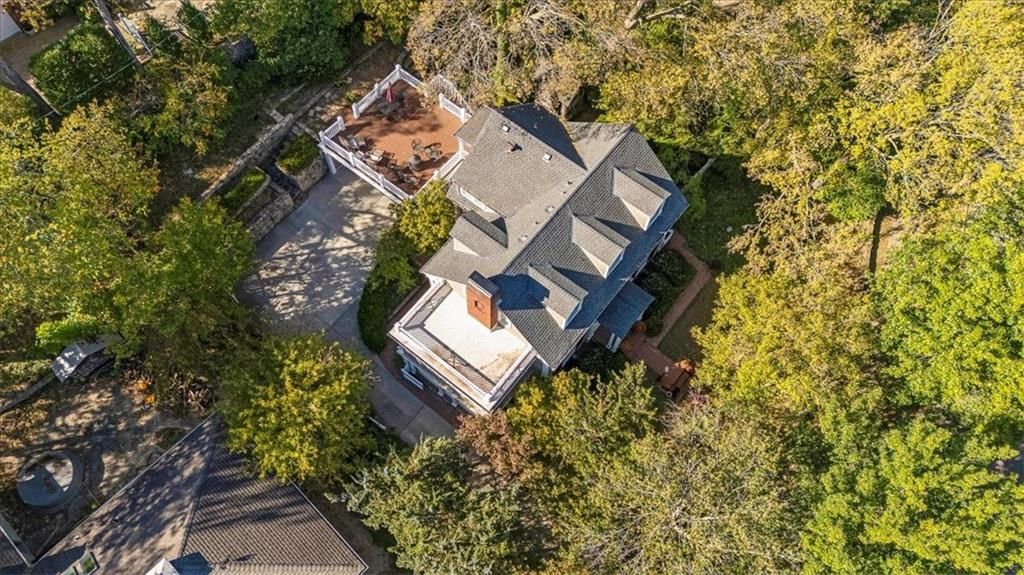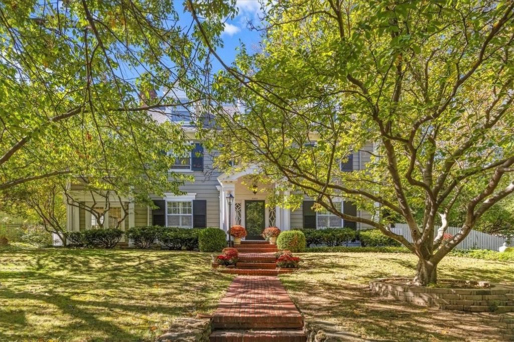 Here's your chance to own a truly remarkable piece of Kansas City history in the coveted Rockhill neighborhood. This gorgeous three-story Colonial blends timeless elegance with modern comfort, featuring a brick-paved walkway, stately columns, and a sweeping center-hall foyer. Inside, the formal living room offers built-ins and a cozy fireplace, while the sunroom doubles as a bright family retreat. The spacious dining room easily accommodates dinner for twelve and opens to a charming side terrace. The updated kitchen boasts a gas range, display cabinetry, and an inviting breakfast room, with a nearby mudroom providing extra storage and convenient access to the attached two-car garage. Upstairs, you'll find five spacious bedrooms, three full baths, and a versatile sitting or workout room off the primary suite. A secondary staircase connects directly to the kitchen for added ease. Outdoors, enjoy beautifully landscaped grounds with stone paver walkways, multiple patios, and an expansive second-story terrace perfect for entertaining or relaxing. Updated electrical throughout! From its curb appeal to its character, this home is a true celebration of 100 years of beauty, craftsmanship, and grace.