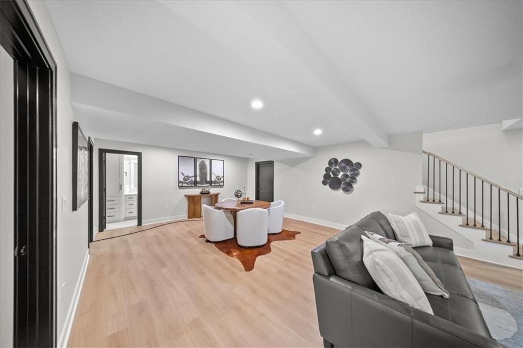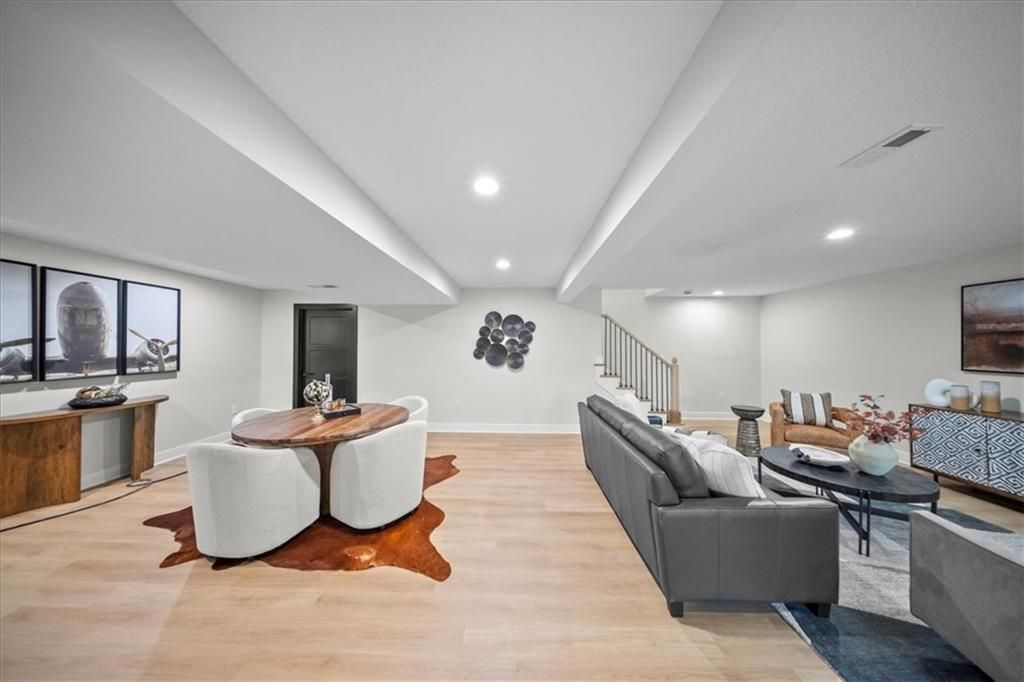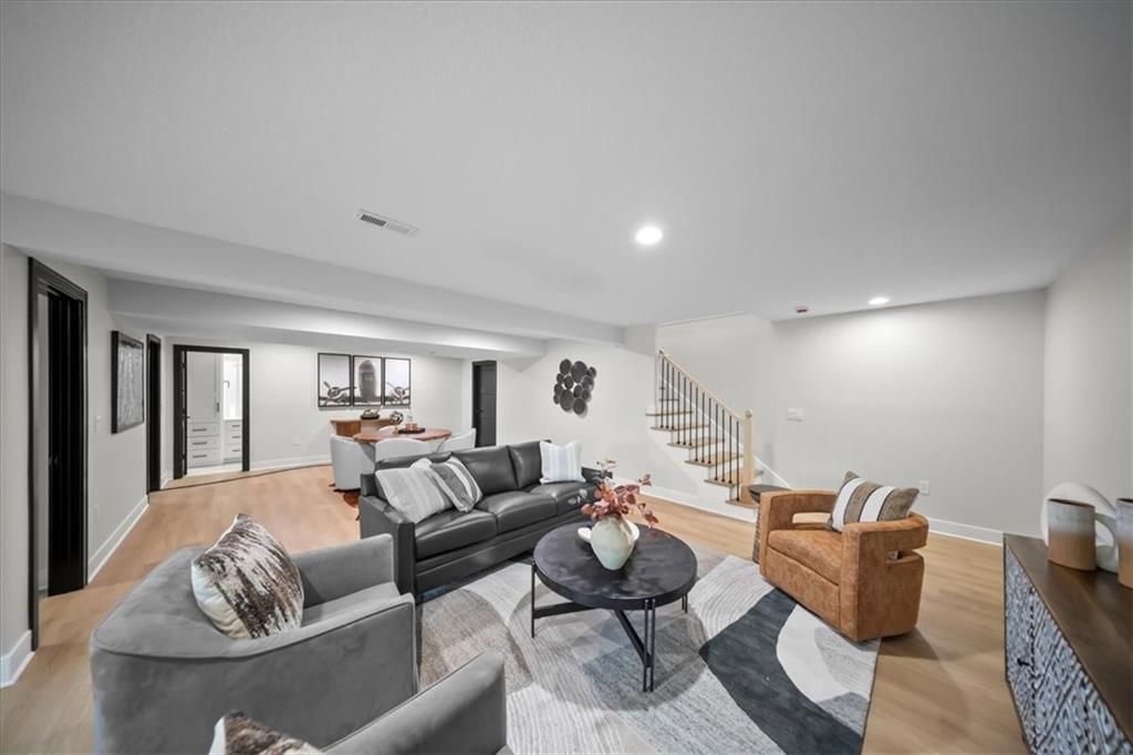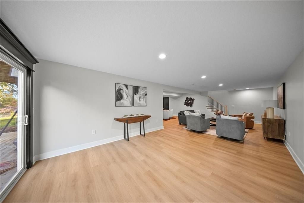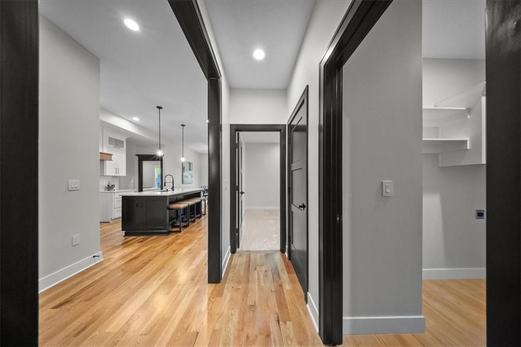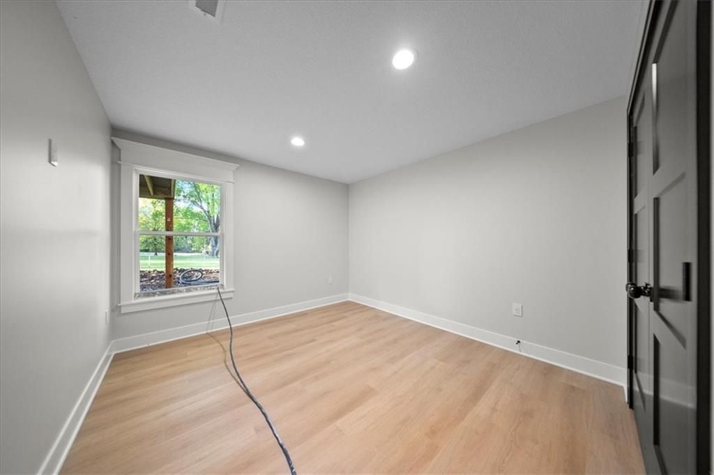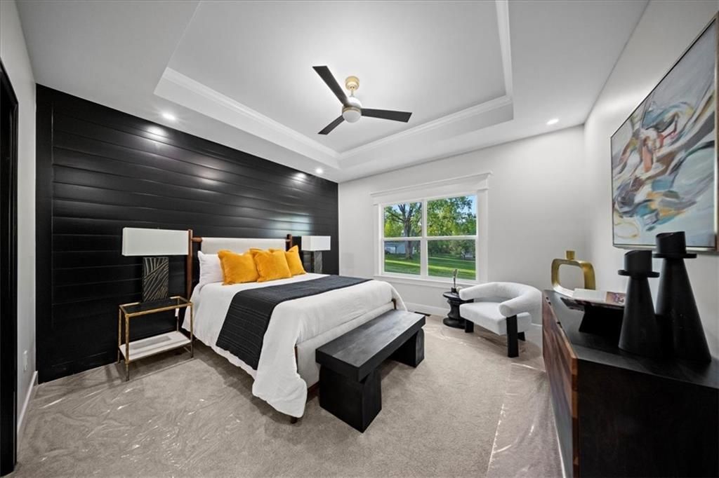 Experience modern luxury in this brand-new, custom-built 5-bedroom, 3-bath ranch-style home with a fully finished walkout basement. From the moment you step inside, you'll notice the thoughtful design and impeccable craftsmanship that make this home a true masterpiece. The open-concept layout features luxury vinyl flooring throughout, plush carpet in the bedrooms, and high-end finishes at every turn. The gourmet kitchen is a showstopper - complete with quartz countertops, custom cabinetry, and premium appliances - perfect for hosting and entertaining. The primary suite is a private retreat, offering a spacious walk-in closet with a vanity and a beautifully designed custom-tiled shower with a rain showerhead. Downstairs, the finished walkout basement provides expansive living space and is prepped for your dream bar setup - ideal for entertaining guests. Enjoy seamless indoor-outdoor living with beautifully landscaped grounds, fresh sod, and easy highway access. The oversized 2-car garage includes a commercial-grade opener, blending style with function. Every detail was carefully curated by a builder who takes pride in their craft, this home is not just built, it's designed to impress. The property backs to a non-operating railroad for added privacy with no train traffic