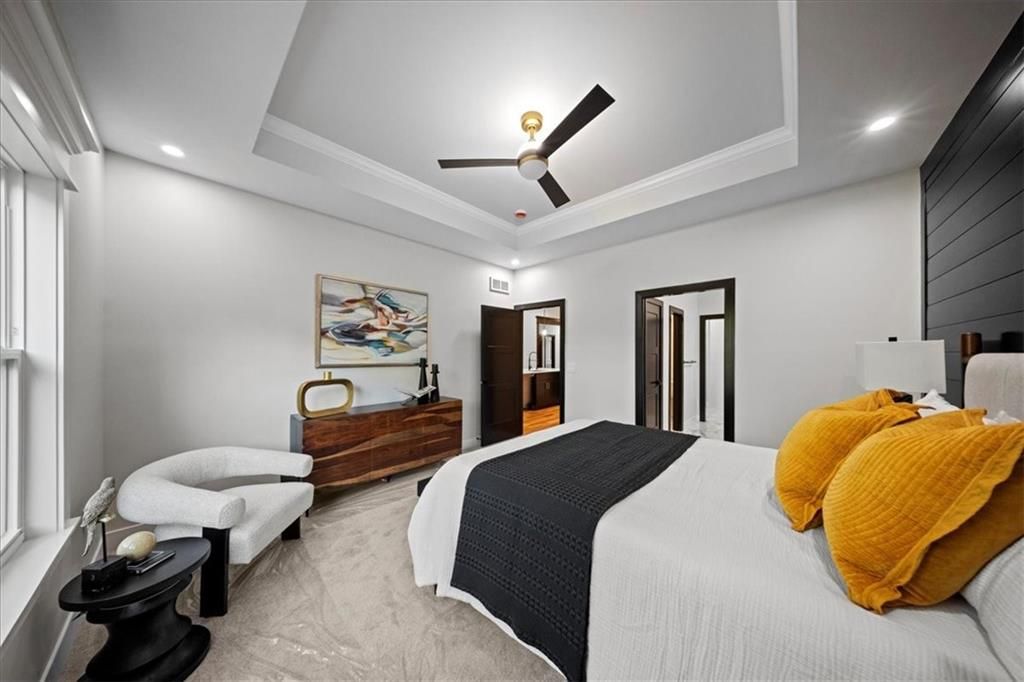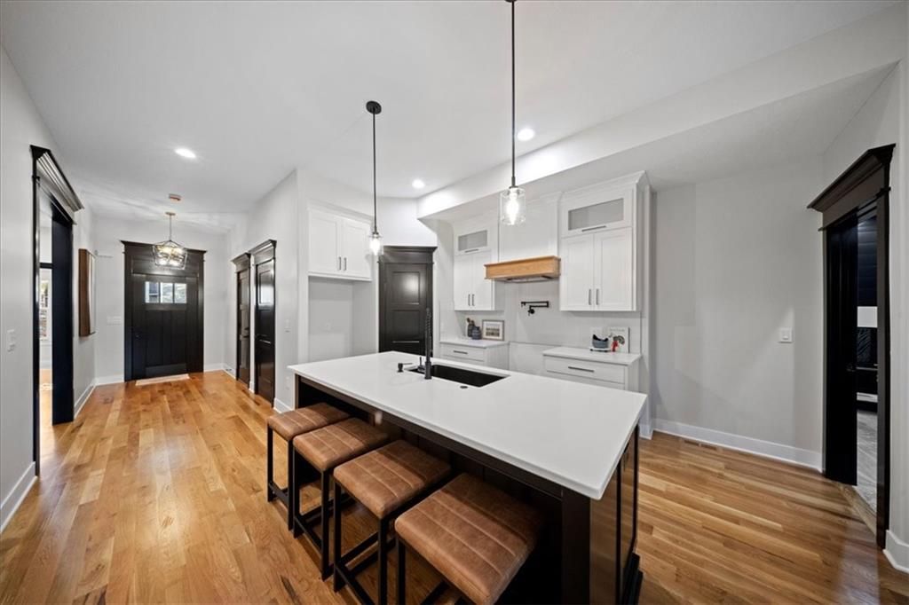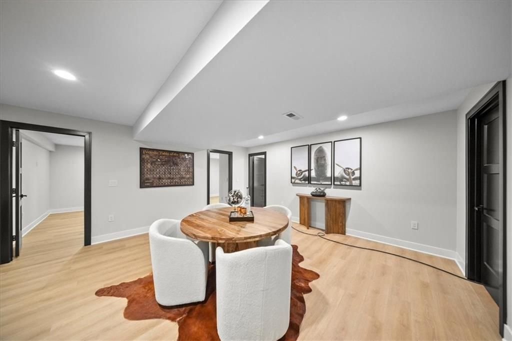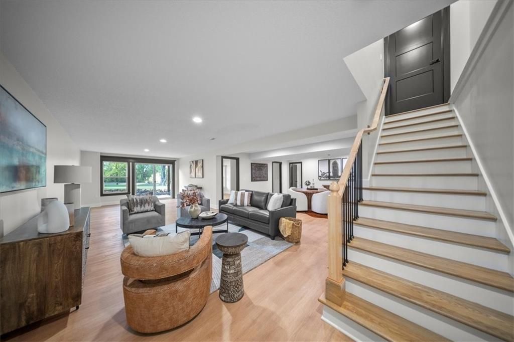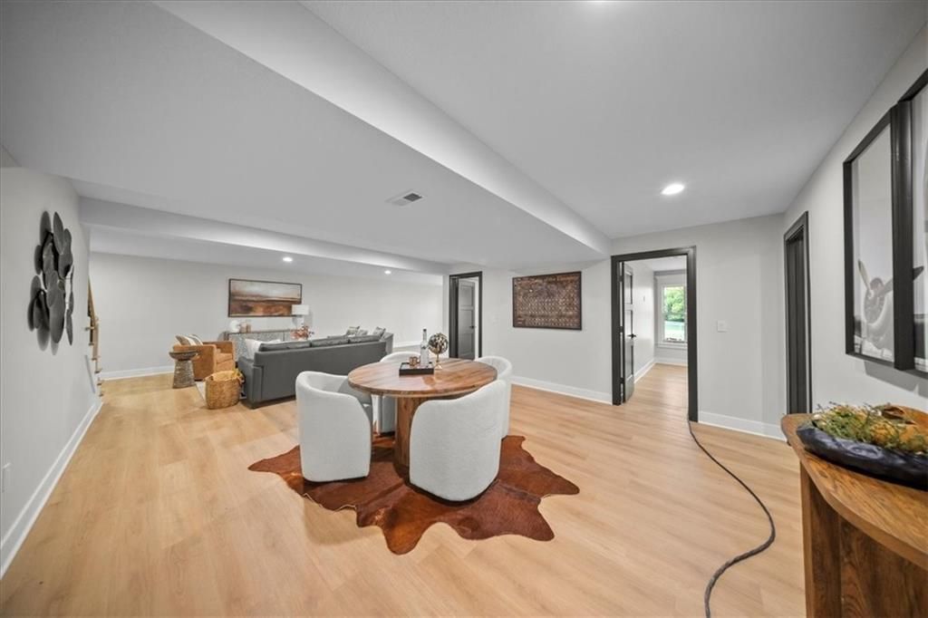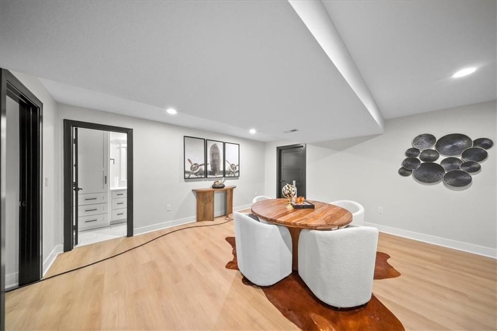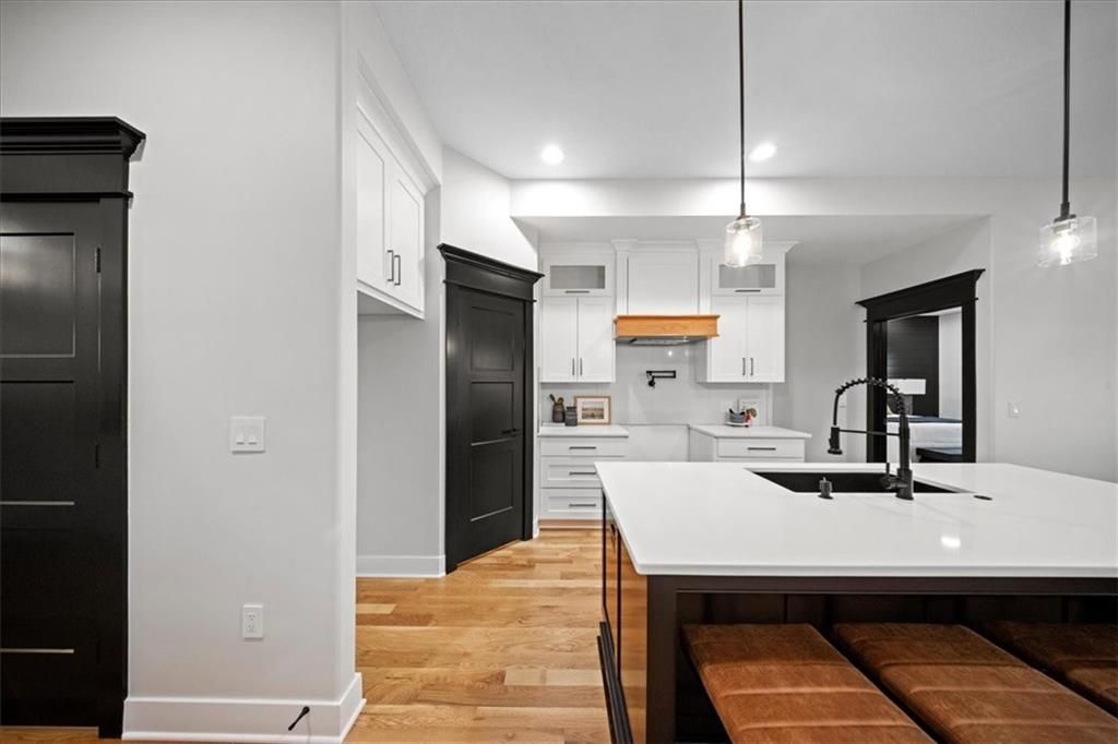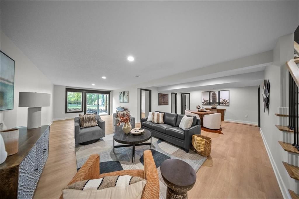 Experience modern luxury in this brand-new, custom-built 5-bedroom, 3-bath ranch-style home with a fully finished walkout basement. From the moment you step inside, you'll notice the thoughtful design and impeccable craftsmanship that make this home a true masterpiece. The open-concept layout features luxury vinyl flooring throughout, plush carpet in the bedrooms, and high-end finishes at every turn. The gourmet kitchen is a showstopper - complete with quartz countertops, custom cabinetry, and premium appliances - perfect for hosting and entertaining. The primary suite is a private retreat, offering a spacious walk-in closet with a vanity and a beautifully designed custom-tiled shower with a rain showerhead. Downstairs, the finished walkout basement provides expansive living space and is prepped for your dream bar setup - ideal for entertaining guests. Enjoy seamless indoor-outdoor living with beautifully landscaped grounds, fresh sod, and easy highway access. The oversized 2-car garage includes a commercial-grade opener, blending style with function. Every detail was carefully curated by a builder who takes pride in their craft, this home is not just built, it's designed to impress. The property backs to a non-operating railroad for added privacy with no train traffic