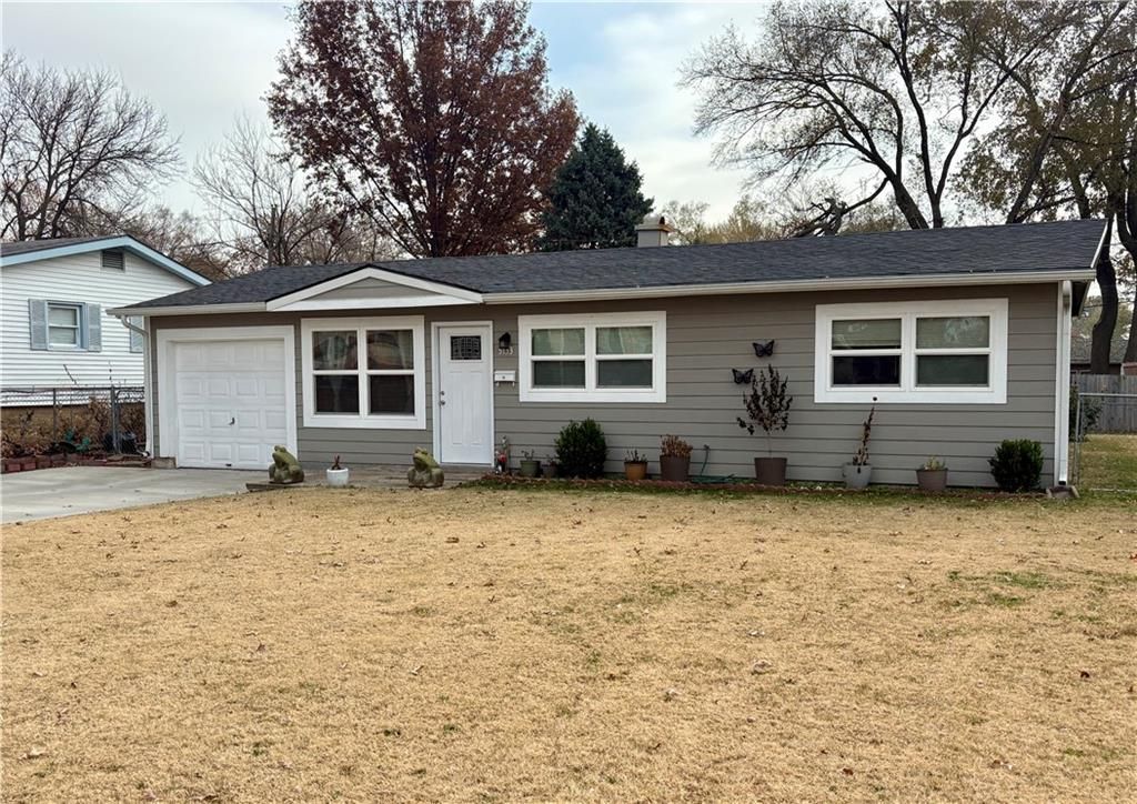 One level living in KCK! Well maintained 3 bedroom, 1 bathroom ranch with one car garage. Enjoy 2 separate living spaces with living room and family room areas with ceramic, wood-look tile flooring throughout main living areas. Beautifully updated bathroom with tiled shower over tub. Main level laundry. Kitchen features stainless steel appliances with large walk-in pantry and all appliances stay! New roof in 2024 and newer driveway widened for additional parking. Large family room with fireplace steps out to the covered deck in fully fenced backyard with shed for storage.