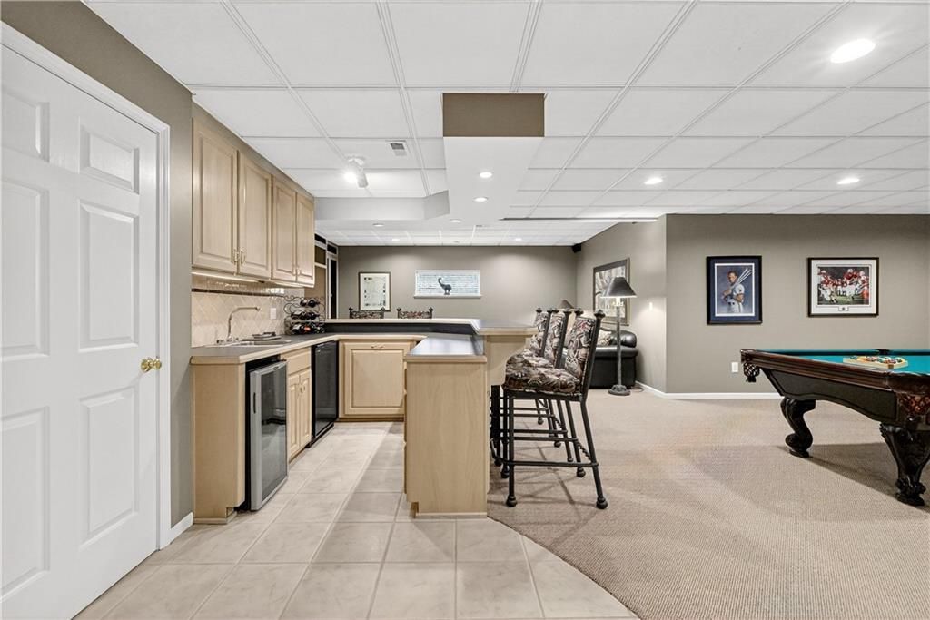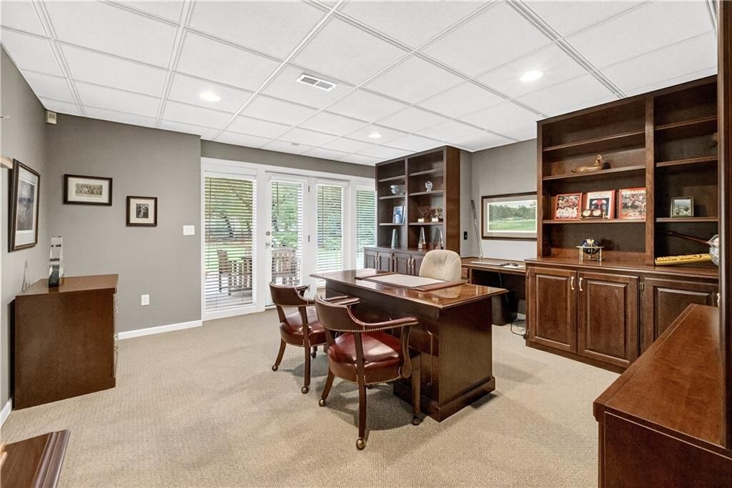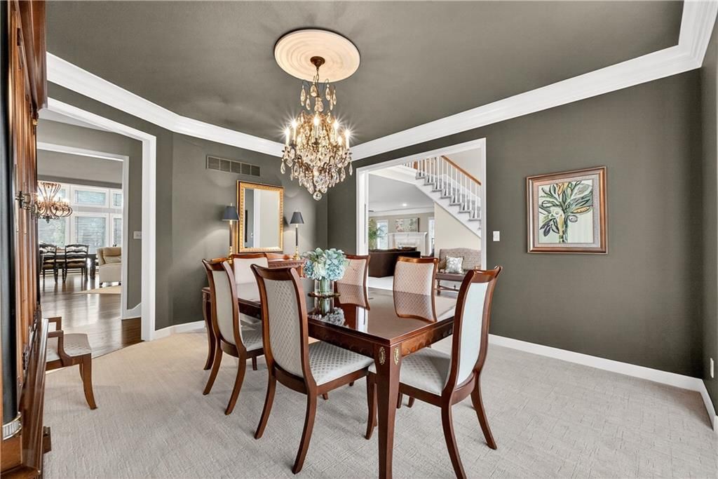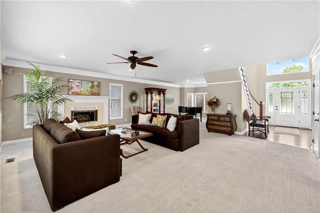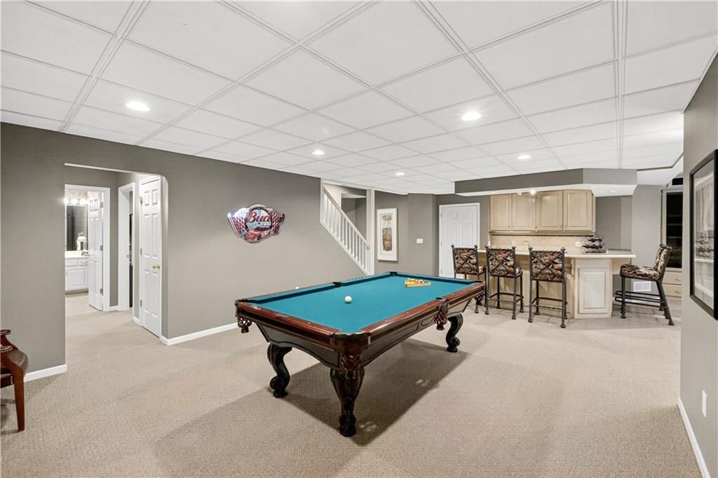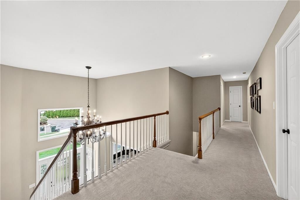 Nestled at the end of a quiet cul-de-sac, this stately home sits on an expansive lot framed by mature trees, creating a private and picturesque backdrop. Step inside to an impressive two-story entry, where a sweeping circular staircase sets the tone for the grandeur within. A sun-drenched living room with a cozy fireplace flows seamlessly into a flexible space perfect for a piano, reading nook, or intimate sitting area. The heart of the home is the spacious hearth-room kitchen - complete with its own fireplace, custom cabinetry, gleaming granite countertops, stainless steel appliances, and a generous dining area framed by a wall of windows. A convenient back staircase leads directly upstairs, enhancing the home's thoughtful design. The large primary suite is a true retreat with a boxed ceiling and double doors that open into a newly remodeled spa-like bath featuring a walk-in shower, jetted tub, double vanity, stunning tile flooring, and a sizable walk-in closet. Upstairs, you'll find four additional bedrooms - each with private bath access and double vanities - plus fresh carpet throughout. The walk-out lower level is designed for entertaining, offering a family room with a wet bar, media area, space for pool or game tables, a private office and sixth bedroom with custom built-ins, an exercise room, bathroom, and workroom. Outdoors, a spacious deck overlooks the lush, treed backyard, while the lower patio offers even more room for gatherings. A side-entry garage with a brand-new epoxy floor completes this exceptional home. Back on market at no fault of seller and not due to inspections. Buyer changed their minds.