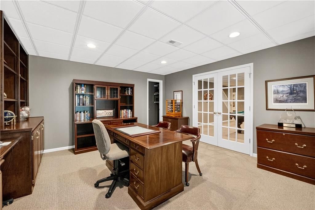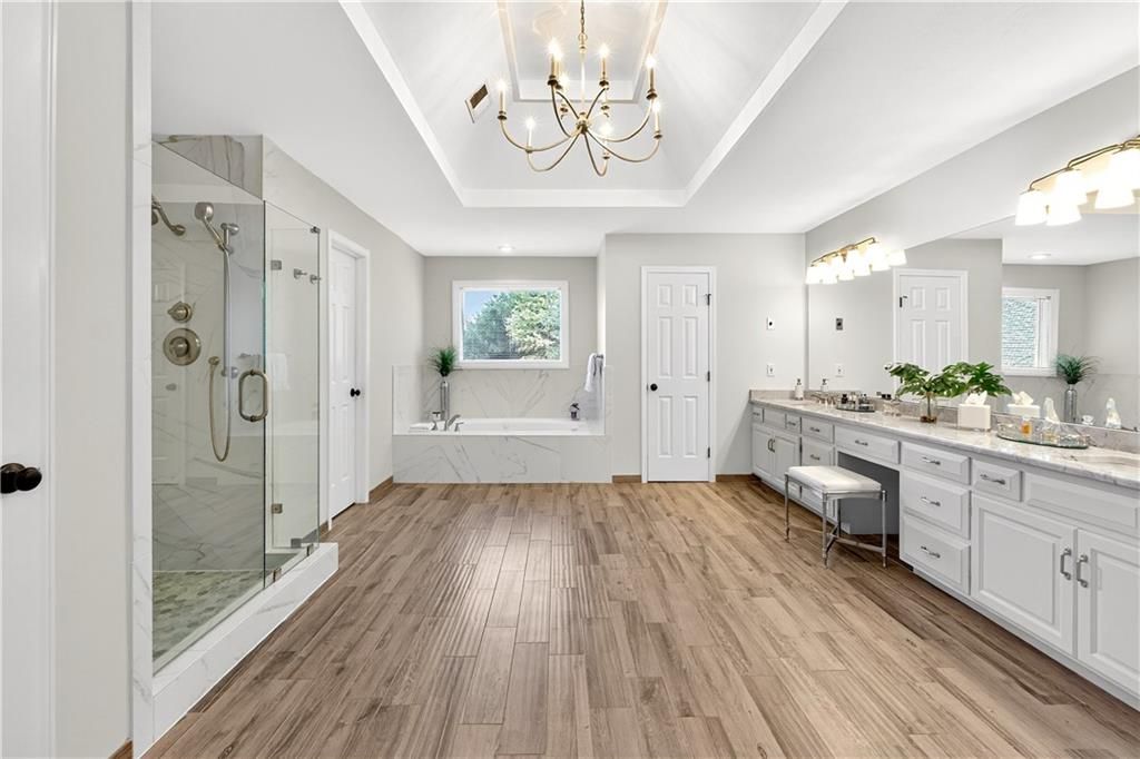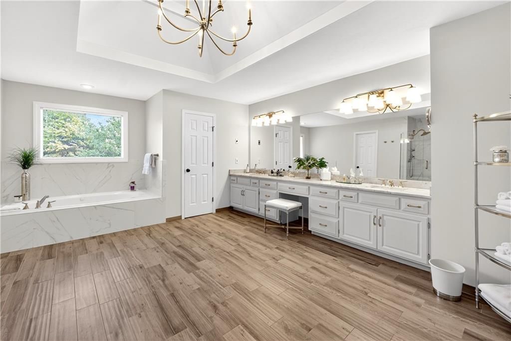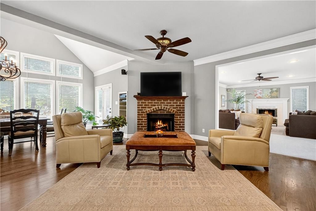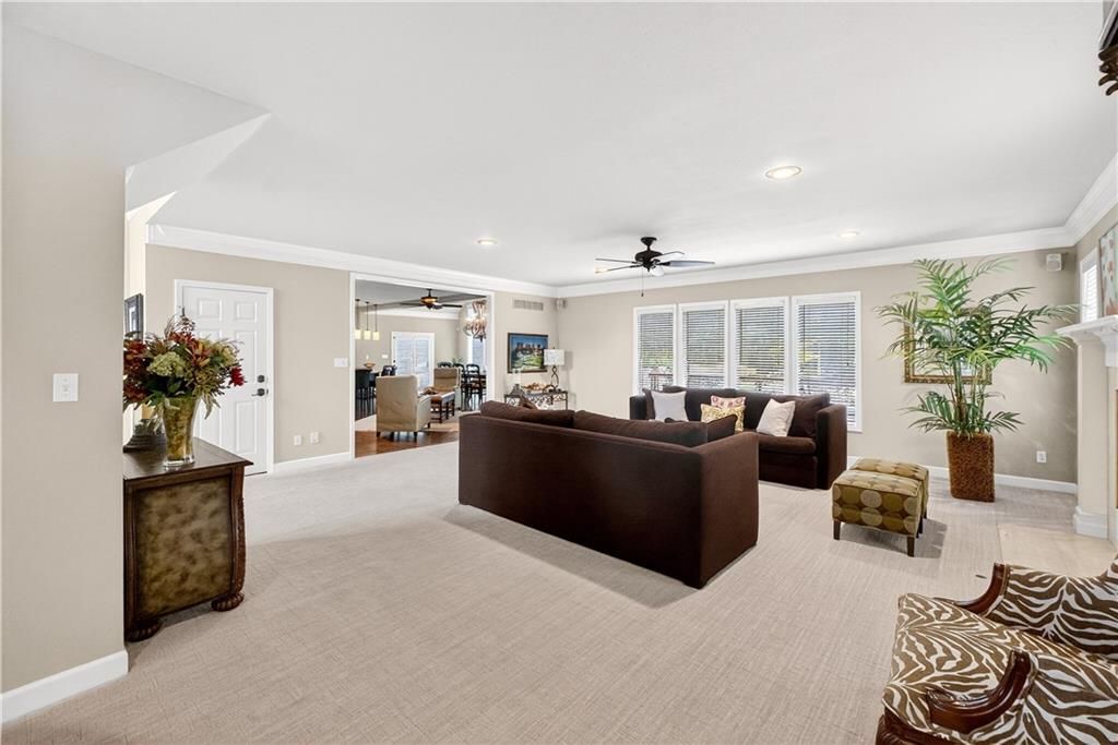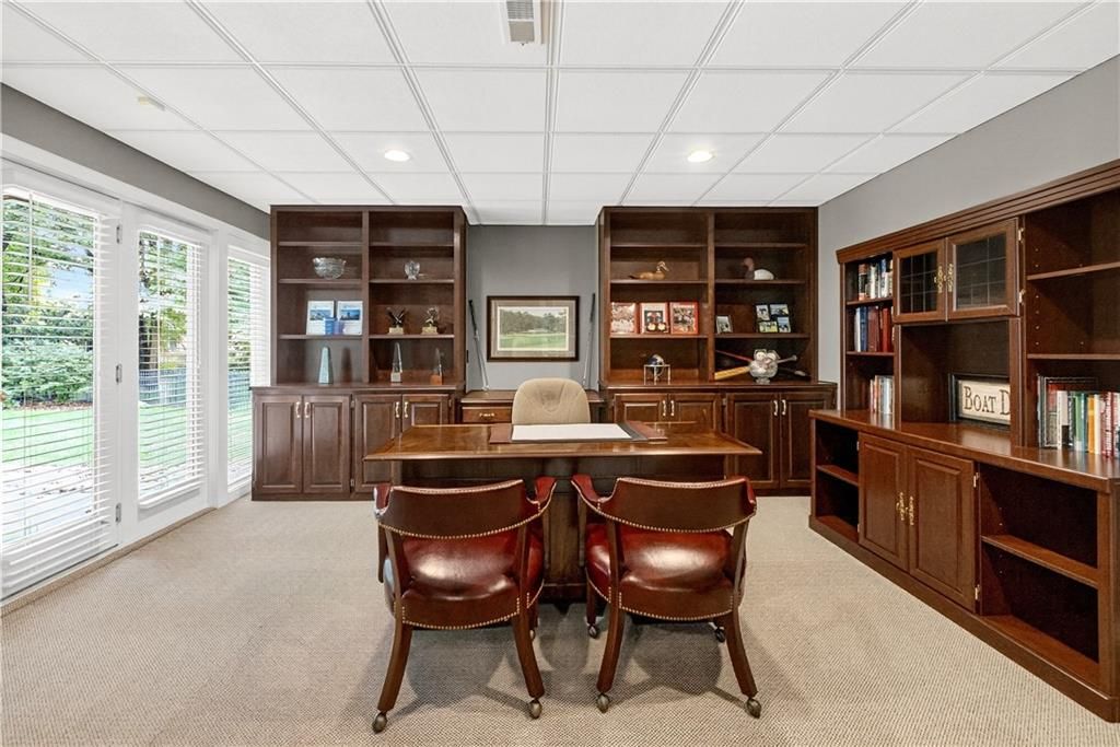 Nestled at the end of a quiet cul-de-sac, this stately home sits on an expansive lot framed by mature trees, creating a private and picturesque backdrop. Step inside to an impressive two-story entry, where a sweeping circular staircase sets the tone for the grandeur within. A sun-drenched living room with a cozy fireplace flows seamlessly into a flexible space perfect for a piano, reading nook, or intimate sitting area. The heart of the home is the spacious hearth-room kitchen - complete with its own fireplace, custom cabinetry, gleaming granite countertops, stainless steel appliances, and a generous dining area framed by a wall of windows. A convenient back staircase leads directly upstairs, enhancing the home's thoughtful design. The large primary suite is a true retreat with a boxed ceiling and double doors that open into a newly remodeled spa-like bath featuring a walk-in shower, jetted tub, double vanity, stunning tile flooring, and a sizable walk-in closet. Upstairs, you'll find four additional bedrooms - each with private bath access and double vanities - plus fresh carpet throughout. The walk-out lower level is designed for entertaining, offering a family room with a wet bar, media area, space for pool or game tables, a private office and sixth bedroom with custom built-ins, an exercise room, bathroom, and workroom. Outdoors, a spacious deck overlooks the lush, treed backyard, while the lower patio offers even more room for gatherings. A side-entry garage with a brand-new epoxy floor completes this exceptional home. Back on market at no fault of seller and not due to inspections. Buyer changed their minds.