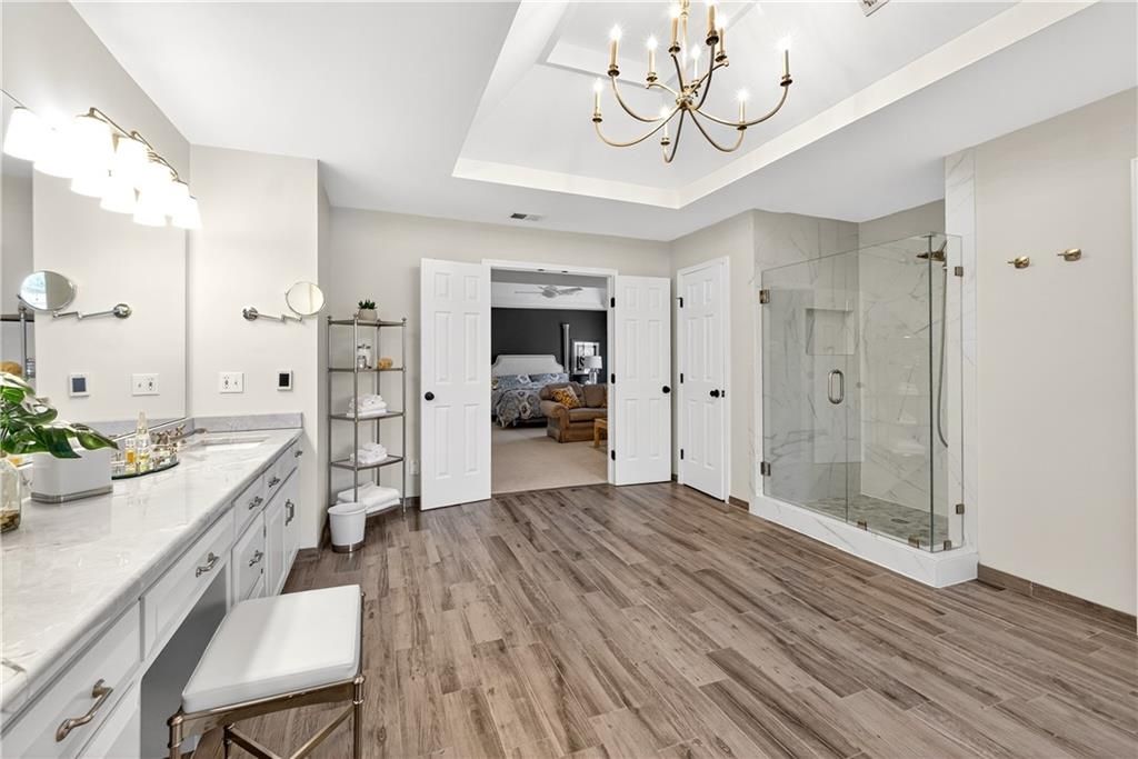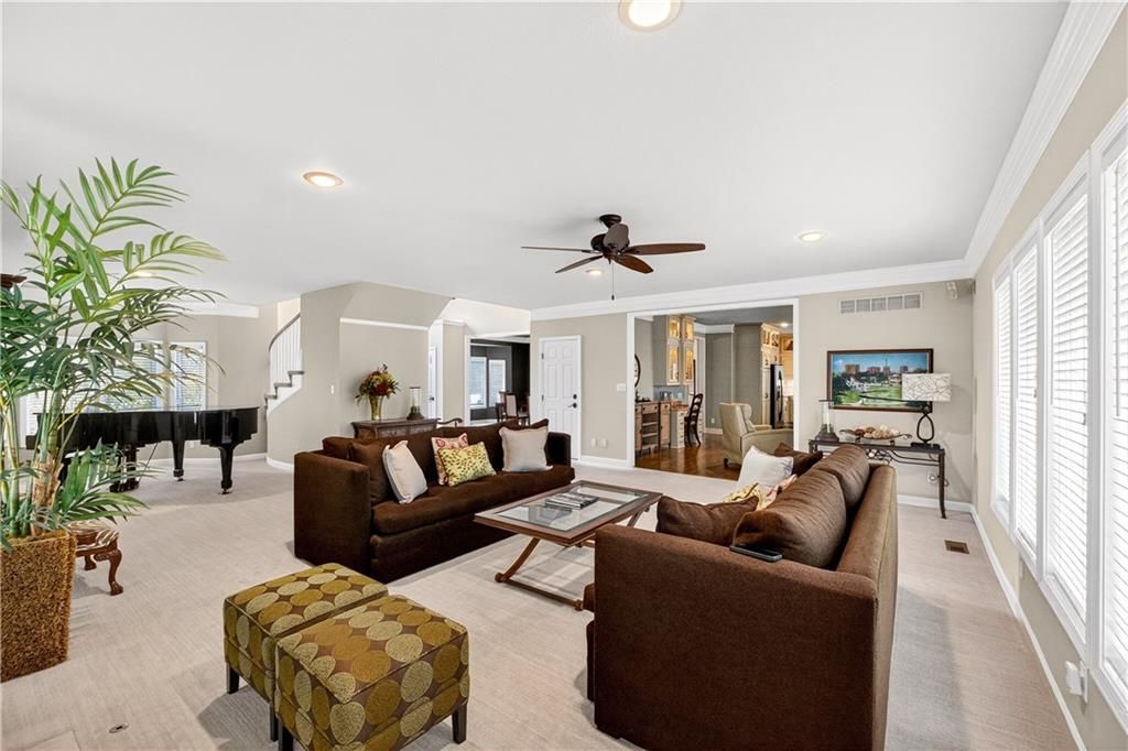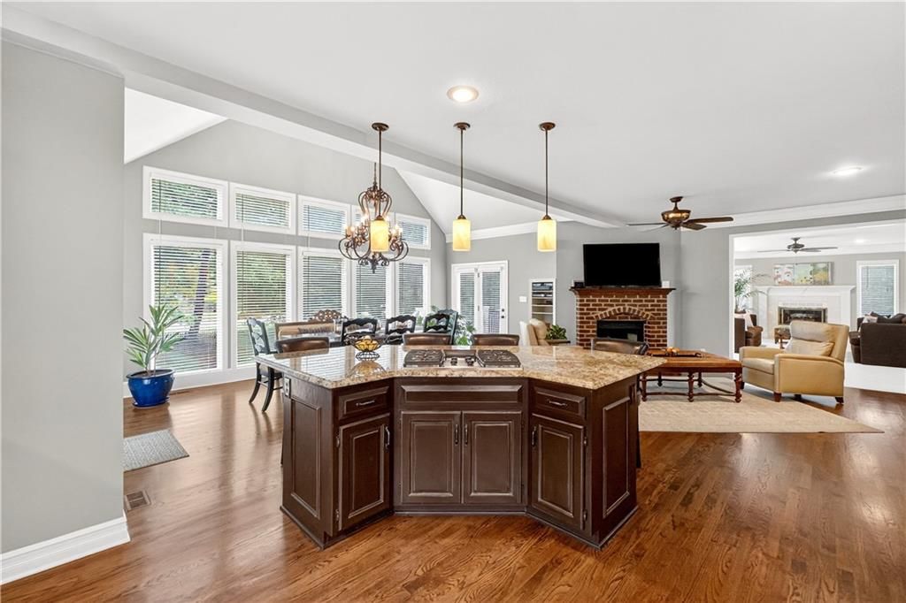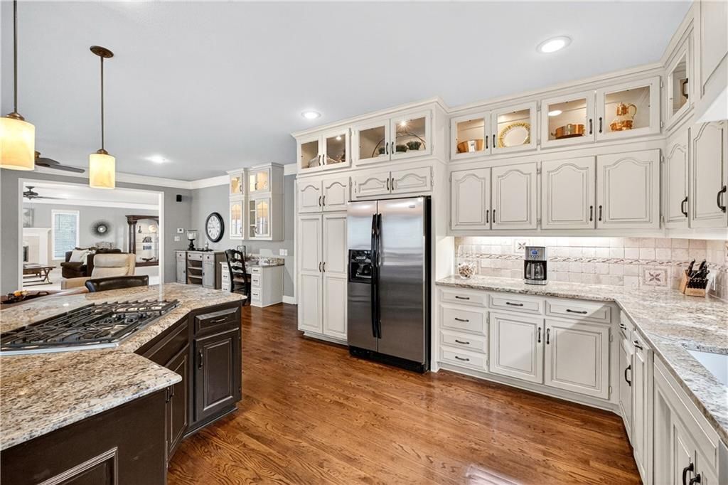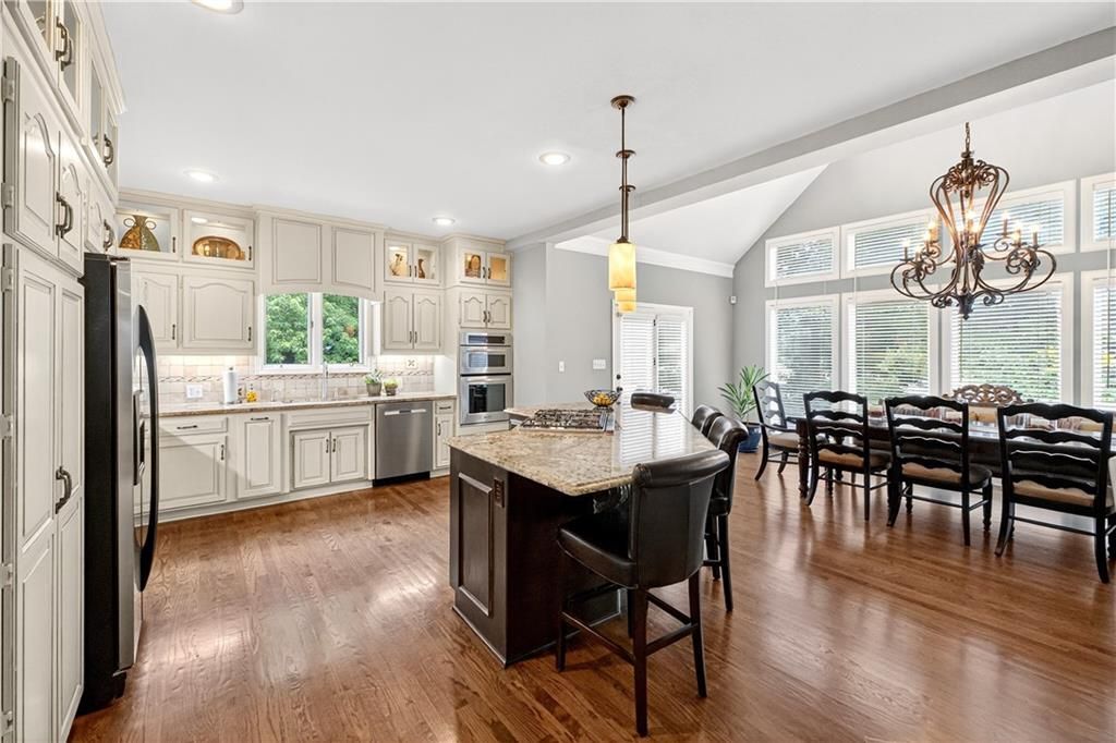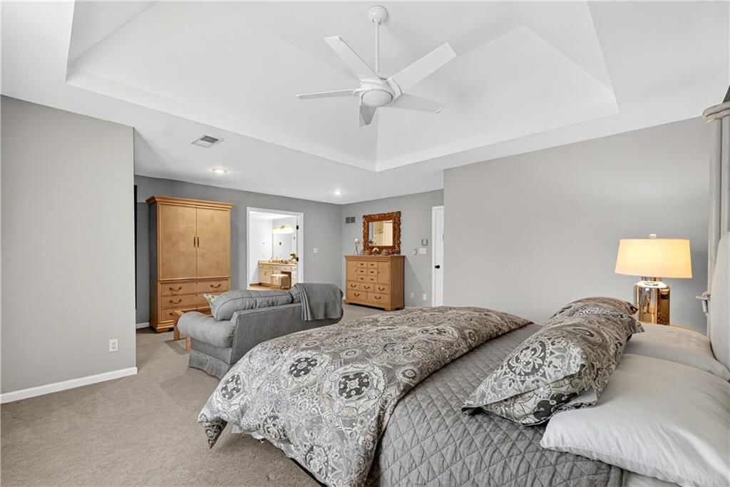 Nestled at the end of a quiet cul-de-sac, this stately home sits on an expansive lot framed by mature trees, creating a private and picturesque backdrop. Step inside to an impressive two-story entry, where a sweeping circular staircase sets the tone for the grandeur within. A sun-drenched living room with a cozy fireplace flows seamlessly into a flexible space perfect for a piano, reading nook, or intimate sitting area. The heart of the home is the spacious hearth-room kitchen - complete with its own fireplace, custom cabinetry, gleaming granite countertops, stainless steel appliances, and a generous dining area framed by a wall of windows. A convenient back staircase leads directly upstairs, enhancing the home's thoughtful design. The large primary suite is a true retreat with a boxed ceiling and double doors that open into a newly remodeled spa-like bath featuring a walk-in shower, jetted tub, double vanity, stunning tile flooring, and a sizable walk-in closet. Upstairs, you'll find four additional bedrooms - each with private bath access and double vanities - plus fresh carpet throughout. The walk-out lower level is designed for entertaining, offering a family room with a wet bar, media area, space for pool or game tables, a private office and sixth bedroom with custom built-ins, an exercise room, bathroom, and workroom. Outdoors, a spacious deck overlooks the lush, treed backyard, while the lower patio offers even more room for gatherings. A side-entry garage with a brand-new epoxy floor completes this exceptional home. Back on market at no fault of seller and not due to inspections. Buyer changed their minds.