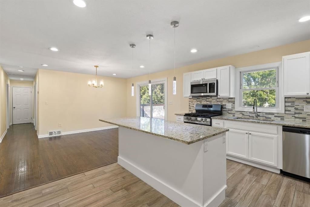 Step into a bright and inviting 5-bedroom, 3-bath residence that blends comfort, style, and versatility. Tucked along a quiet Raytown street, this spacious home offers a modern feel with fresh paint, updated flooring, and an easy flow throughout the main level. The open living and dining areas lead into a crisp, updated kitchen featuring stainless-steel appliances, clean-lined cabinetry, and contemporary countertops - an ideal setting for everyday meals or effortless entertaining. The fully finished lower level adds remarkable flexibility, offering its own full kitchen, living space, bedrooms, and bath. Perfect for multigenerational living, long-term guests, or additional income opportunities, this level provides both privacy and convenience. Enjoy outdoor living on the generous deck overlooking a fenced backyard - great for gatherings, quiet evenings, or room to play. Updated baths and modern touches throughout give the home a polished, move-in-ready appeal. Close to schools, parks, shopping, and major highways - with quick access to downtown Kansas City - this home brings comfort and convenience together in one standout package. * Stylish, spacious, and ready for new beginnings. ** Schedule your private tour today!