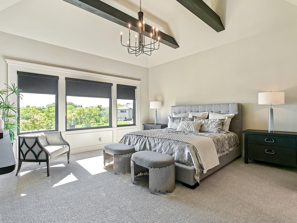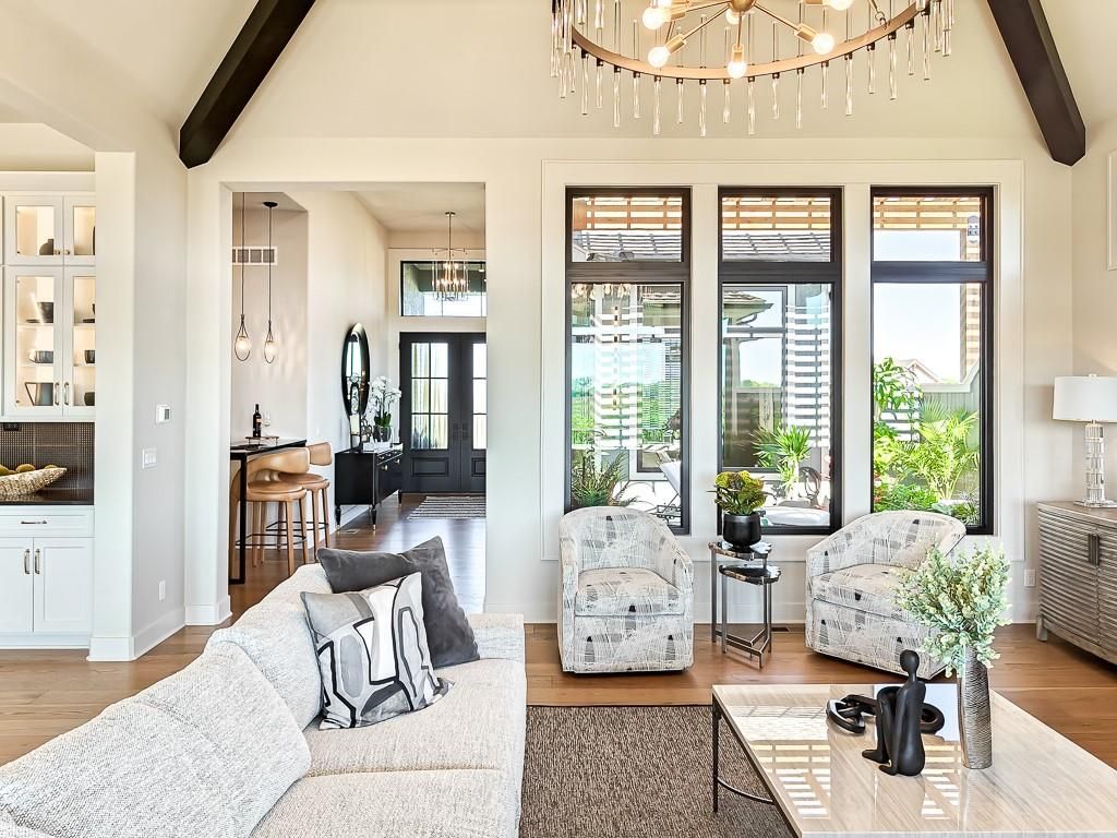 The stunning award winning Courtland Reverse by Don Julian Builders features an innovative layout that welcomes you into a charming pub-style entertaining area and a courtyard with a pergola, along with a front study. Past the courtyard, the spacious family room opens to a large kitchen island and generous walk-in pantry. A private hallway leads to the secluded primary suite and an additional bedroom. The lower level offers an expansive recreation room with a wet bar and two large bedrooms - perfect for guests or family. Sq ft and taxes are estimated and should be verified by Buyer's agent.