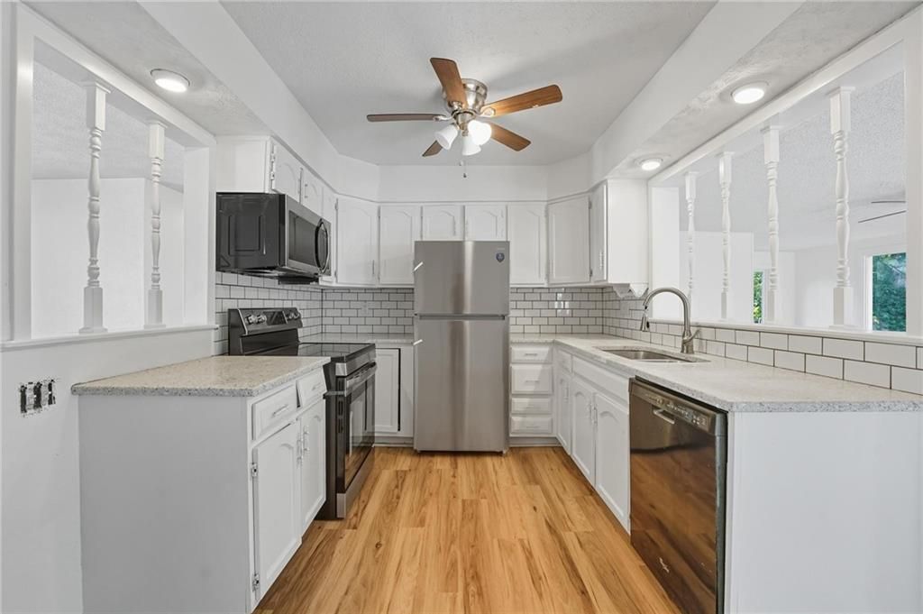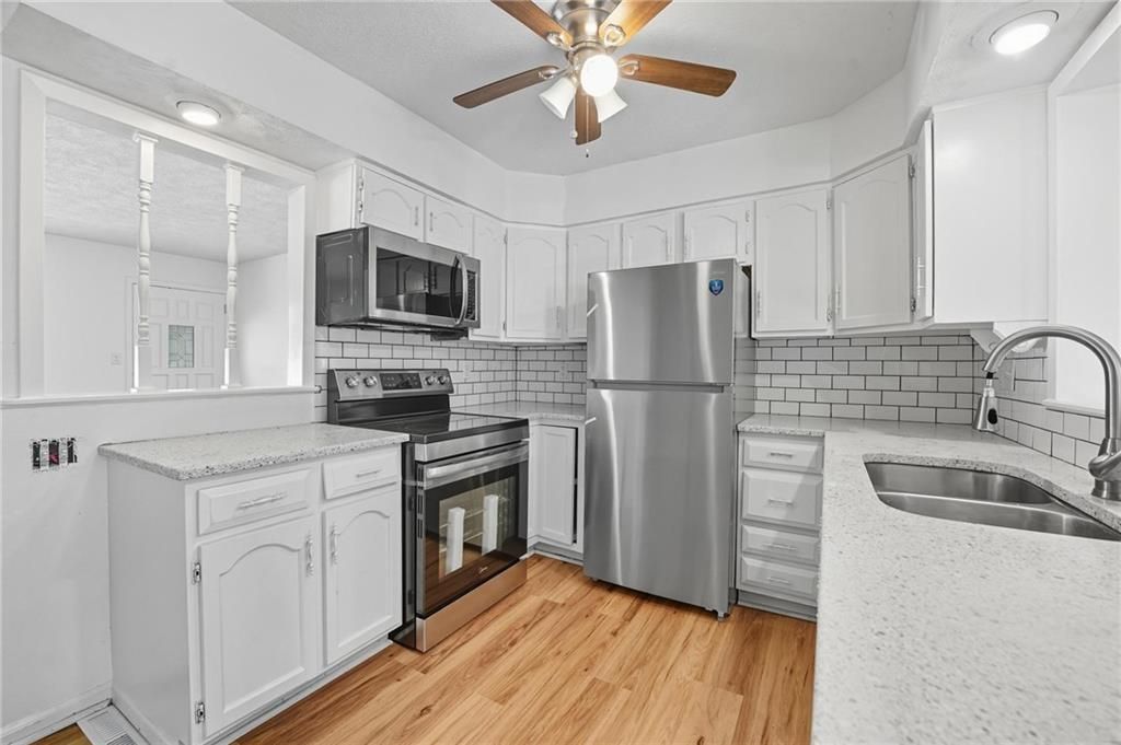 This 3 bedroom, 2 bathroom home offers plenty of space inside and out, with a functional floorplan and updates that make it move-in ready. The family room is filled with natural light and features a fireplace with sliding doors that open to the backyard deck. The kitchen includes bright cabinetry, subway tile backsplash, and stainless steel appliances, with easy flow into the dining space. The primary suite offers fresh carpet and a ceiling fan for comfort. A large unfinished basement provides endless possibilities for storage, hobbies, or future expansion. The one-car garage adds convenience, while the fenced backyard and deck create a great spot to enjoy the outdoors.