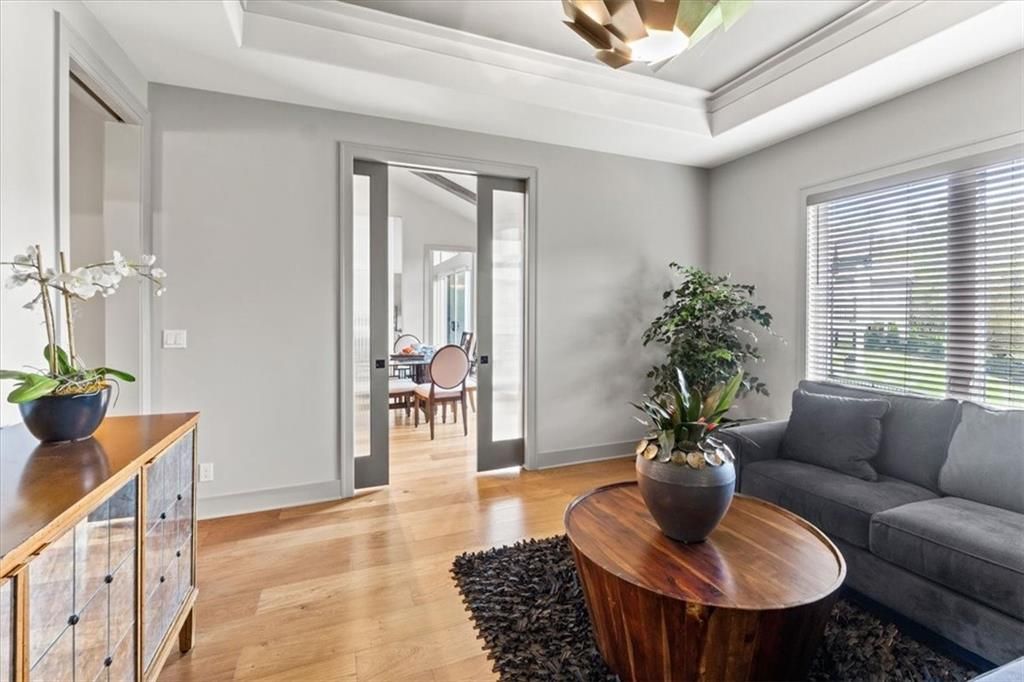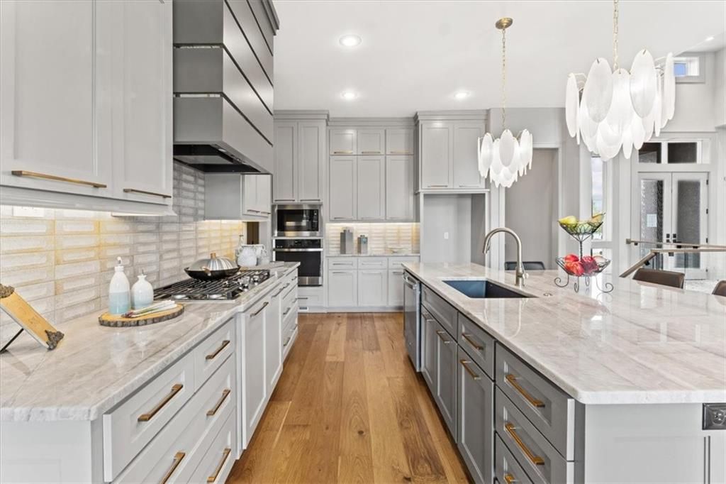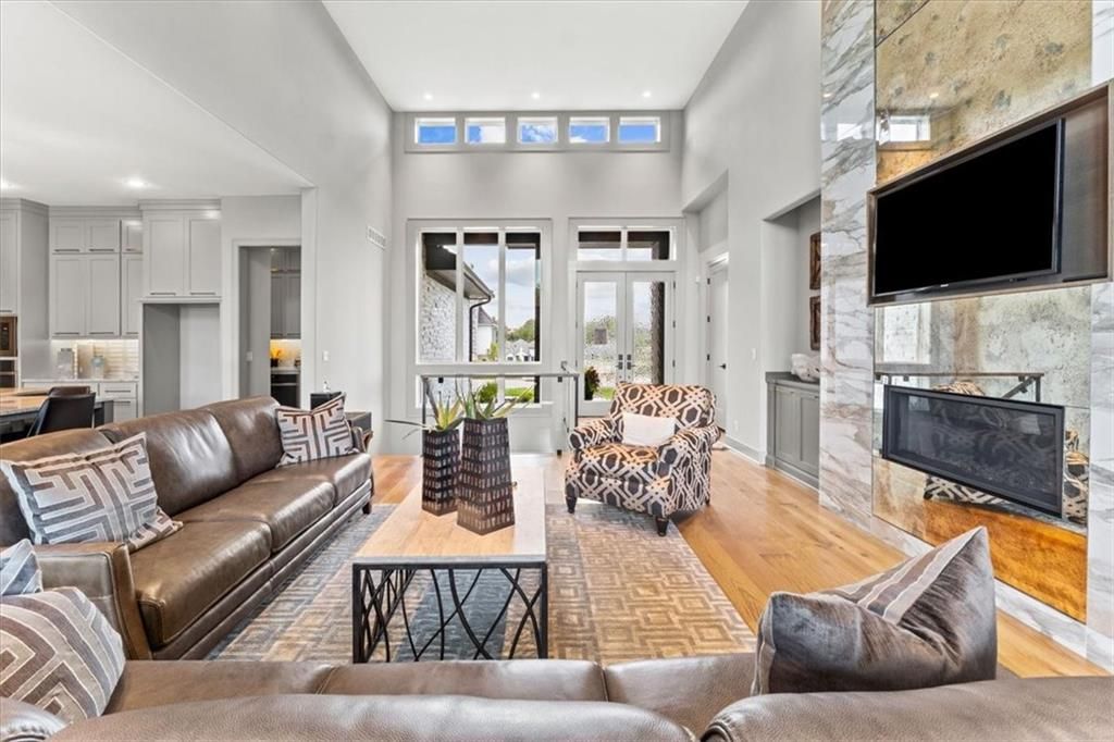Don Julian award winning Ridgewood Gallery Reverse plan! MODEL NOT FOR SALE-Expect to be blown away as you enter the stunning entry to see the sky high ceilings with view straight thru to the wooded back yard! Great room expands to the impressive kitchen complete with quartz countertops, gas cooktop, and amazing butler's pantry. Cozy first floor den or 2nd bedroom. ALSO a true office w/built-ins. Mud room & laundry. Large Owner's suite w/terrific walk-in closet. Covered deck. Lower Level has 3 bedrooms all with their own baths and ample closets. Large Rec room with beautiful full bar. Walks out to the covered patio. All stucco & stone exterior with tile roof. Incredible location! Photos are of another home of this same plan. Call agent for details! Taxes & Square Footage Approximate and should be verified by buyer's agent.
