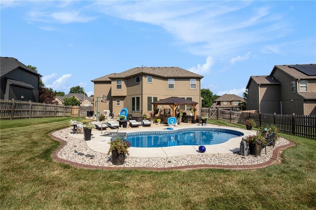Stunning Two Story with updates throughout including New AC and Furnace installed in 2024, Exterior Painted in 2023, and Re-Insulated Attic! Offering plenty of space for entertaining family and friends with an open main floor plan and great backyard with a heated in-ground pool and large patio space. Walk in through the front entry and you will see a formal dining space surrounded by elegant columns. The kitchen features Knotty Adler cabinets, granite countertops, a pantry, and main floor half bath. Upstairs has the primary suite with dual vanities, a soaking tub, tile shower, and walk in closet along with three additional bedrooms, two full baths, a designated laundry room, and loft. Basement is perfect for additional family room or workout space with a full bath and storage room. Come check out this well maintained home ready to be a retreat for your family!