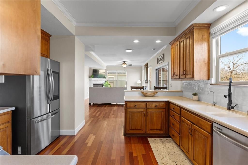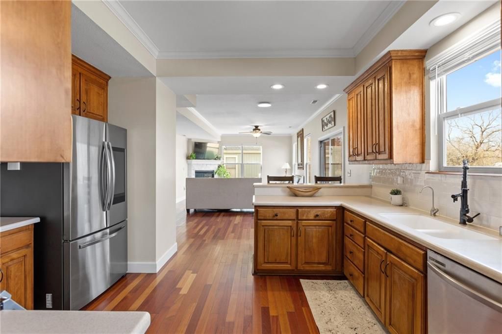 Tucked away from the city hustle and bustle in West Lawrence you'll fine Lots of hidden gifts throughout this beautiful 2 story home! Kitchen is filled many smart features you'll LOVE! Beautifully constructed 4bed, 3.5 bath, formal living and dinning rooms, spacious hearth room with tons of light, beautiful primary suite w/lots of space and soaking tub, all the bedrooms are a perfect size! Full finished basement with full bath, large bedroom and family room. Also has abundant storage! When you need to take a break Enjoy abundant wildlife from your deck and along the nature trail that is accessible outside your new privacy fence. Location is to die for!! Super easy easy access to Clinton Lake, K-10 bypass and I-70!!