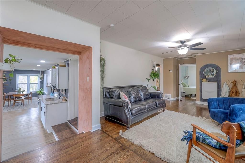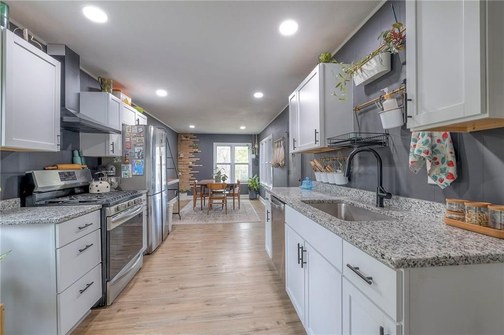 In the heart of it all! close to everything...highways, major streets, parks, shopping! This wonderful bungalow has been completely updated so it holds the best of the new and the character of the old! The front porch welcomes you into a bright living room area with a fireplace. This 4 bedroom (3 bedroom + 1 non-conforming bedroom), 2 bath gem features NEW windows, HVAC, hardwoods, fully updated kitchen with granite and all new cabinetry and bathrooms that are completely redone with new tile. Stainless steel appliances stay with the beautiful redone kitchen featuring a large eating area. Step outside to a perfect covered patio and private backyard. The loft bedroom with private bath gives you a place to relax, with built-ins and plenty of space. The drive is double wide and additional street parking is available on a NO outlet Quiet street.