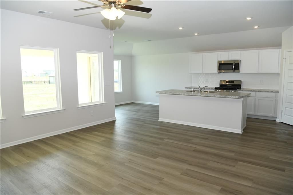 NEW PRICE! Extra Large lot, No backyard neighbors, Great view, Open concept, 3-bedroom, 2 full bath, pantry, 2 car garage, newly constructed with gas range, extra master windows, Extra concrete pads out back with X-Large corner lot. Vinyl. Flooring throughout, ceiling fans. Great location to stores and restaurants.