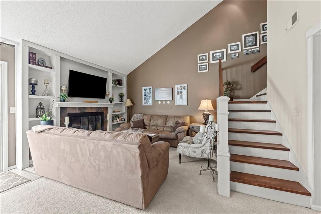 WELCOME TO YOUR MAINTENANCE PROVIDED TOWNHOME at Mission Lake - one of South Kansas City's most charming lake-centered communities. Enjoy access to scenic walking trails, community pools, clubhouse and private lake amenities that define the Mission Lake lifestyle. Inside, discover a bright and open layout ideal for everyday living and entertaining. Living area features vaulted ceilings with abundant natural light, creating an inviting atmosphere. A cozy fireplace adds warmth and character, while the dining and living spaces flow seamlessly for modern convenience. Kitchen offers functional design with ample white cabinets and black appliances. Dining area has easy access to your private patio - perfect for morning coffee or evening outdoor gatherings. Main floor laundry with bonus pantry space! Two bedrooms upstairs provide comfort and privacy, complemented by a well-appointed bathroom and thoughtful storage. Additional highlights include an attached garage, HOA-maintained exterior and grounds and a prime location just minutes from Red Bridge Shopping Center, Martin City's restaurants and breweries, parks, golf and quick highway access. Mission Lake provides the perfect combination of suburban tranquility with urban convenience. This townhome is move-in ready with fenced courtyard, tons of storage and TREX deck!! WELCOME HOME!