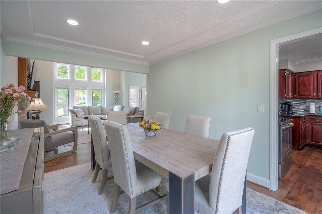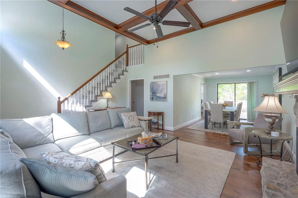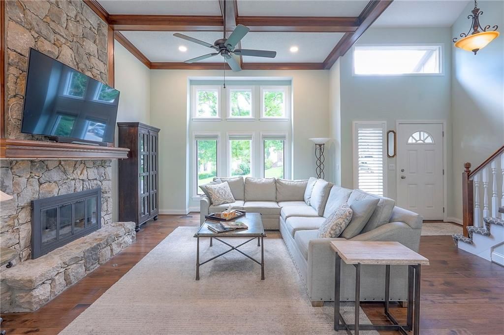 This 1.5-Story gem has been immaculately maintained and beautifully updated inside & out by long-time owners. From the moment you enter, you're greeted by a dramatic yet comfortable great room featuring high beamed ceilings, a stunning stone fireplace and abundant natural light, setting the tone for the warmth and casual elegance found throughout the home. The main level offers effortless main level living with a spacious primary suite, a completely updated bath w/oversized zero-entry shower, convenient laundry, recently updated flooring and fresh paint. Upstairs you'll find 3 oversized bedrooms, while the finished walk-out basement expands your living space with wide-open living areas, a full bathroom, and generous storage. Step outside to a large newer deck overlooking a fully fenced backyard. Additional highlights include quality replacement windows throughout, front door, as well as replaced fixtures, hardware, switches & outlets. This tasteful home is full of character and truly move-in ready!