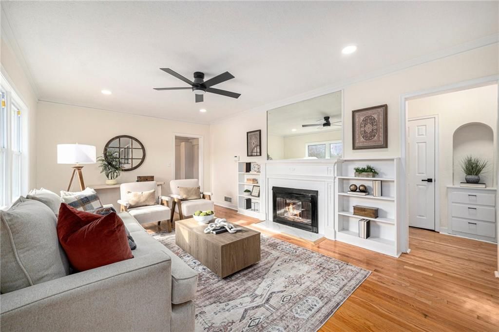 This stunning 3-bedroom, 3-bathroom 1.5 story sits on two spacious lots, giving you plenty of room to relax, entertain, and enjoy the best of both worlds. Inside, you'll find sleek, modern upgrades at every turn - starting with the gorgeous new kitchen featuring Calcutta quartz countertops, fresh cabinets, and high-end stainless steel appliances, including a built-in wine cooler for your collection. Whether you're hosting a dinner party or enjoying a quiet night in, this kitchen will be your happy place. Enjoy new LVP flooring, new windows, and new HVAC, ensuring comfort and style throughout. Cozy up by the two fireplaces or unwind in the primary suite, complete with an en-suite bathroom for ultimate privacy. The Murphy bookshelf door adds a unique, whimsical touch that you'll love showing off to your guests. Step outside to your new patio and porch perfect for morning coffee, evening sunsets, or weekend BBQs. This home's location is a dream just minutes from Starlight Theatre and the Kansas City Zoo, plus a short drive to the Plaza's top-tier dining and shopping. Whether you're out exploring or relaxing at home, everything you need is right at your doorstep. With a two-car garage, plenty of space, and an unbeatable location, this is a home that truly has it all.