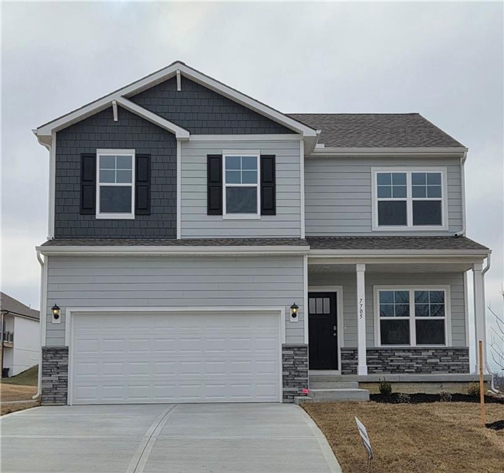 ***TALK TO AGENT ABOUT RED TAG EVENT SALE ON THIS MOVE IN READY HOME & CLOSING COST OPTIONS*** Bellamy floorplan is a 2 Story home with a HUGE Primary Suite with 2 walk-in closets!!! This 4-bedroom, 2.5-bathroom home also has a flex room on the main level that would make a great office or playroom. Kellybrook is located in North Kansas City and is part of Liberty Schools. Discover a home where modern elegance meets everyday convenience, nestled in the heart of the Kellybrook community that offers a pool for residents to use during the summer months. Built by D.R. Horton, this stunning residence combines superior craftsmanship with the latest in-home design, creating a space that's as functional as it is beautiful. The exterior features James Hardie siding along with stone accents. Step inside directly to 9 ft ceilings and an abundance of natural light. The heart of this home is undoubtedly the Chefs Kitchen, featuring gorgeous 36-inch painted maple cabinets, beautiful white quartz countertops, and top-of-the-line Whirlpool stainless steel appliances. The primary bedroom is HUGE, and the bath boasts a walk-in shower with a framed glass enclosure. Outside of the home is Hardie siding, and the yard comes with an irrigation system. This home is equipped with Smart Home technology, you can control your space from anywhere with just a few taps. Enjoy luxury vinyl plank flooring, a spacious garage complete with openers, Deako lighting, and clever wiring solutions like dual data/TV lines in the main bedroom and family room for all your tech needs. LED lighting throughout, a high-efficiency gas furnace, and insulated low E vinyl windows. D.R. Horton's commitment to quality shines through in every detail of this home, offering a perfect blend luxury, technology, and comfort. This 4-bedroom 2 Story also features a full, unfinished basement for future growth opportunity. Don't miss the opportunity to own this exceptional property in Kellybrook!