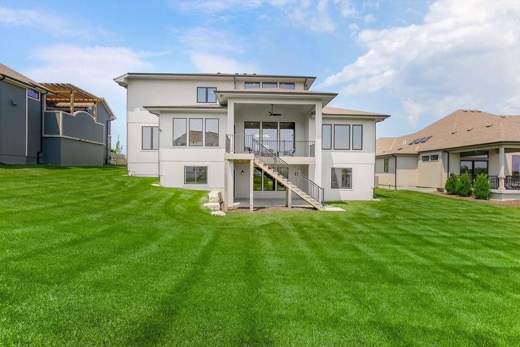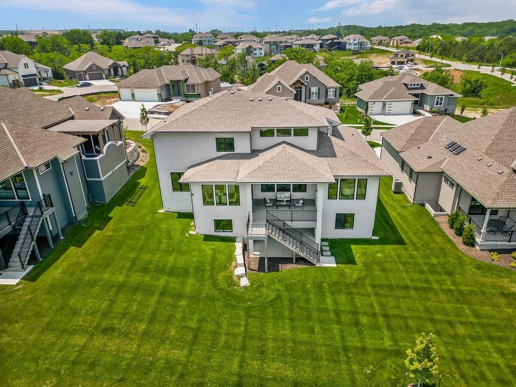 The Regency II by J.S. Robinson Fine Homes is MOVE-IN READY now - and not just any home, this is the model on Lot 12, loaded with elevated features and thoughtful design. Sitting on a gentle walkout homesite with a level backyard, this 1.5-story beauty blends bold style with everyday functionality in the best ways and sprawled out over 4800 square feet. From the double front doors to the oversized quartz island, prep pantry with sink and beverage fridge space, and walk-in pantry for storage, this kitchen is ready to host everything from busy mornings to holiday gatherings. The main-level primary suite is a true retreat, featuring dual sinks and shower heads, a soaking tub, an expansive walk-in closet, and its own private laundry room. Need a quiet space or office? A flex room and half bath round out the first floor. Upstairs, the home surprises with a loft plus a sprawling media room, three spacious bedrooms with private baths, second laundry room, and dual-zone HVAC for comfort and efficiency. The finished basement offers a fifth bedroom and full bath, wet bar, generous storage, and walks out to the backyard. Life at Bristol Highlands hits different with sunset strolls, high country views, weekend adventures at Shawnee Mission Park and Lake Lenexa, Restaurant Row minutes away at Lenexa's City Center. The future resort-style pool, sport courts, and clubhouse, etc. are creating a buzz - and we haven't even mentioned the award-winning De Soto schools (hello, Mill Valley!). This is your let's go for it moment - come see what life looks like in a brand new home today! As the former model, this home is packed with custom finishes and designer upgrades - and it's available now. Opportunities like this don't come around often.