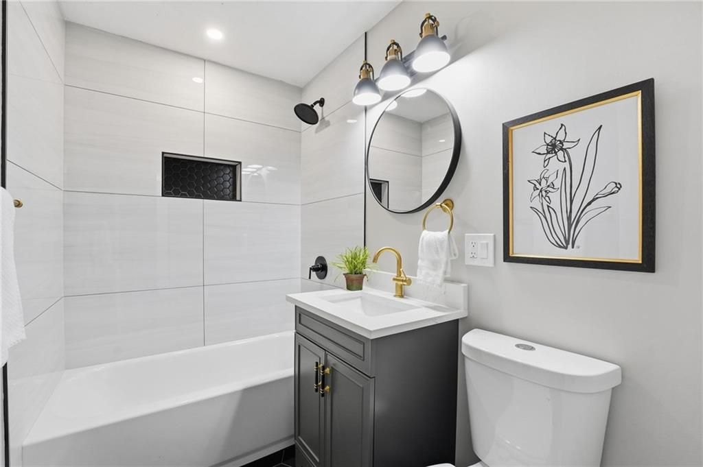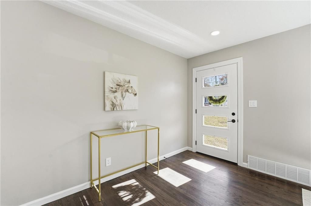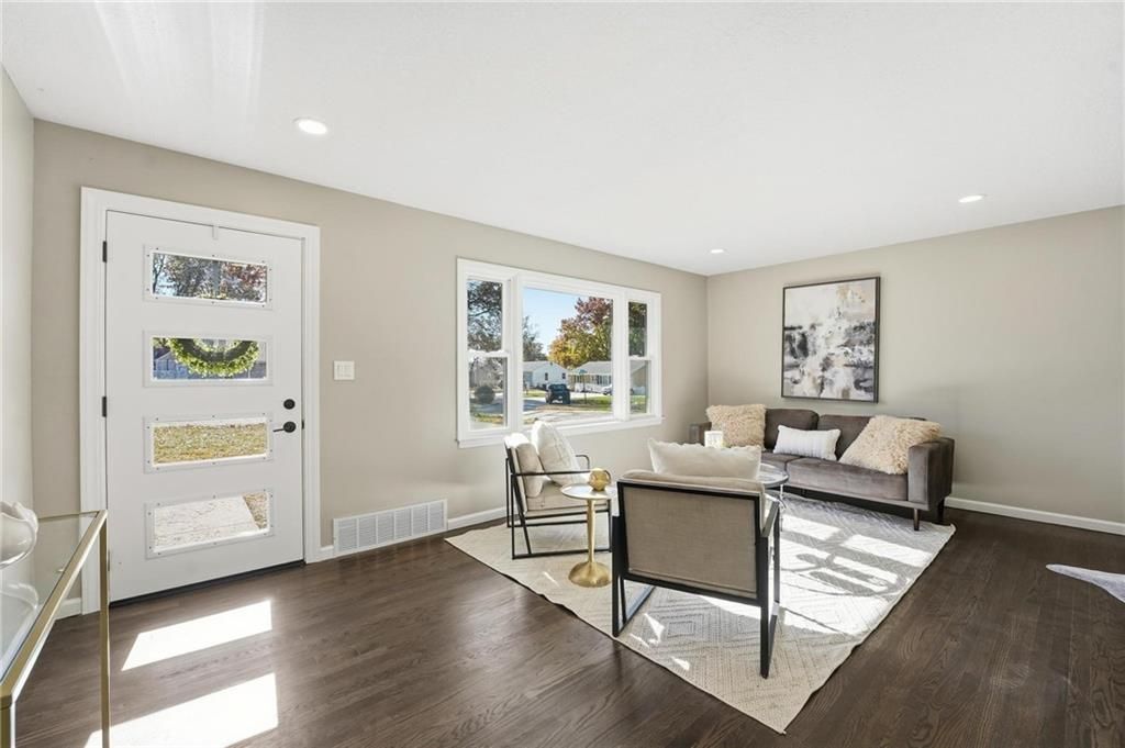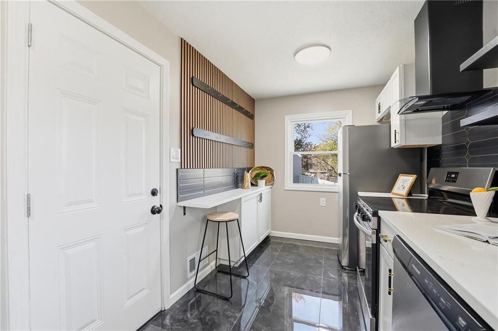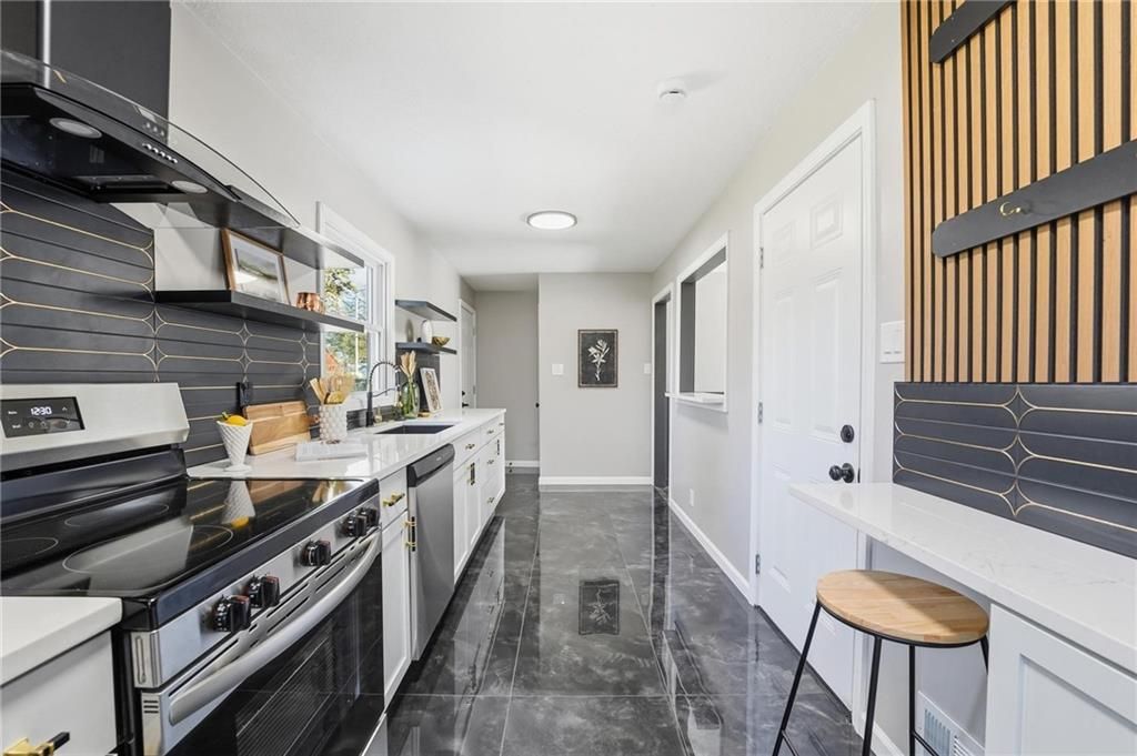 Beautifully Renovated Ranch in the Heart of the Northland! This fully updated 3-bedroom, 2-bathroom ranch-style home offering modern finishes, timeless design, and unbeatable convenience in Kansas City's Northland. Recent exterior improvements include new siding, new windows, and a new roof, providing long-term peace of mind and excellent curb appeal. Inside, a bright and inviting living space features refinished hardwood floors, fresh neutral paint, and updated trim and hardware for a clean, cohesive feel. The stunning designer kitchen serves as the centerpiece of the home, showcasing sleek black tile accents with gold detailing, quartz countertops, open shelving, new stainless steel appliances, and upgraded cabinets and hardware. The dining area sits just off the kitchen for easy everyday living and entertaining. Both bathrooms have been fully remodeled, featuring modern tilework, stylish lighting, and high-quality fixtures. All three bedrooms offer comfortable space with updated finishes throughout. The expansive unfinished basement is freshly painted and ready for storage, a workshop, or future expansion. A one-car garage and large driveway provide convenient off-street parking. Outside, the freshly painted concrete patio offers a perfect spot for outdoor dining and relaxation. Located minutes from dining, shopping, schools, and major highways, this home blends style, comfort, and location into one incredible opportunity. Don't miss your chance to own this beautifully updated Northland ranch!