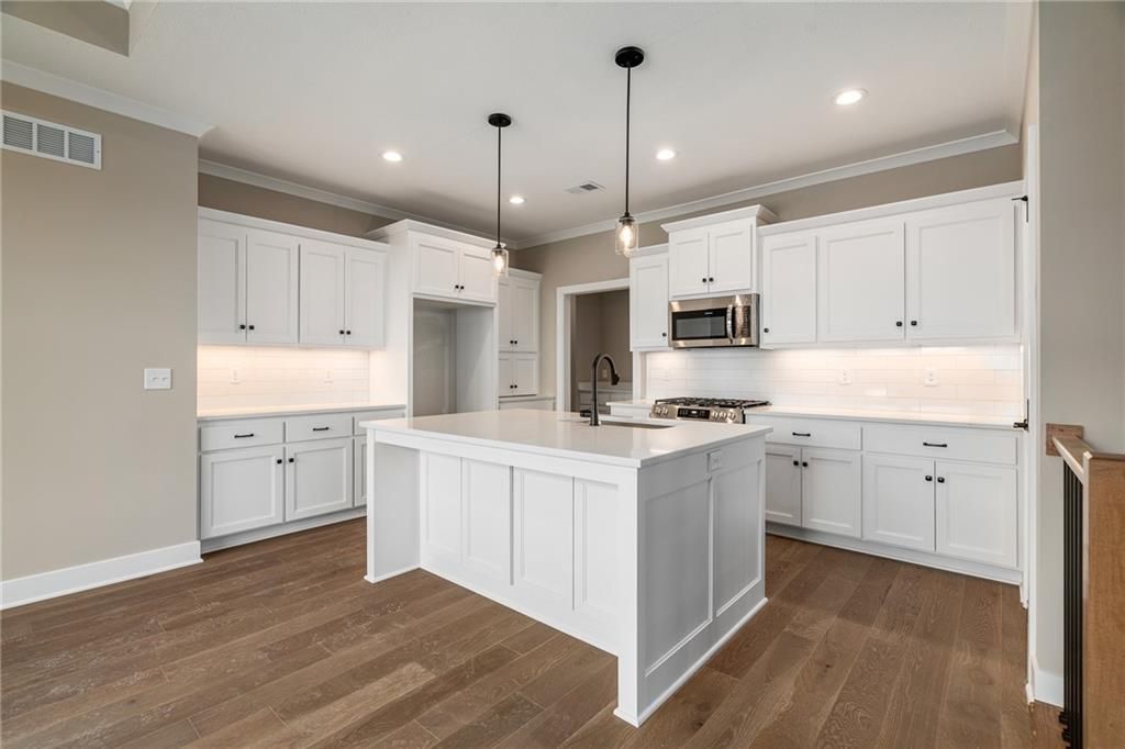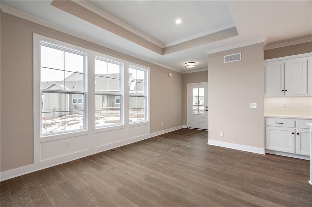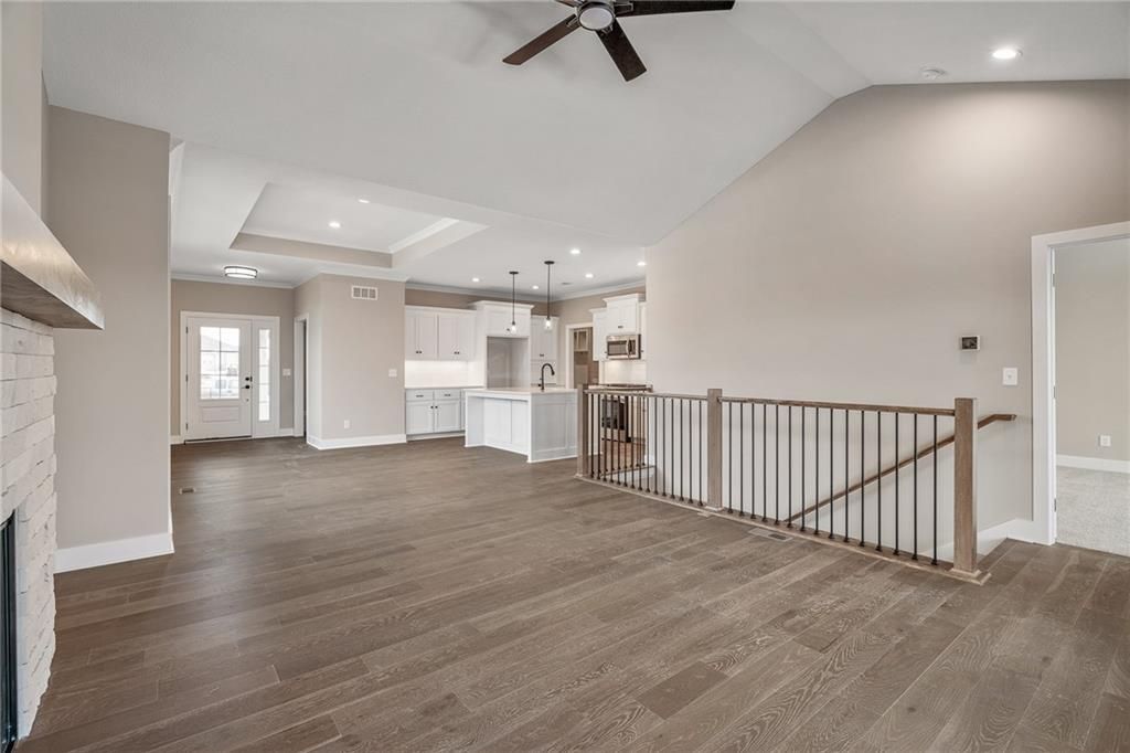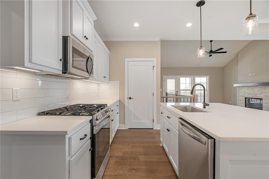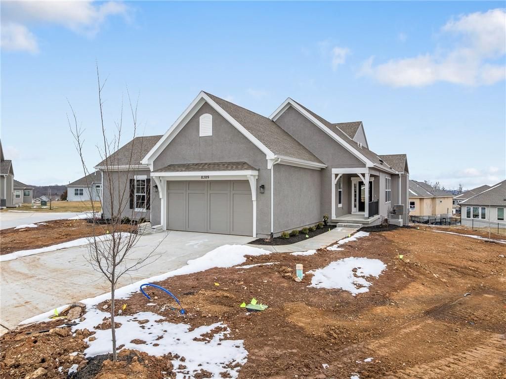 READY NOW!!! Discover luxury maintenance-provided living in Lenexa's premier community - Bristol Highlands Villas! Introducing the Newport Reverse plan by Lambie Homes on Lot 61R, featuring 3 bedrooms and 3 bathrooms designed for modern comfort and style. Step inside this open-concept layout and you'll be welcomed by a vaulted great room with a cozy fireplace and plenty of natural light. The covered deck just off the main living area offers the perfect space to relax or entertain. The chef's kitchen is the heart of the home with quartz countertops, stainless steel appliances, gas cooktop, built-in oven and microwave, dishwasher, large island, and walk-in pantry. Retreat to the primary suite, complete with a vaulted ceiling, elegant double doors to the ensuite bath, quartz double vanity, tiled shower, and a spacious walk-in closet conveniently connected to the laundry room. The finished lower level adds a bedroom, full bath, and generous living space - perfect for guests or game nights. High-end standard features include: 2-car garage with opener & keypad 96% efficiency furnace 14 SEER A/C 50-gal. water heater humidifier pre-piped for radon mitigation crown molding tile surrounds in all showers full-yard irrigation system 1-year builder warranty! Located just minutes from Lenexa City Center, Shawnee Mission Park, Lake Lenexa, Canyon Farms Golf Club, and major highways for easy access across KC. Award-winning De Soto schools. Visit our model villa at 8217 Aurora St., Lenexa - open Mon-Sat 11-5 & Sun 12-5. "Furnished" pictures are from our model home, all other pictures are the actual home. Don't miss this stunning new home at an incredible price!