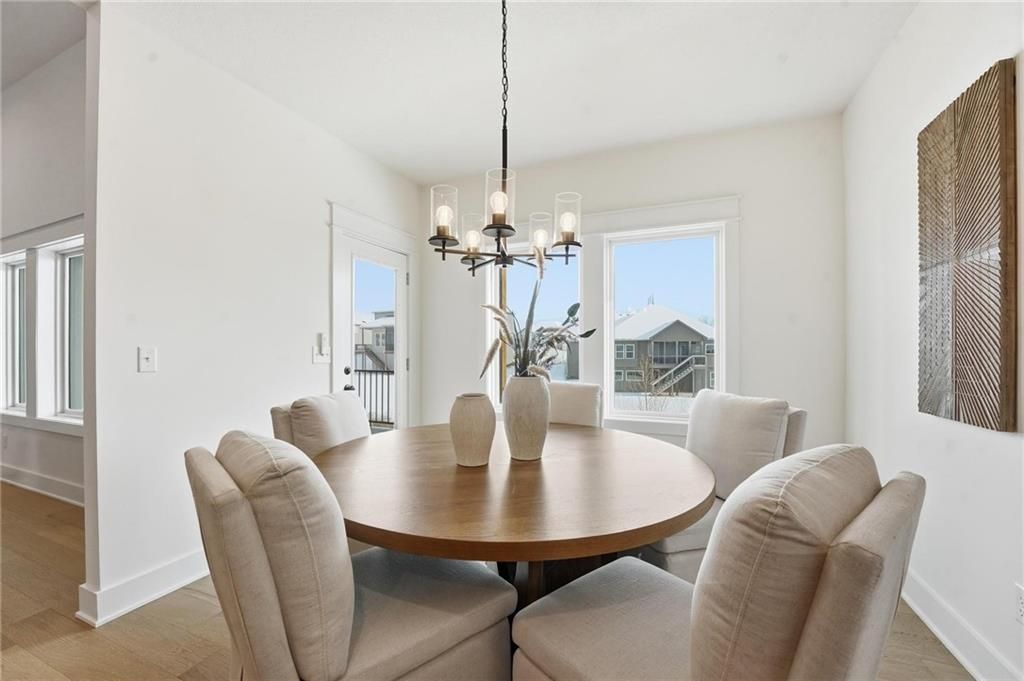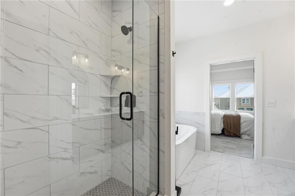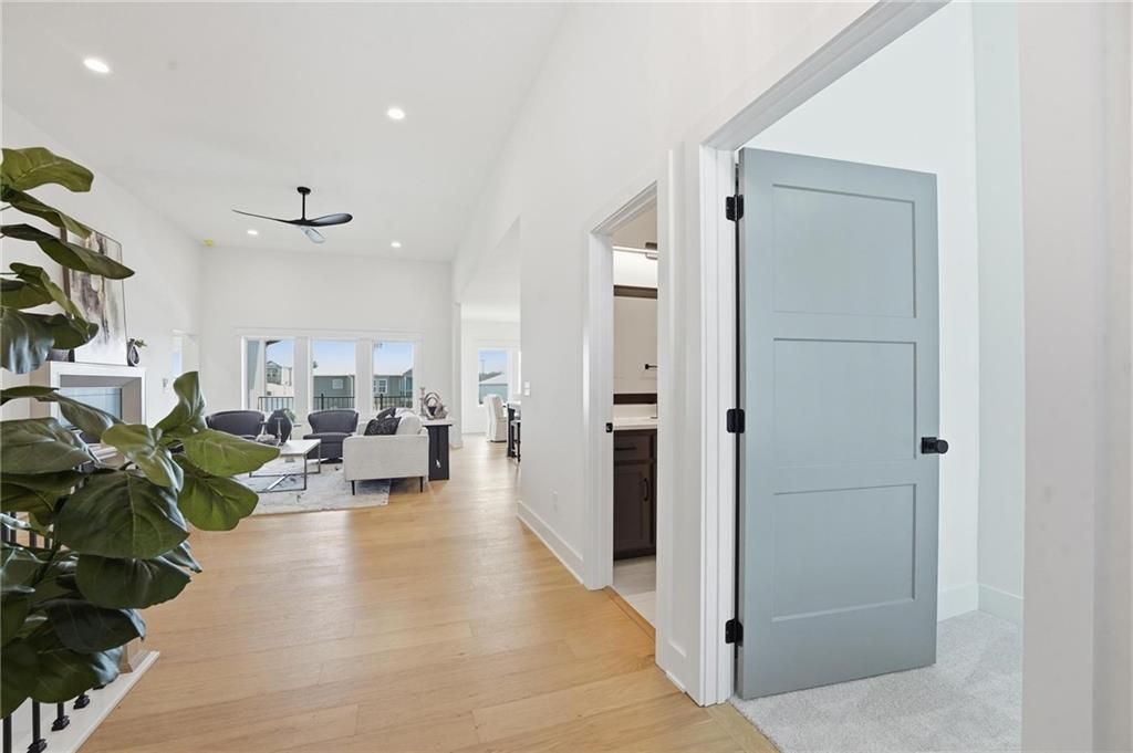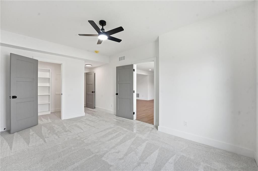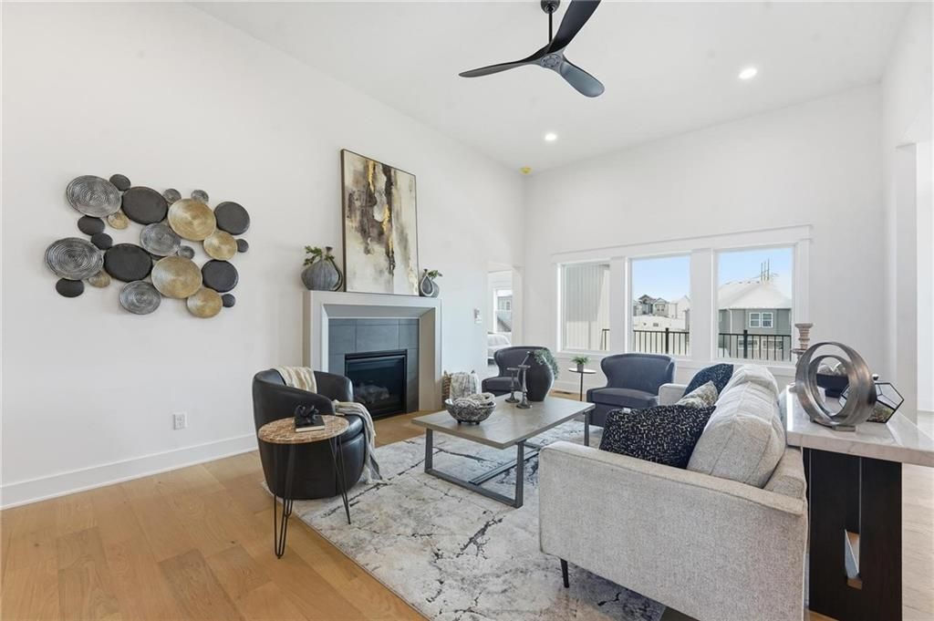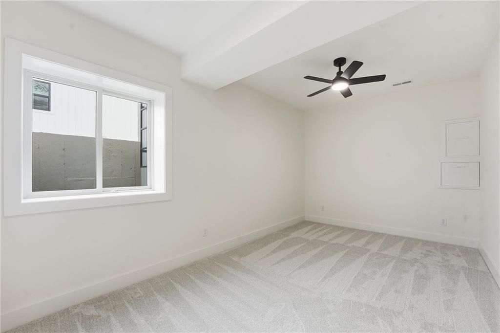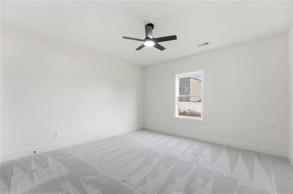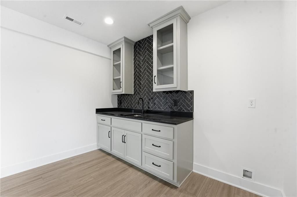 Come explore this recently finished reverse 1.5-story in Riverstone, perfectly situated to back to tranquil common space. With 3,028 sq ft, this home offers 5 bedrooms, 3 full baths, and a 3-car garage - a spacious design that blends comfort and style. Main Level Living: The primary suite and a versatile guest bedroom (currently staged as an office) anchor the main floor. Expansive windows line the back of the home, filling the great room and kitchen with natural light. Step out onto the covered deck to enjoy peaceful views. Lower-Level Retreat: A recreation room with wet bar, three additional bedrooms, and a full bath provide plenty of space for media, gaming, or entertaining. Exterior & Efficiency: Smart siding with stone accents enhances curb appeal, while the builder's attention to energy efficiency ensures lasting value. This home combines modern design with functional living, offering room for guests, and gatherings. Don't miss the opportunity to own a property that balances design, efficiency, and community living in one of Kansas City's most desirable neighborhoods. Taxes, measurements, and square footage are estimated.