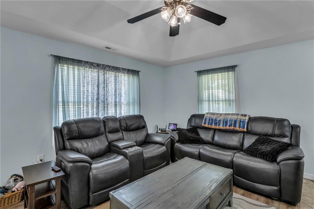Modest, solid, ready to become someone's new home as it is perfectly in move-in condition. IMMACULATE. 3 bedroom, 2 bath ranch home (a low maintenance slab foundation for those that don't want any basement issues) with the perfect amount of space! Pretty curb appeal, landscaped yard and a nice covered front porch. This home has all the basics covered. Nice wide hallways, some with pretty arched doorways. Walk in and notice how meticulous it is. Open view from the front door all the way to the back of the home. This home's big interior eye catching focal point is that pretty arched pass thru to the kitchen. The kitchen is loaded with all newer stainless steel appliances, a pantry with pull outs. Pretty counter tops and backsplash. The two secondary bedrooms are located towards the front of the home, separated from the primary suite by a full bath. A dedicated laundry room/mudroom. Large 2 car garage. Let's go outside. You will be able to enjoy your coffee in the morning, a nice glass of tea in the afternoon, a nice bbq under your covered backyard patio (with ceiling fan) all within a privacy wood fence. Oh and that nice tool shed! Notice the wonderful pavers lined aside the home for ease of walking out of any mud or wet grass. Hurry for this one! Perfect for those first time home owners or those that wish to downsize. Feels much bigger than it looks! Comes with a 14 month home warranty paid by the Sellers for your peace of mind. Ask me for a brochure?