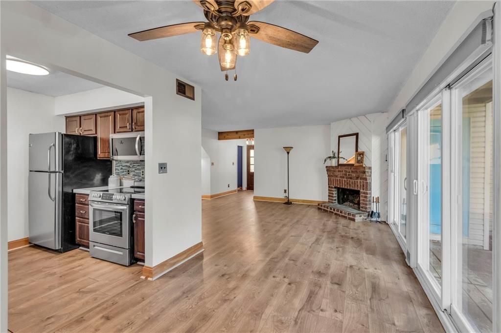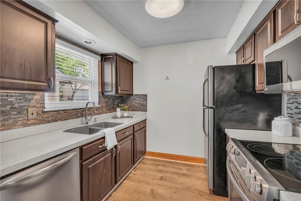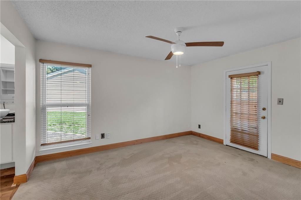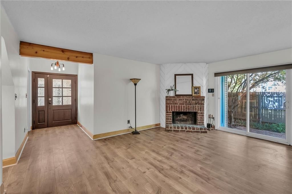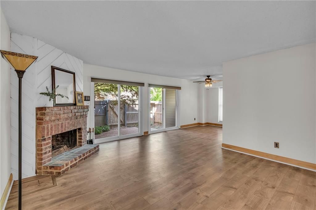 When charm and maintenance-free living come together you say yes to the home! Lovely gardened walk to the front door where you enter & discover a coat closet with hidden storage on your way to the living room. Living room features wood detail on ceiling, nook area, eye-catching brick fireplace with wood slats, dining space, and double sliding glass doors overlooking courtyard. Private patio courtyard ideal for relaxing evenings, entertaining, or could be the perfect spot for gardening- plus storage space! Updated kitchen with SS appliances! Primary Suite completed with modern bathroom, custom closet, and quaint outdoor space. Designated, covered parking included. HOA exterior maintenance provided along with pool and clubhouse. Highly rated schools. This amazing location has it all. Welcome to Barrybrooke Village!