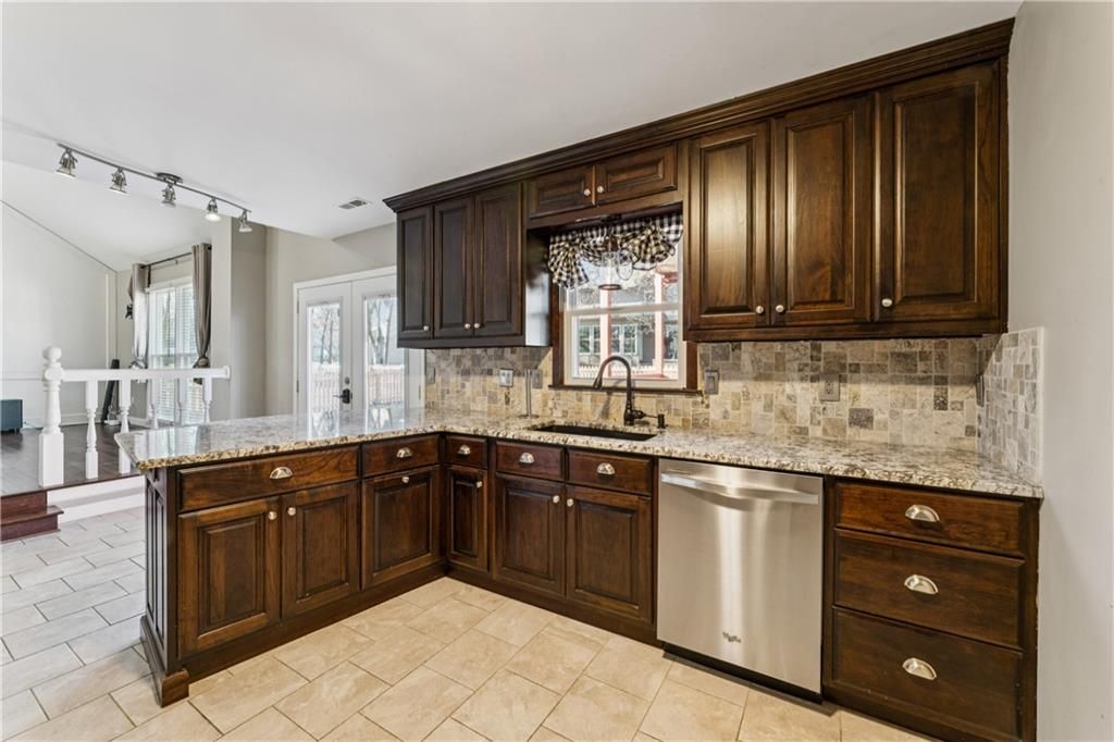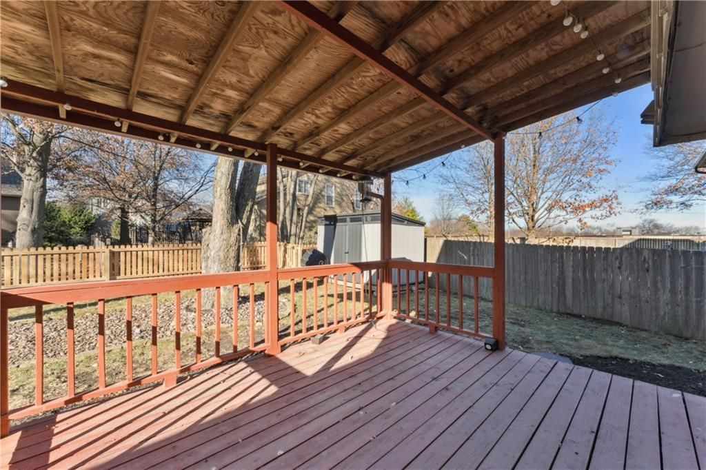 Location, Location, Location! This is the one you've been searching for. This well-maintained two-story home has it all with its eye-catching curb appeal, central location in the highly desirable Lenexa area, plus its surrounded by higher priced homes and in award-winning Shawnee Mission school district. ALL APPLIANCES STAY for buyer's convenience to move right in. Spacious kitchen with granite counter tops, sunny breakfast area and beautiful wood cabinetry. The cozy great room has a brick fireplace, boxed beamed, vaulted ceilings & wood flooring. This open floor plan has space for extra dining area, plus also 1/2 bath and laundry room on the main level. Oversized primary suite has an expansive wall to wall closet, plus attached updated bathroom with shower. There are 2 additional bedrooms and a fully, updated hall bathroom on the second floor. The partially finished basement offers an additional rec -room and storage room with built-in shelving. HVAC system is 4 years new & water heater is 3 years new. New attic insulation, new owner's fencing with privacy gates & all trees trimmed in 2025. New covered guttering in 2024. Attached 2 car garage and the home has a sprinkler system. The backyard is great for gathering, grilling, and relaxing with a great covered deck! Located on a lovely street lined with mature trees and practically across the street to the elementary school. This home has been lovingly cared for and is ready for the next homeowner to love.