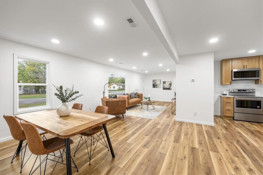 Fully remodeled from top to bottom, this 3-bed, 1-bath home is truly move-in ready. Fresh LVP flooring runs throughout, and the open layout between the living and dining areas makes the space feel inviting and easy to live in. Major mechanicals - including the roof, furnace, AC, and water heater - were all replaced in 2025, giving you peace of mind for years to come. Outside, the new driveway and large patio offer plenty of room for gatherings or quiet evenings. All the updates are done - just move in and enjoy! Seller paid rate buy down with a great offer!