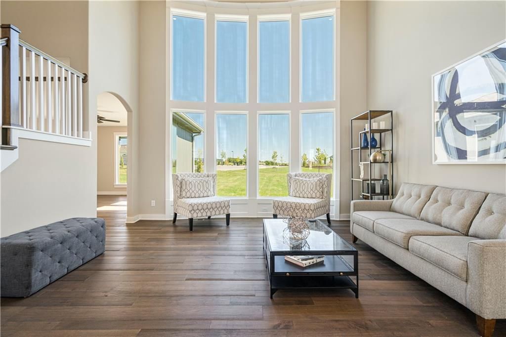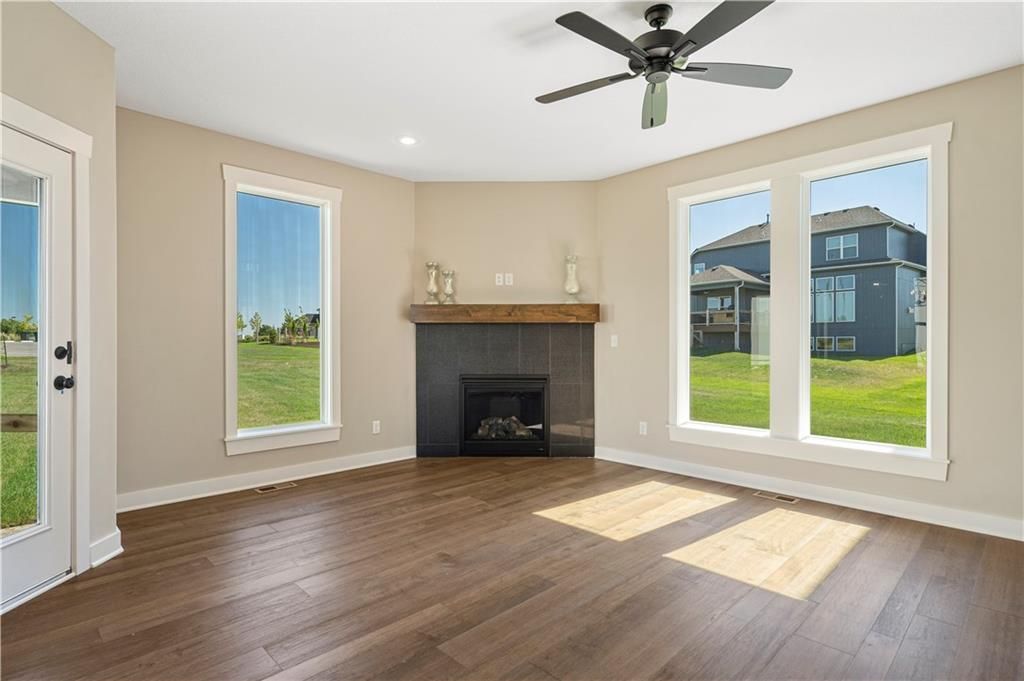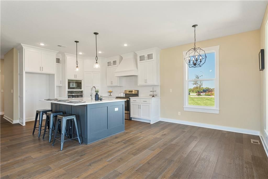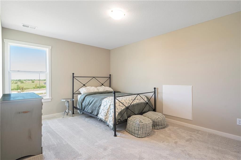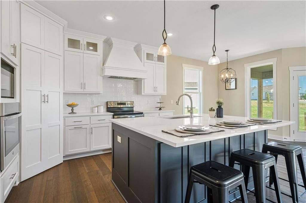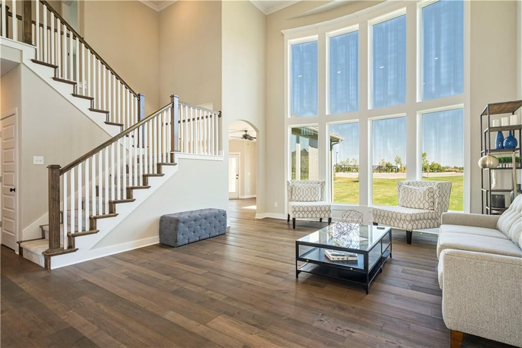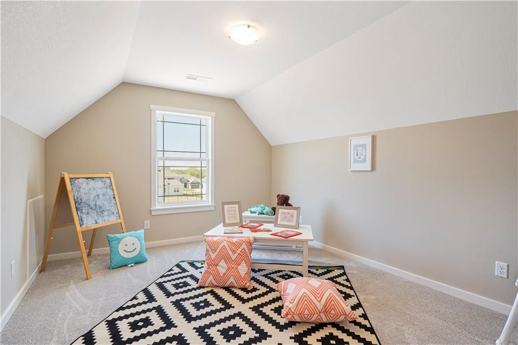 Stunning 1.5-story home by McFarland Custom Builders, the last new construction home in the desirable Woodneath Farms community. This gorgeous property backs to lush greenspace, offering tranquility and privacy. The impressive great room features a two-story wall of windows that floods the space with natural light, while the cozy hearth room with fireplace provides a perfect spot for relaxation. Enjoy both a formal dining room and a separate breakfast room for versatile dining options. The large kitchen island, stainless steel appliances including a double oven, and spacious walk-in pantry make this a chef's dream. Main floor laundry includes a convenient desk area. The luxurious primary bedroom suite offers a freestanding tub, separate shower, double vanities, and a walk-in closet. Upstairs, you'll find three generously sized bedrooms with walk-in closets, two full bathrooms, and a loft overlooking the great room. A covered deck adds even more outdoor living space. Don't miss out on this unique opportunity! Taxes & room sizes estimated. Great Hunt Midwest Community w/ competition sized pool, tennis court, walking trails, playground, picnic pavilion & more. Est. completion 30-45 days. Actual photos 11-16-25 with simulated photos of a completed model. Details and selections may vary.