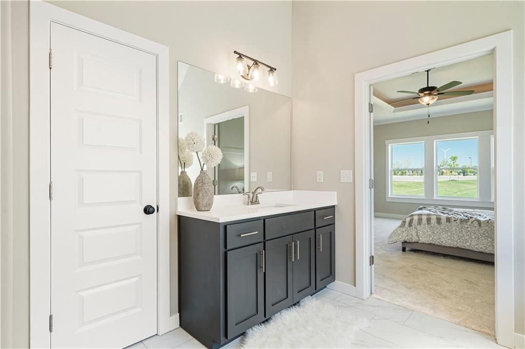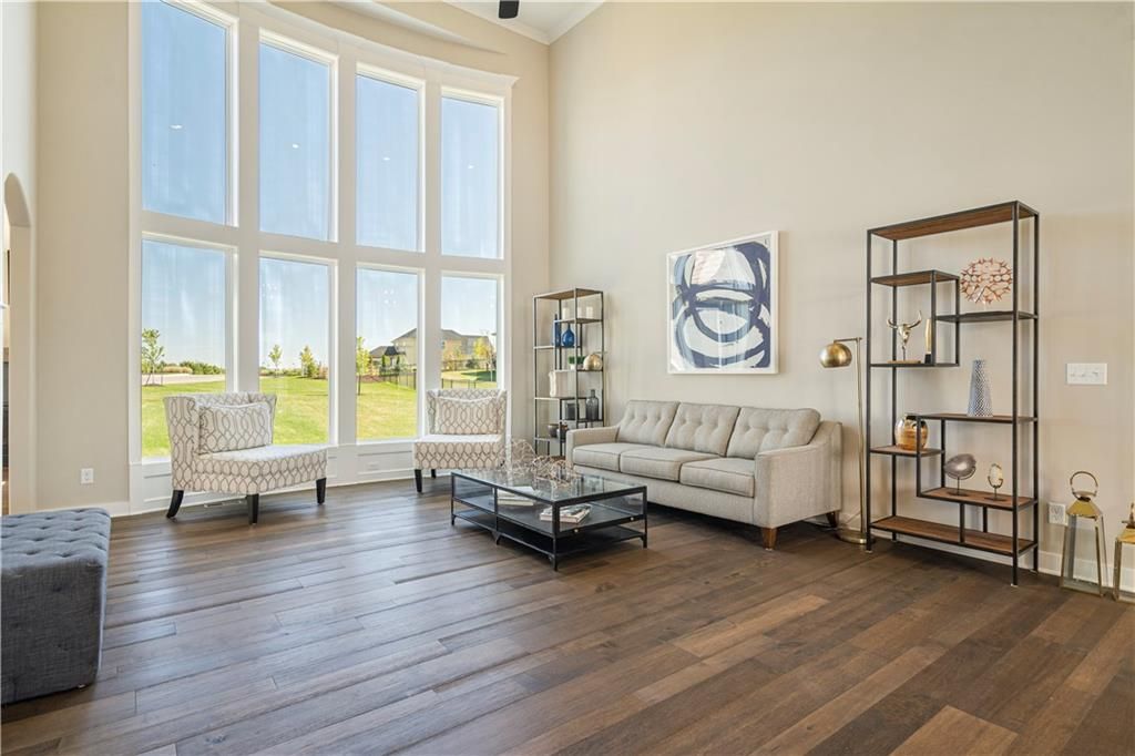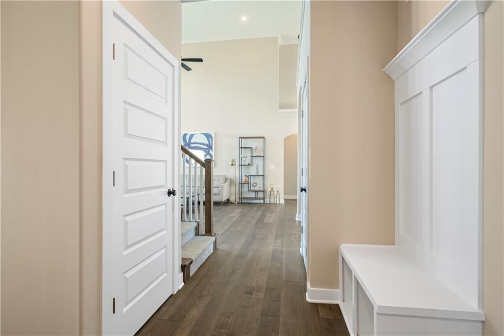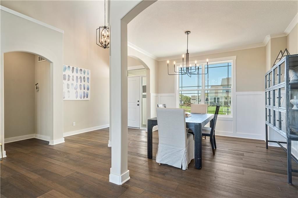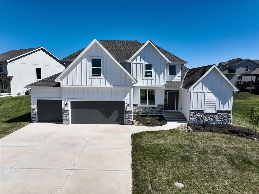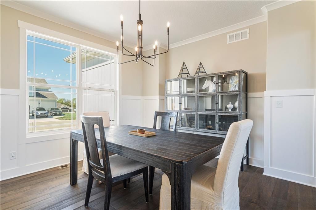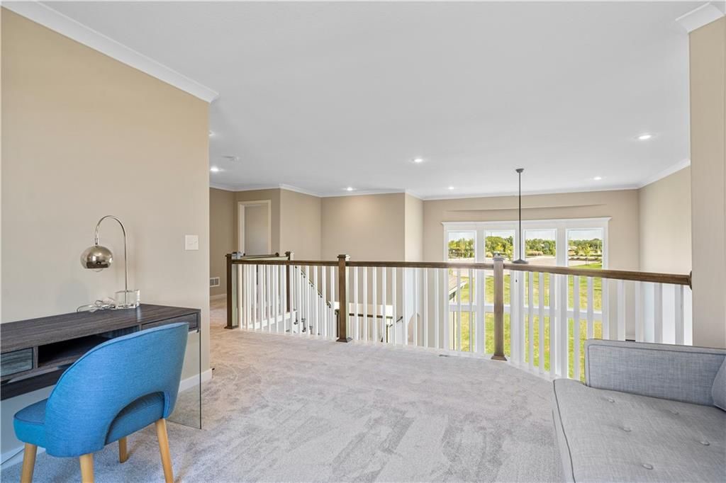 Stunning 1.5-story home by McFarland Custom Builders, the last new construction home in the desirable Woodneath Farms community. This gorgeous property backs to lush greenspace, offering tranquility and privacy. The impressive great room features a two-story wall of windows that floods the space with natural light, while the cozy hearth room with fireplace provides a perfect spot for relaxation. Enjoy both a formal dining room and a separate breakfast room for versatile dining options. The large kitchen island, stainless steel appliances including a double oven, and spacious walk-in pantry make this a chef's dream. Main floor laundry includes a convenient desk area. The luxurious primary bedroom suite offers a freestanding tub, separate shower, double vanities, and a walk-in closet. Upstairs, you'll find three generously sized bedrooms with walk-in closets, two full bathrooms, and a loft overlooking the great room. A covered deck adds even more outdoor living space. Don't miss out on this unique opportunity! Taxes & room sizes estimated. Great Hunt Midwest Community w/ competition sized pool, tennis court, walking trails, playground, picnic pavilion & more. Est. completion 30-45 days. Actual photos 11-16-25 with simulated photos of a completed model. Details and selections may vary.
