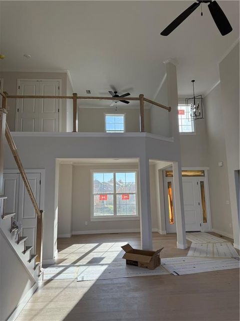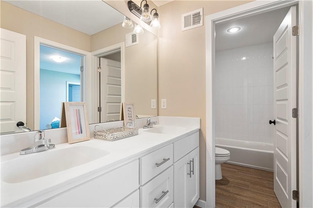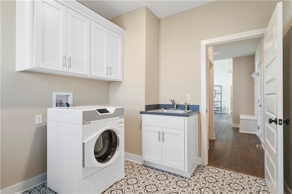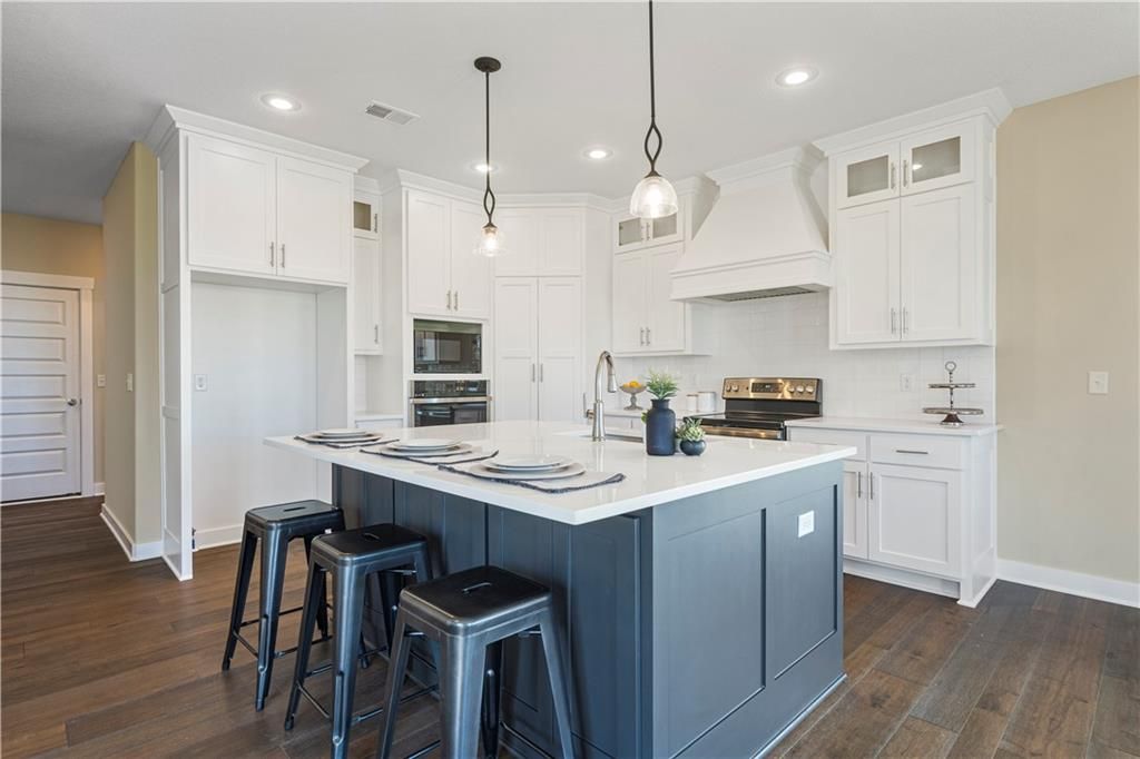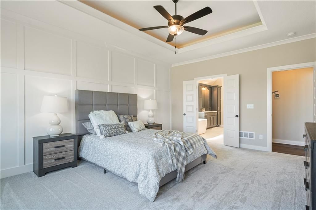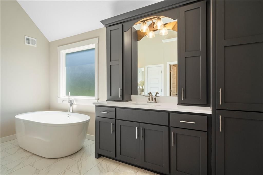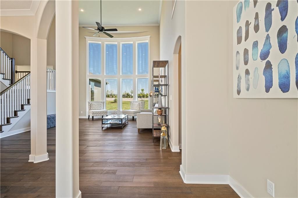 Stunning 1.5-story home by McFarland Custom Builders, the last new construction home in the desirable Woodneath Farms community. This gorgeous property backs to lush greenspace, offering tranquility and privacy. The impressive great room features a two-story wall of windows that floods the space with natural light, while the cozy hearth room with fireplace provides a perfect spot for relaxation. Enjoy both a formal dining room and a separate breakfast room for versatile dining options. The large kitchen island, stainless steel appliances including a double oven, and spacious walk-in pantry make this a chef's dream. Main floor laundry includes a convenient desk area. The luxurious primary bedroom suite offers a freestanding tub, separate shower, double vanities, and a walk-in closet. Upstairs, you'll find three generously sized bedrooms with walk-in closets, two full bathrooms, and a loft overlooking the great room. A covered deck adds even more outdoor living space. Don't miss out on this unique opportunity! Taxes & room sizes estimated. Great Hunt Midwest Community w/ competition sized pool, tennis court, walking trails, playground, picnic pavilion & more. Est. completion 30-45 days. Actual photos 11-16-25 with simulated photos of a completed model. Details and selections may vary.