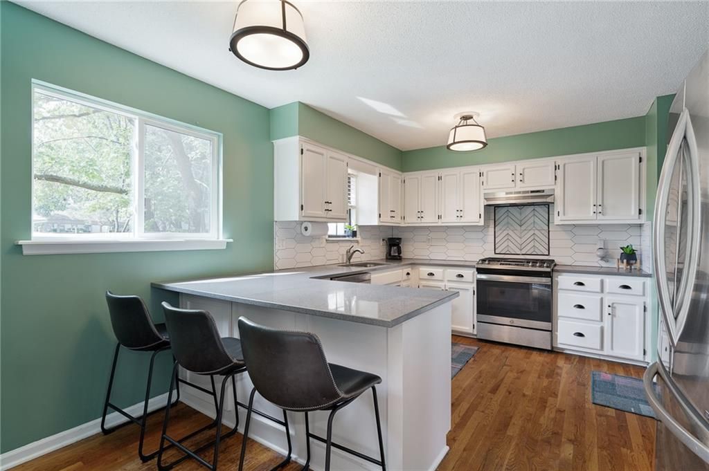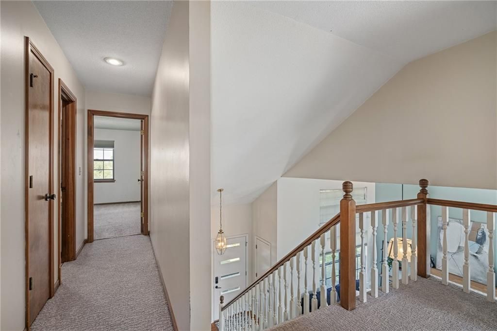 Welcome home to this modern and comfortable duplex townhome - primely situated in the Blue Valley School District with great access to shopping, dining and highways. Beautifully updated kitchen (2021) features loads of quartz countertop, modern backsplash, stainless steel appliances including gas range/oven, eat-in peninsula, tons of storage and pull-out trash/recycling. Washer/dryer closet off the kitchen. Hardwood floors in kitchen flows into the formal dining space. Large living room space features brand new carpeting, updated gas fireplace and soaring ceilings - large windows provide plenty of natural light. Upstairs features three good-sized bedroom spaces. Primary bedroom (11x12) includes a 3 piece en suite updated (2021) with new tile shower surround and modern frameless glass shower doors. Full bath in hallway has new flooring and tub surround. 2 nd bedroom (11x10) at front of the house. 3 rd bedroom (11x9) is currently used as home office. Brand new fence surrounds backyard with patio and plenty of room for dogs and kids to play. Refreshed landscaping. HOA takes care of mowing and provides trash/recycling service. HVAC purchased in 2016 includes a maintenance service contract with AB May. Single car garage space with built-in storage shelving. Unfinished basement space has plenty of room for storage or workroom and potential to finish for additional living space.