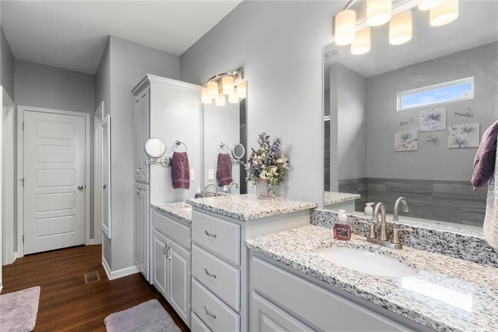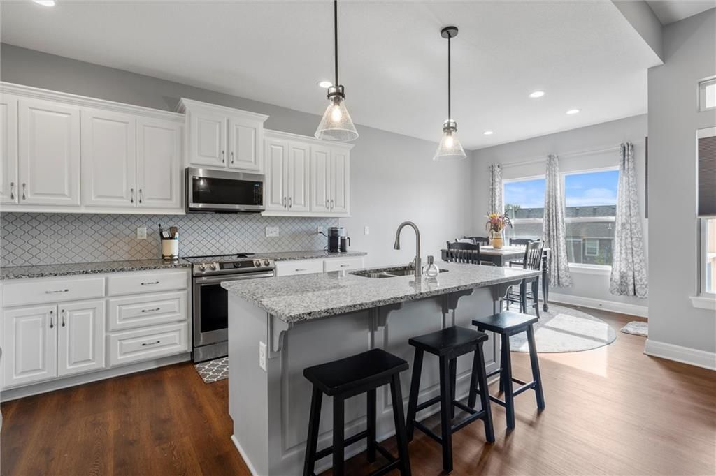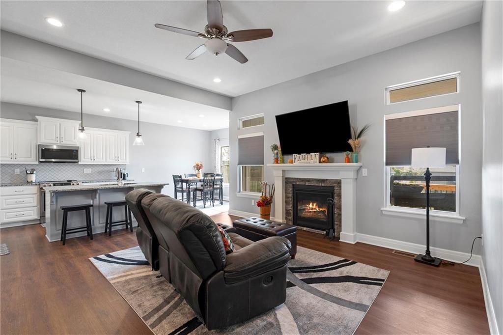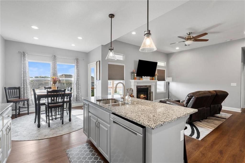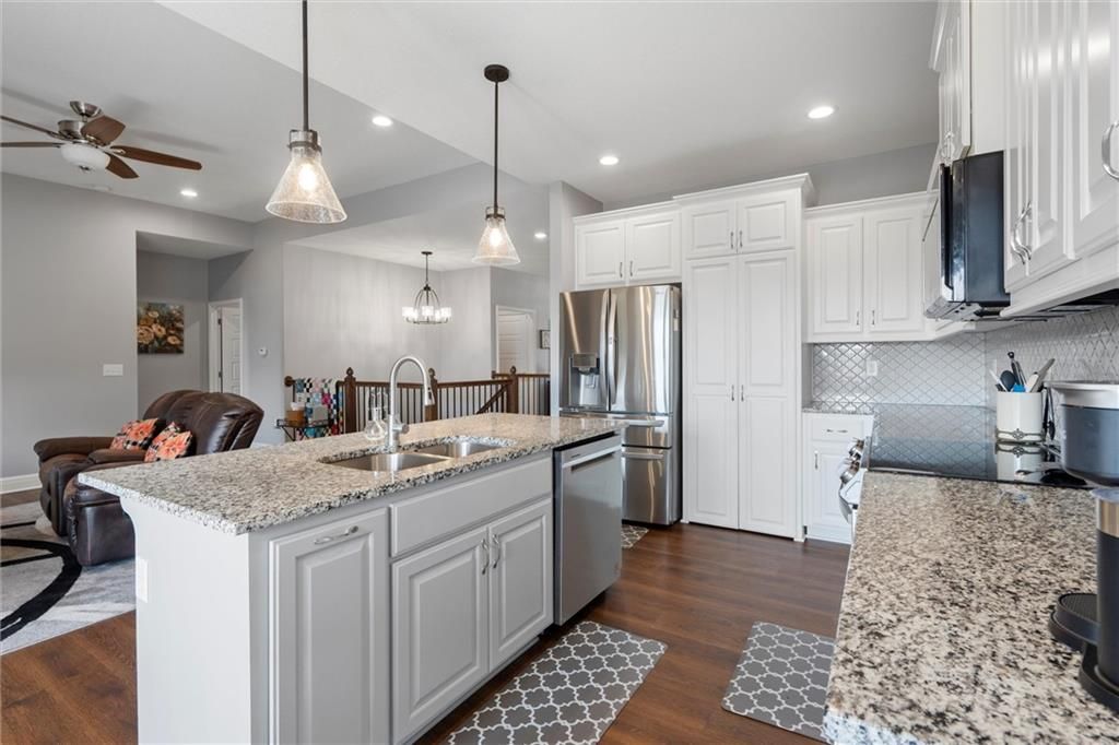 Welcome home to this stunning 4-bedroom, 3-bath ranch perfectly placed on a quiet cul-de-sac. From the moment you walk in, the open floor plan invites you to relax and gather, featuring a cozy fireplace, spacious eat-in kitchen with granite counters, large island, Induction range with built in air fryer and a walk-in pantry built for convenience. The master suite is your private retreat, offering double vanities, a jetted tub for soaking, and a separate shower. Downstairs, the finished lower level with tall ceilings provides endless possibilities with a family room, tons of storage, and 2 additional bedrooms for guests or hobbies. The oversized garage has additional storage, LED Beyond bright lights and 220 plugs for tools and ev charging. Step outside and fall in love with the backyard oasis. Beautifully landscaped and fully fenced, it's designed for entertaining with a wrought iron fence, custom patio, covered deck with steel tv, and sprinkler system to keep everything lush and green. Lawn care is included, so you can spend more time enjoying the space instead of maintaining it. This is more than just a house - it's a place to live, gather, and create memories.