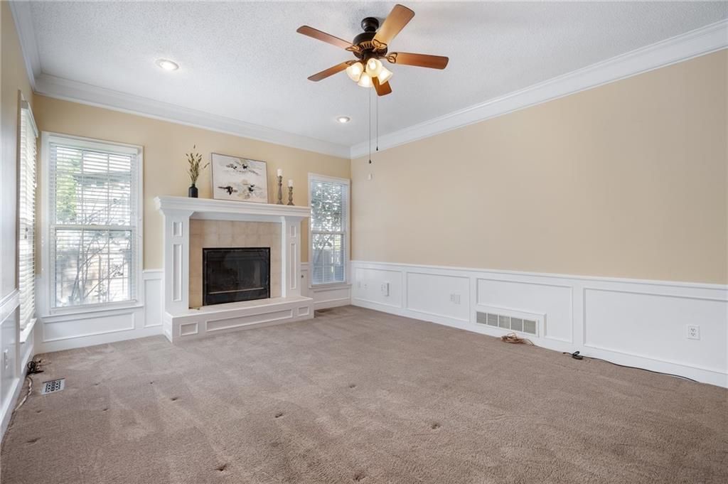 Motivated sellers! Bring us an offer! Tucked away on a peaceful cul-de-sac, this two-story home welcomes you with warmth and functionality. Step inside to find four spacious bedrooms and 3.5 baths, thoughtfully designed for both everyday living and entertaining. Great space ready for you to bring your personal updates. So much room for the money. The heart of the home is the bright white kitchen, complete with Corian countertops, stainless steel appliances, and plenty of workspace. An adjoining eating area flows seamlessly into the step-down family room, where a fireplace invites cozy evenings with family and friends. Formal dining and living rooms add an elegant touch for special gatherings. Upstairs, the primary suite feels like a private retreat, offering a generous sitting area that's perfect for a quiet home office or reading nook. Each bedroom provides comfort and storage with ample closet space. The finished basement extends your living area with a bar - an ideal spot for game nights or casual entertaining. Outside, the deck overlooks a fenced backyard shaded with mature trees, creating a serene space for relaxation and play. With its desirable location close to shopping, dining, schools, and easy highway access, this home offers the best of convenience and community.