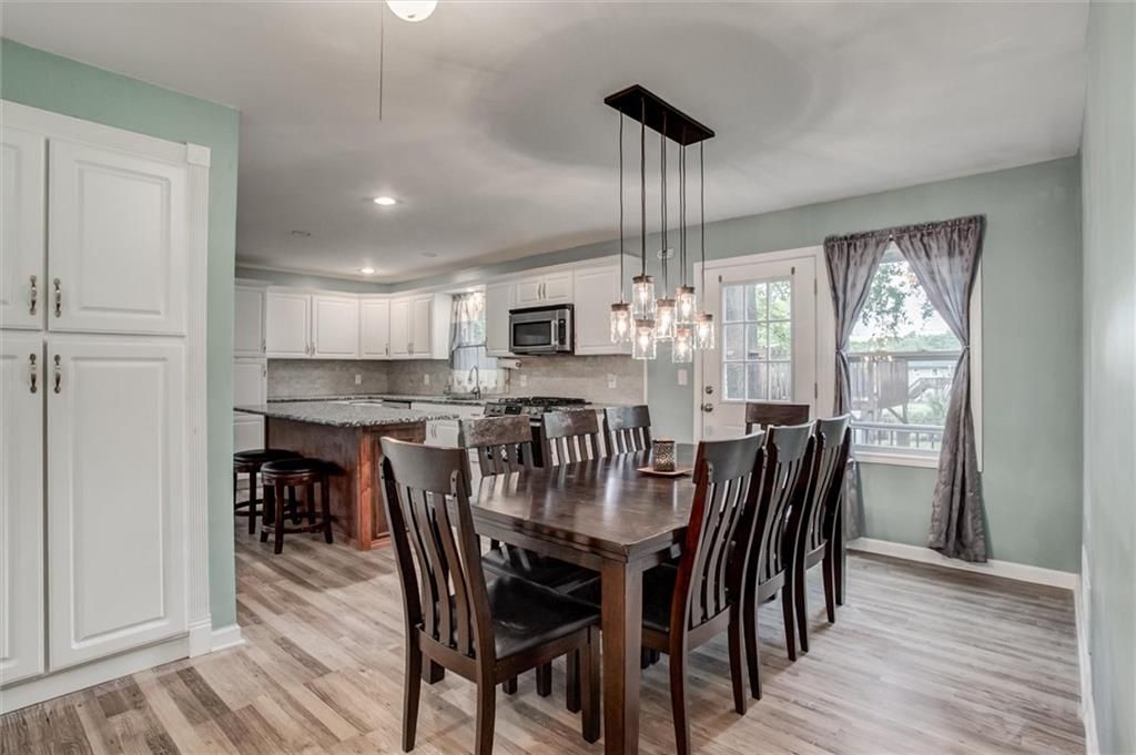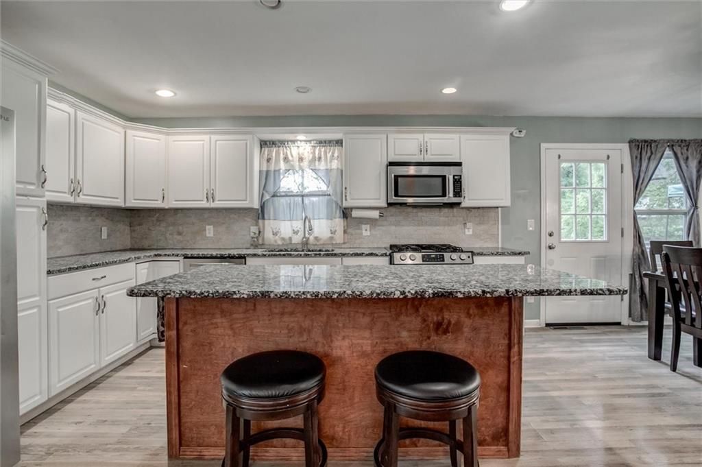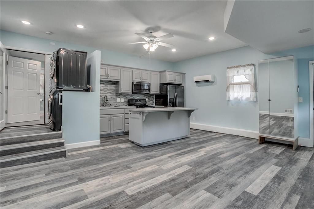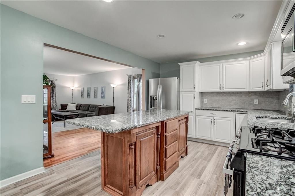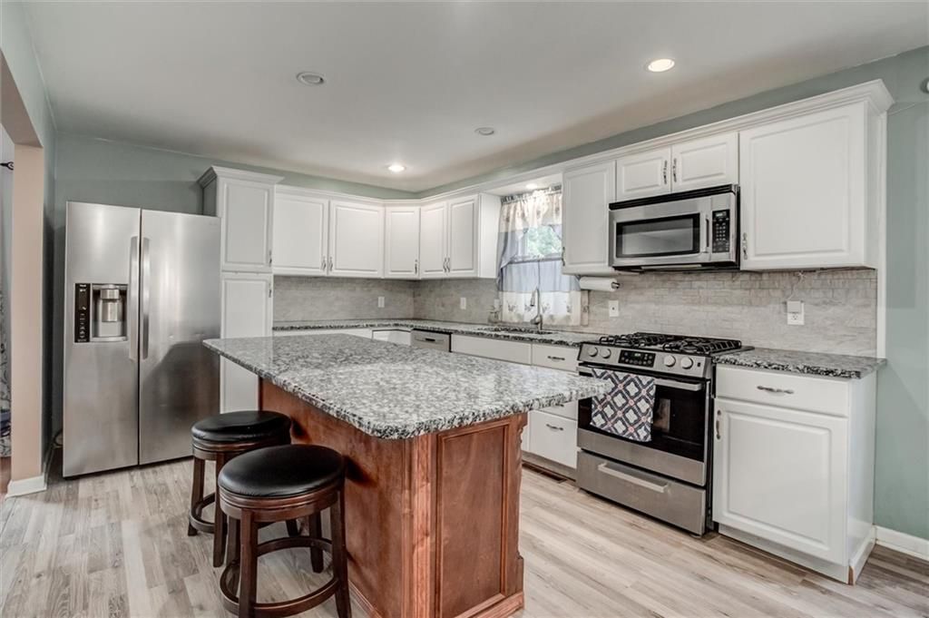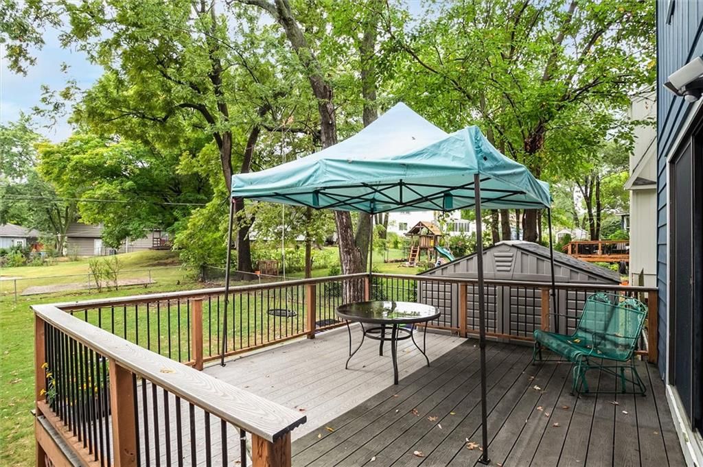 This beautiful 2-story home offers the perfect blend of space, comfort, and location. Just minutes from highway access, shopping, dining, and all of your essentials, this property puts you right where you want to be. Step inside to find an open floor plan, a spacious kitchen with a large island, granite countertops, plenty of cabinets, and newer stainless steel appliances. The home boasts two large living areas, including a converted garage that serves as a full in-law suite with its own kitchen, island, bedroom, full bath with a heated floor, laundry, custom closets, private entrance, and sliding doors to the back deck. Upstairs, every bedroom is OVERSIZED with abundant closet space, plus convenient laundry on the 2nd level. The large unfinished basement offers a half bath, bonus room, shelving, and refrigerator and freezer - perfect for storage, hobbies, or future finishing. Enjoy outdoor living with a composite deck, fenced backyard, inviting front porch swing and deck, and a charming side patio for morning coffee or evening relaxation. Two outdoor sheds, newer HVAC and furnace, original hardwood floors, and great landscaping round out the must-have features of this home. This home is even more stunning in person! The layout flows beautifully, and the garage conversion into a spacious in-law suite feels natural and well-designed.