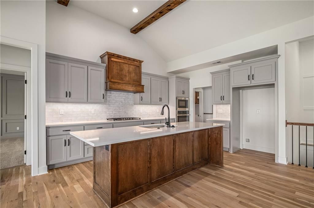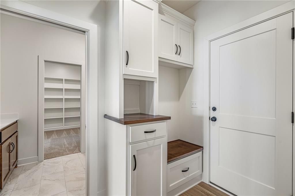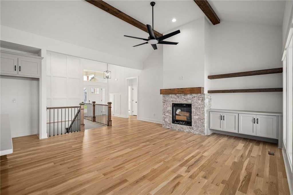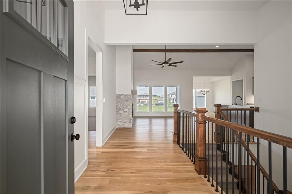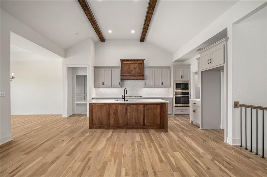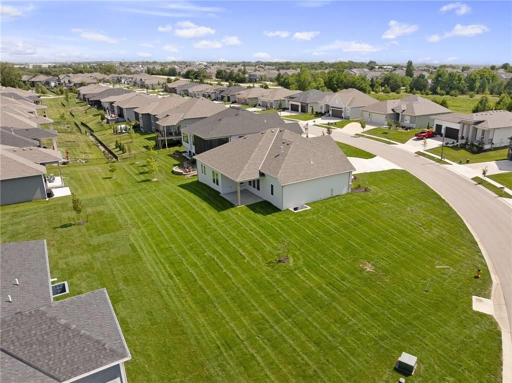 Come explore the award-winning Shea Expanded Ranch by DCB Homes! This 4-bedroom, 3-bath beauty features an inviting open layout designed for modern living. This home is loaded with upgrades and features on-trend selections & designer finishes. The main level impresses with a vaulted ceiling spanning the Great Room and Kitchen, creating a bright, airy feel and reclaimed wood beams for the perfect elevated touch. The kitchen offers abundant cabinetry, a large island, built-in appliances with a gas range, and a walk-in pantry. A spacious dining area is a buyer favorite that opens to the back deck - perfect for entertaining. The primary suite features a box vault & accent wall in the bedroom, big walk-in shower, freestanding tub, double vanities, and a generous walk-in closet. Two additional bedrooms and a full hall bath are conveniently located on the opposite side of the main level, along with a laundry attached to the Primary and mudroom. The finished lower level includes a large rec room with bar, fourth bedroom, third full bath, and two large storage areas. A 3-car garage completes this fantastic plan. Home is at the finish stage and ready for a quick close! **HOME IS AT FINISH STAGE AVAILABLE FOR A QUICK CLOSING. HOA dues are $750 annually for the master dues and $200 a month for the soft maintenance (lawn & snow removal only).** Prairie View at Creekside Woods is a new homes community w/ high-quality homes available now & new lots available. Feeds into premier Olathe Schools - Canyon Creek Elementary, Prairie Trail Middle and Olathe NW High School.