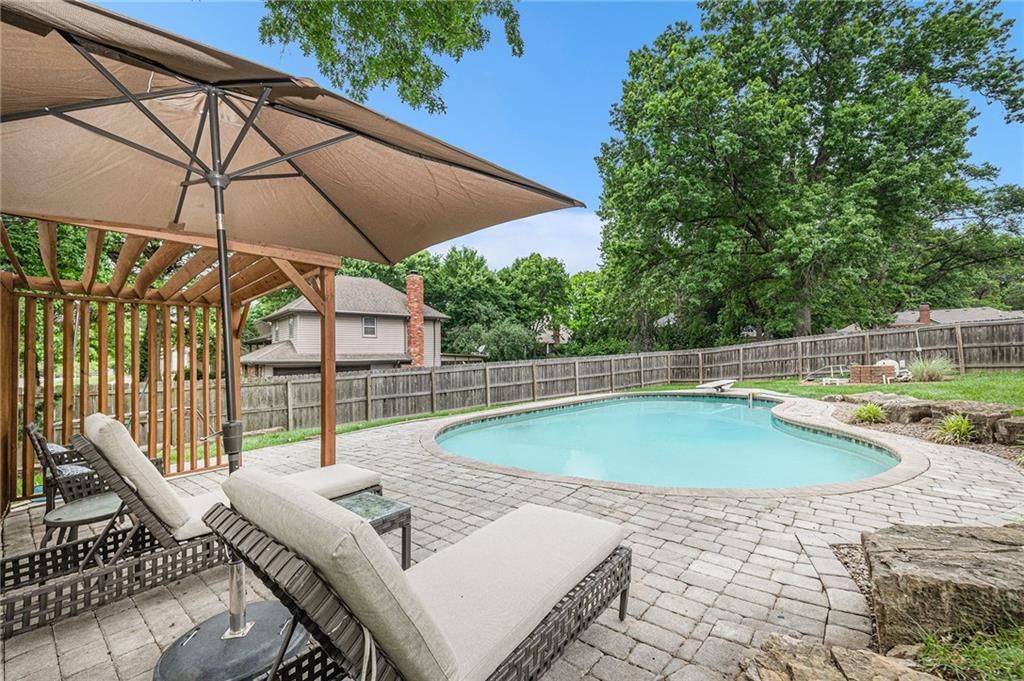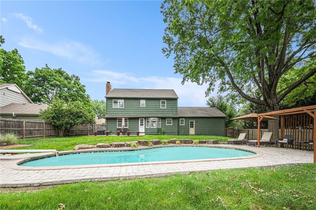 Motivated Seller - Bring an Offer! Cozy Fireplace for Winter, Pool for Summer. Wonderful opportunity to own this Prairie Village home in desirable Kenilworth subdivision - large living areas on the main floor include a living room off the entry, gorgeous great room with fireplace that walks out to the patio & pool, formal dining room and kitchen featuring newer silestone countertops, has peninsula with breakfast bar seating and dining area that looks out to the Salt Water Pool. 4 generously sized bedrooms upstairs. The private primary suite has its own bathroom with updated shower. The back yard has a wood fence and shrubs that give it lots of privacy. The finished basement adds even more living space, including a large recreation room, a non-conforming 5th bedroom, and a private half bath. Step outside to a beautifully landscaped, privacy fenced backyard with in-ground salt water pool, mature trees and a spacious patio perfect for relaxing and entertaining. 1st floor laundry, hardwood floors throughout, large finished basement w/new carpet Plenty of storage in the unfinished portion of the basement. Close to shopping and easy highway access. Located just a short walk from Meadowbrook Park and Franklin Park