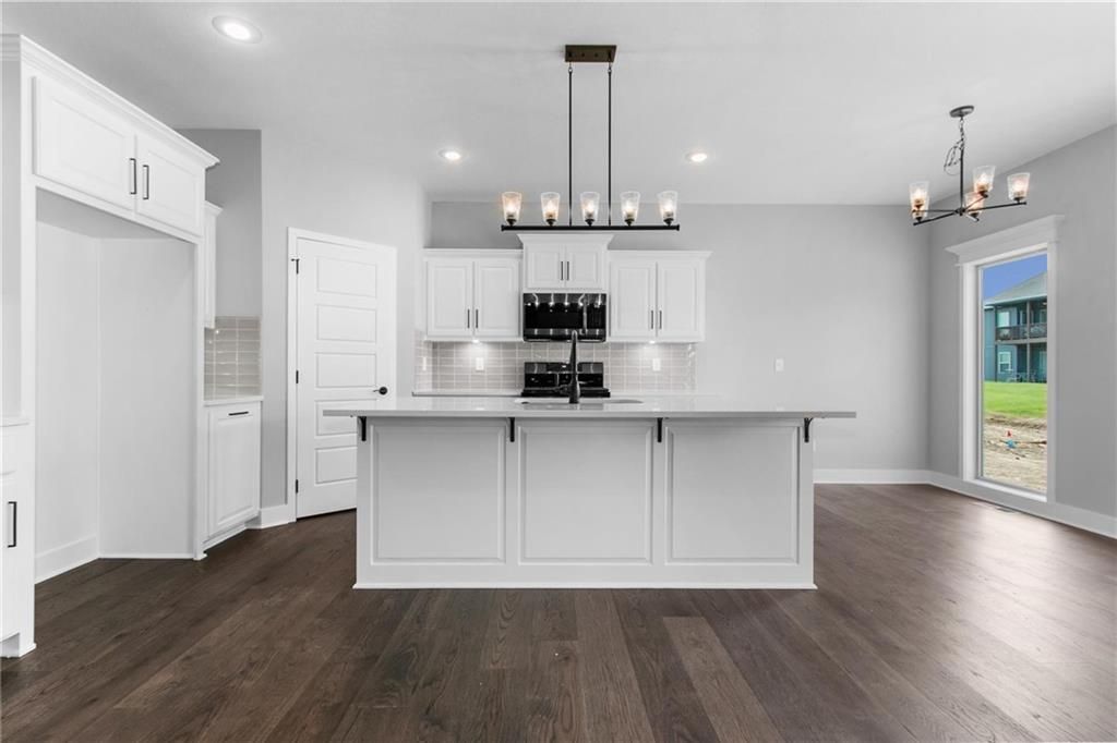 The Richmond by Hoffmann Custom Homes - a true ranch where stylish design meets effortless living. This home is currently under construction; photos shown are of a previously built model. Estimated completion in March of 2026. The floor plan features a striking entryway, a spacious great room with soaring ceilings, and an open-concept kitchen with light engineered hardwood floors, creamy white enameled cabinets, fresh modern lighting, and a large island topped with gray quartz. A covered deck sits just off the dining area for convenient outdoor access. Built with 2x6 exterior wall construction, this home is engineered for durability and energy efficiency. It comes pre-wired for easy solar panel installation and includes an EV charger receptacle, and additional energy-efficient upgrades. A 10-year structural warranty provides added peace of mind. The lower level is stubbed for a future bathroom, offering flexibility for later expansion. Located within the top-rated Platte County School District.