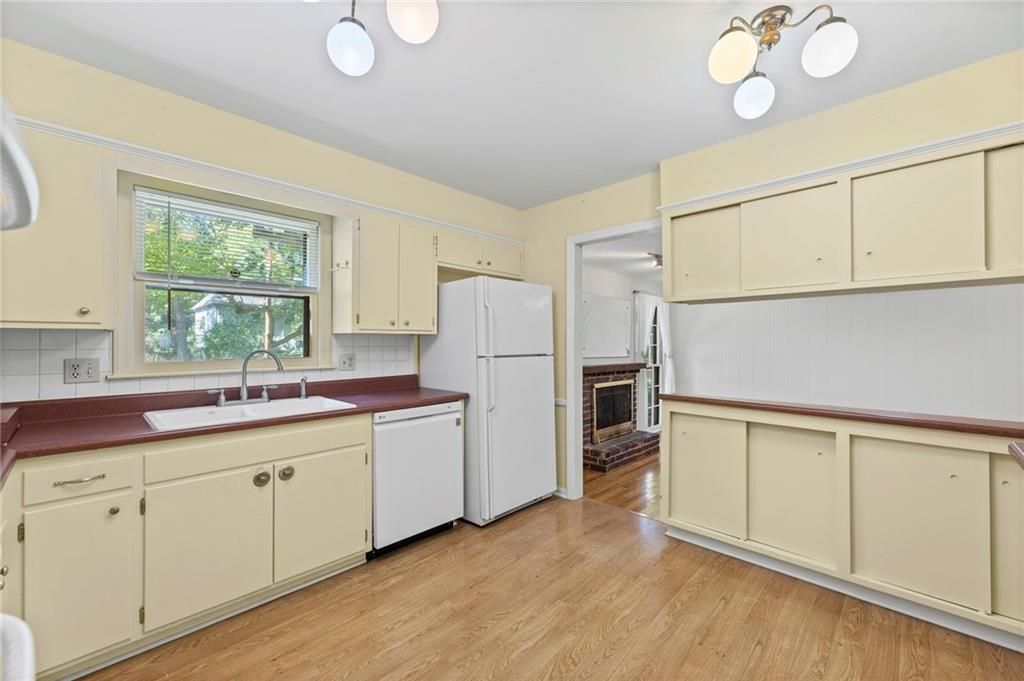 Welcome to your new home in Overland Park! Spacious with four bedrooms, two and a half bathrooms, a formal dining room and several spaces for a family to stretch out. Hardwood floors throught the main and upper floor except for the bathrooms with tile floors. A sunken living room with a cozy brick fireplace is located on the main level. A finished basement with a bar area, built-in seating and a built in desk/craft area. Plenty of storage in the basement where the utility room is located. Large trees and a wonderful, flat, fenced backyard. Hurry and don't miss this home!